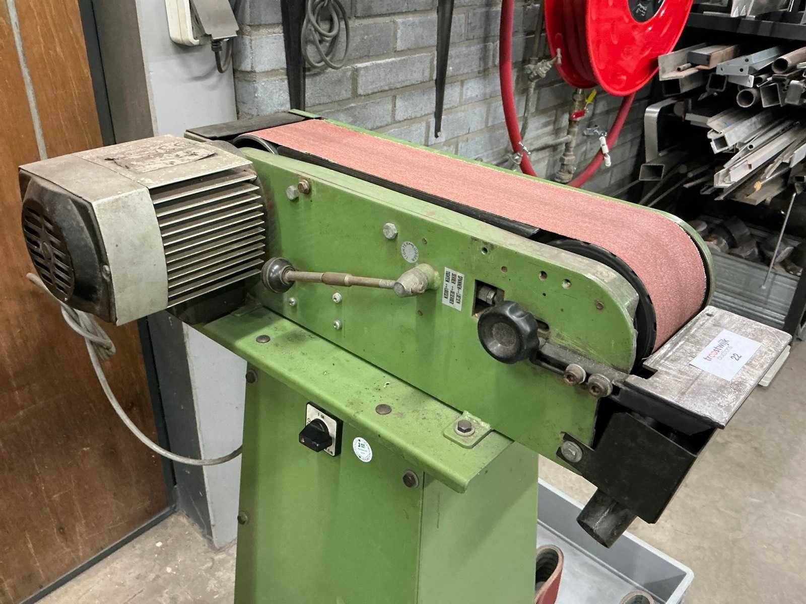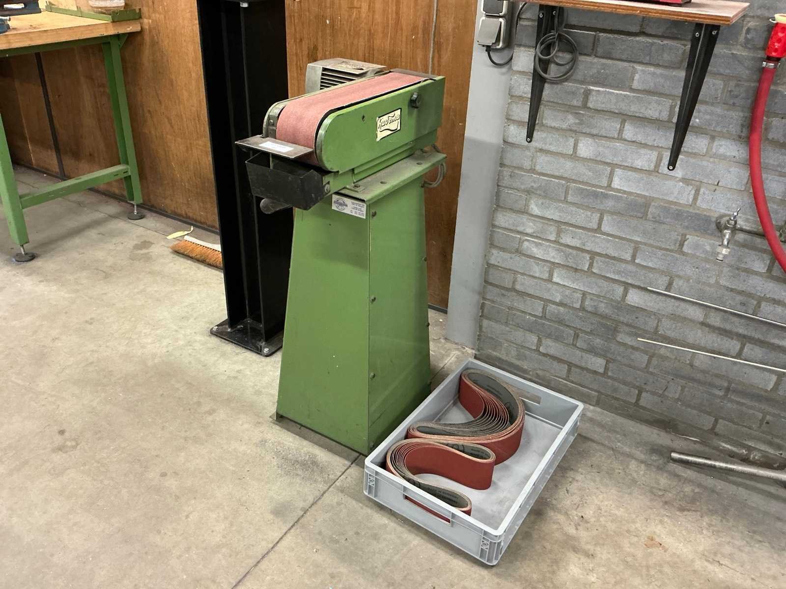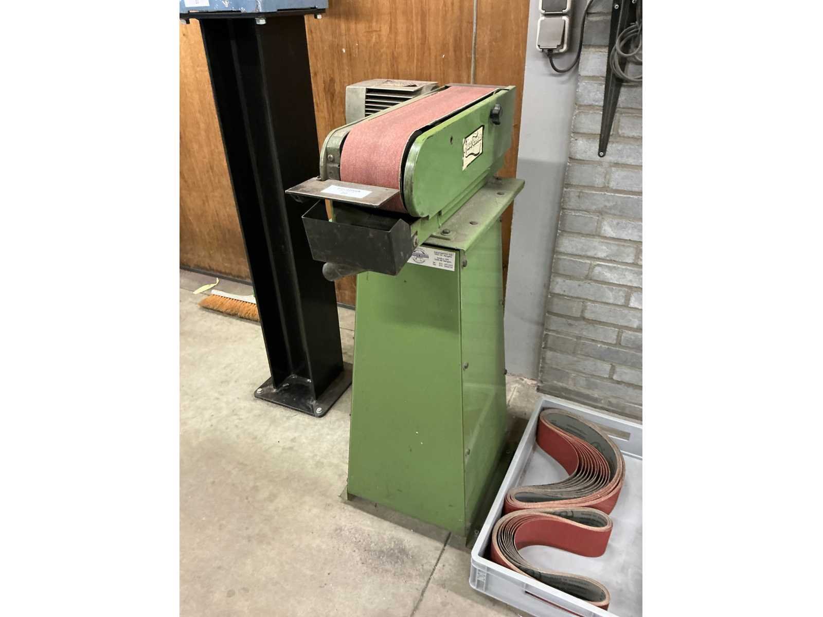 Inclusief kist met nieuwe schuurbanden; schuurbreedte 100 mm Nee Merk: Huvema Aansluiting: 380V Afmeting l: 630mm Afmeting b: 480mm Afmeting h: 1000mm
