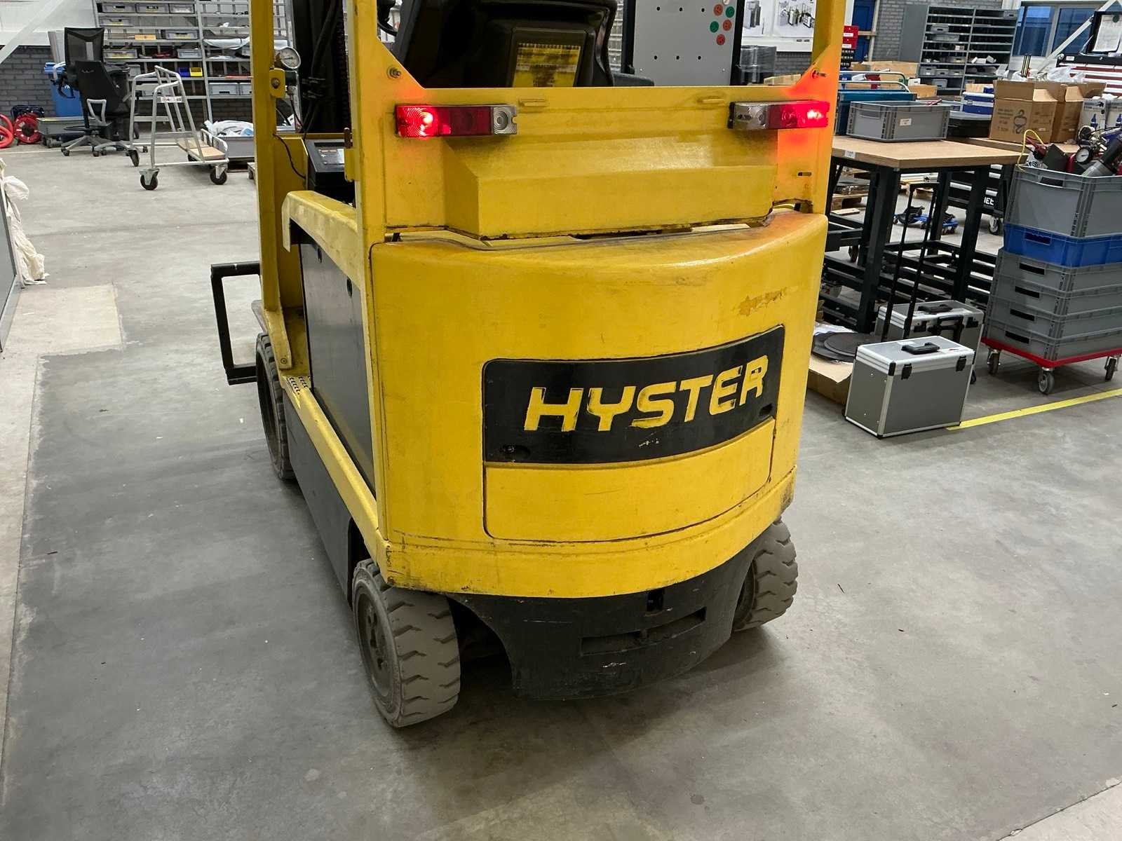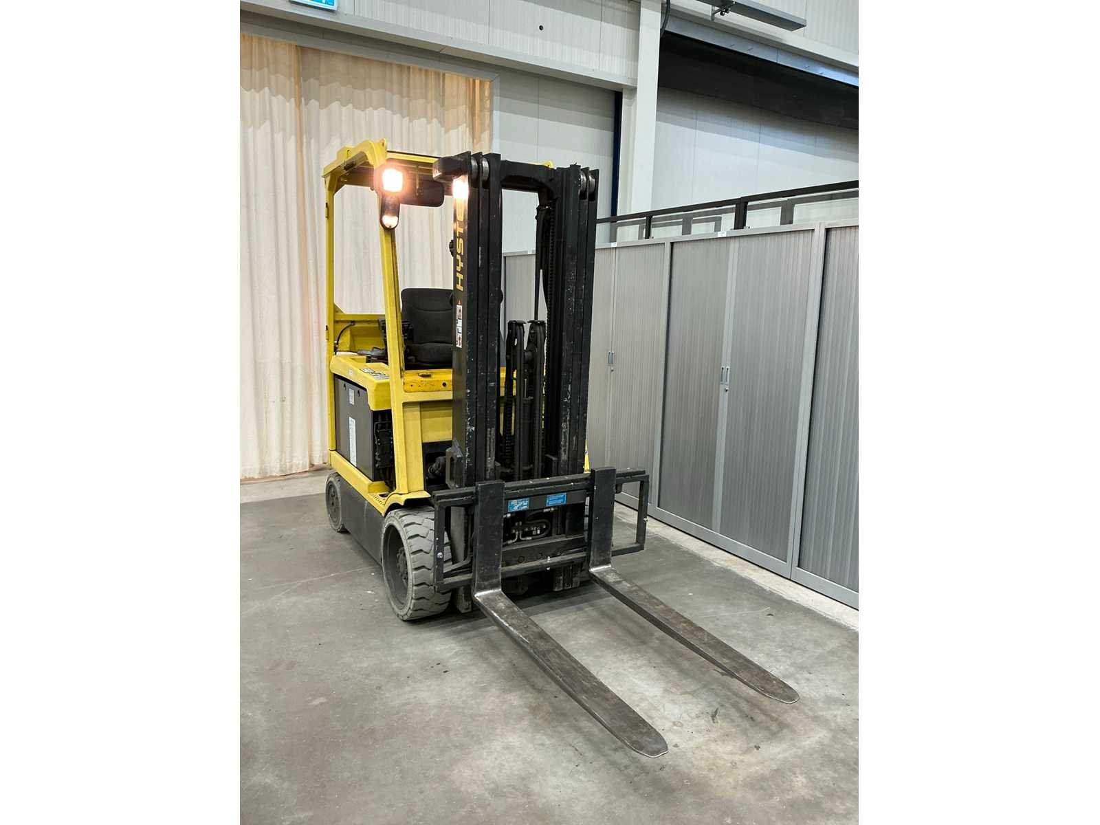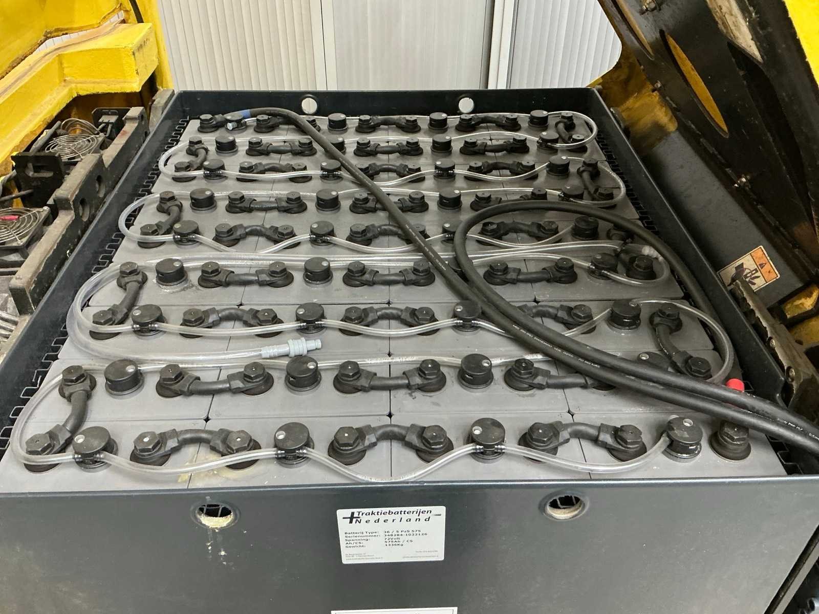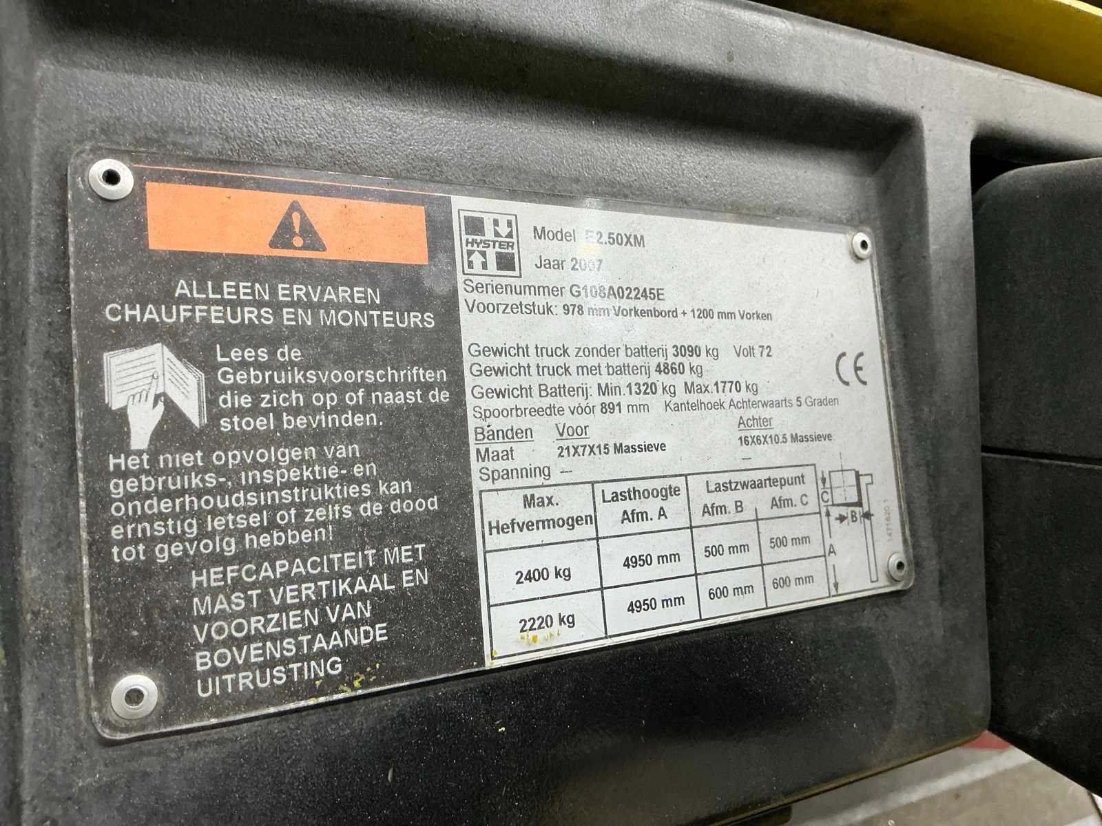 Voorzien van recent vernieuwde accu, vierde functie en gedemonteerde cabinedeuren Nee Merk: Hyster Bouwjaar: 2007 Accu lader: true Free-lift: true Side-shift: true Triple mast: true Hefvermogen: 2400kg Lepellengte: 1200mm Max. hefhoogte: 4950mm Vol rubber banden: true Minimale doorrijhoogte: 2300mm