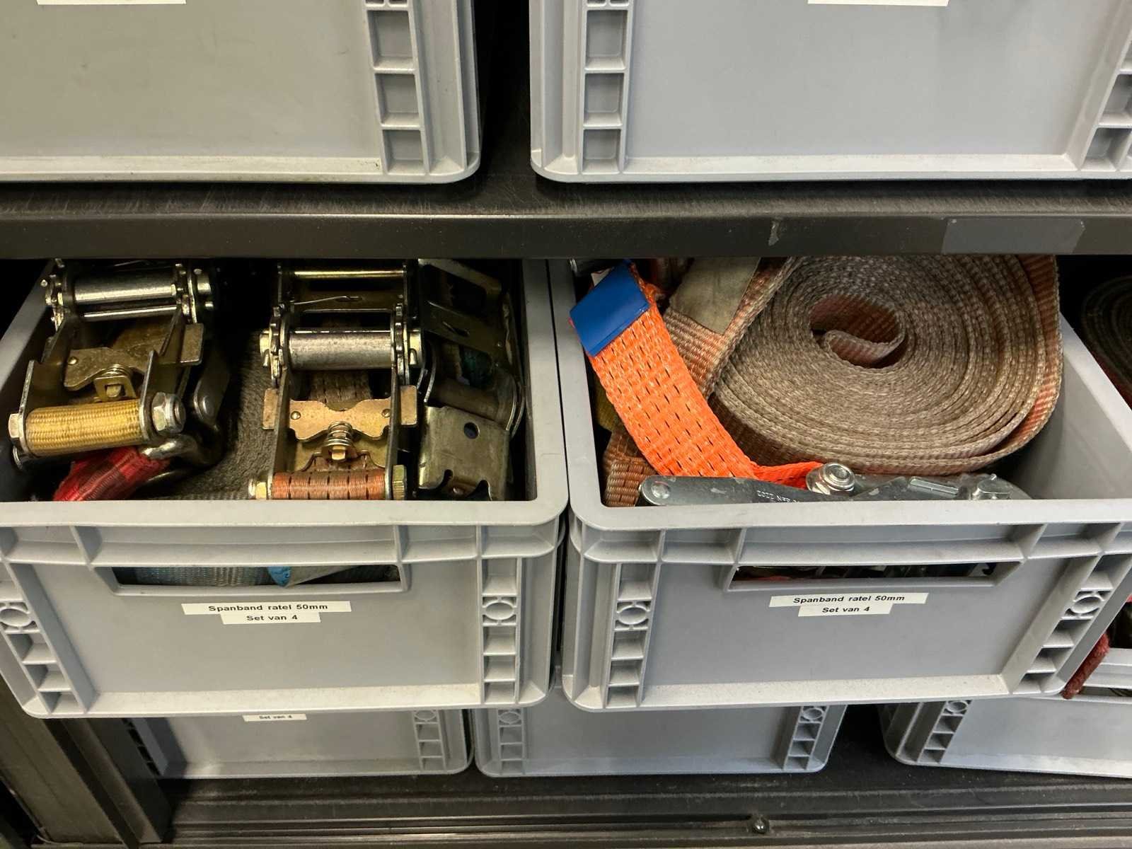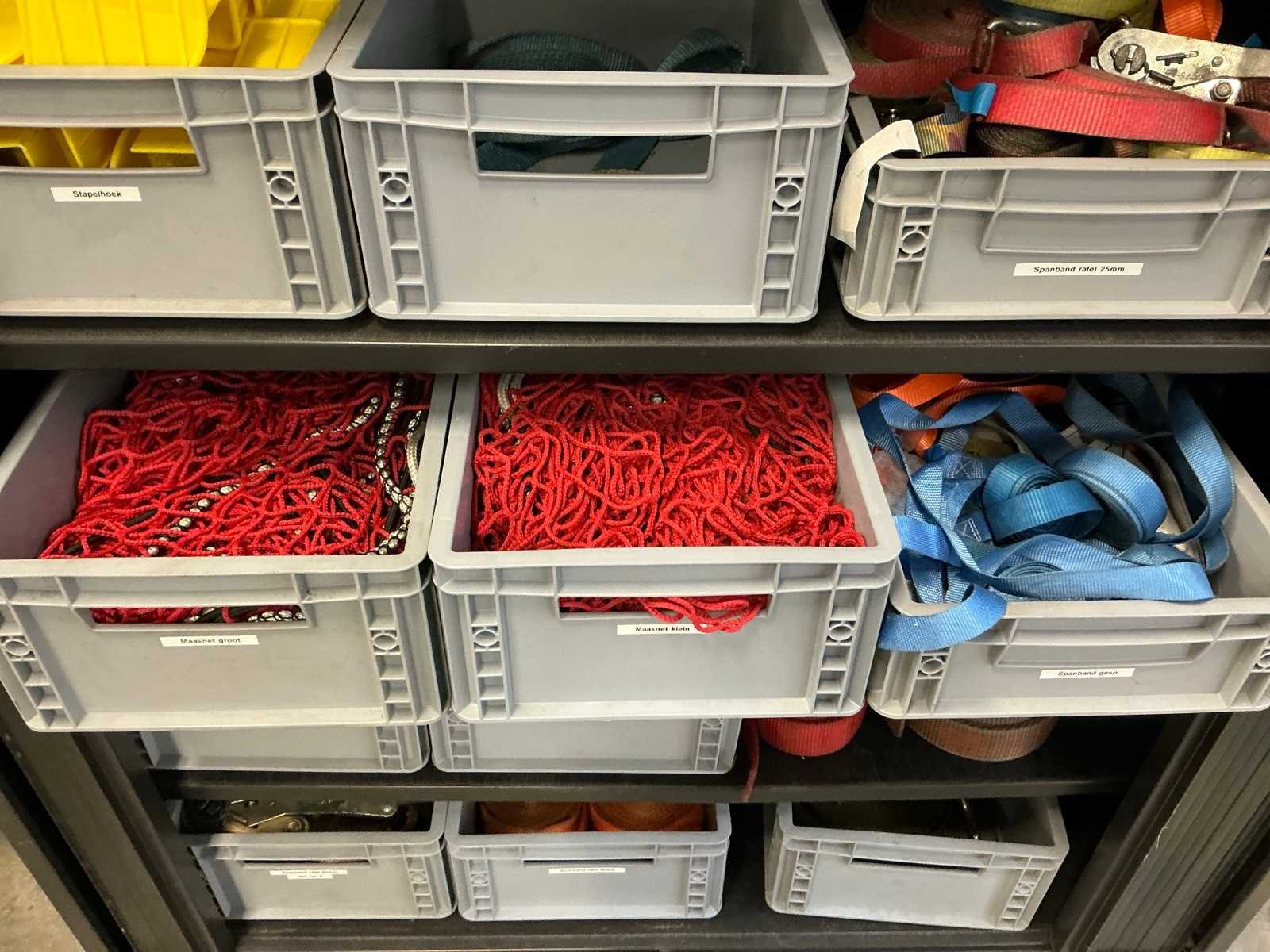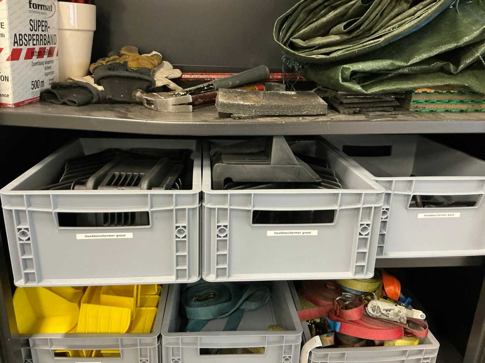 Mewaf jaloeziedeurkast met spanbanden en hoekbeschermers