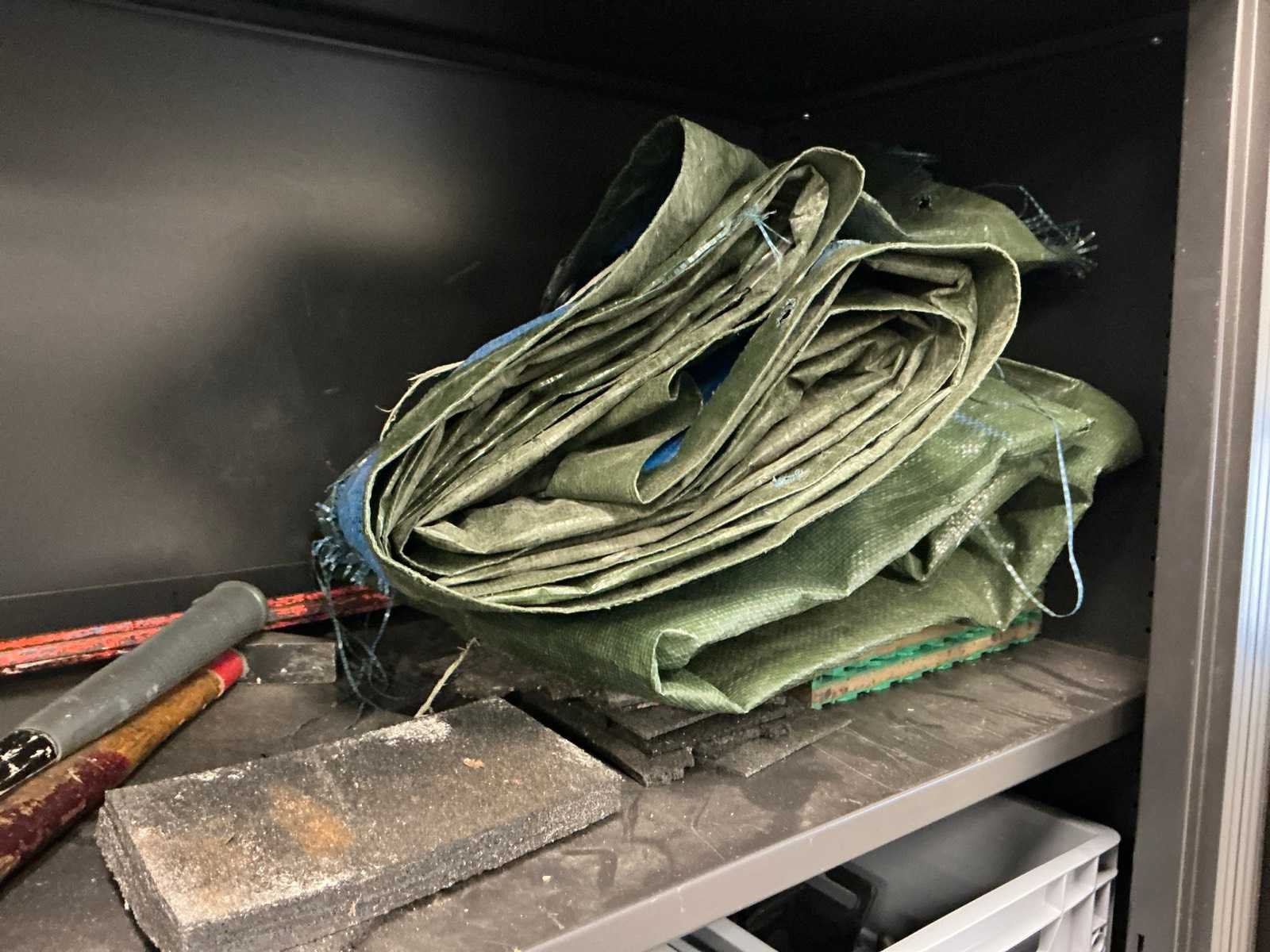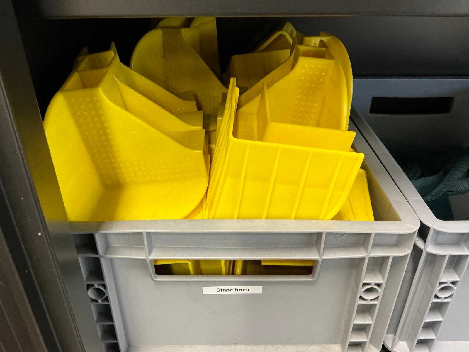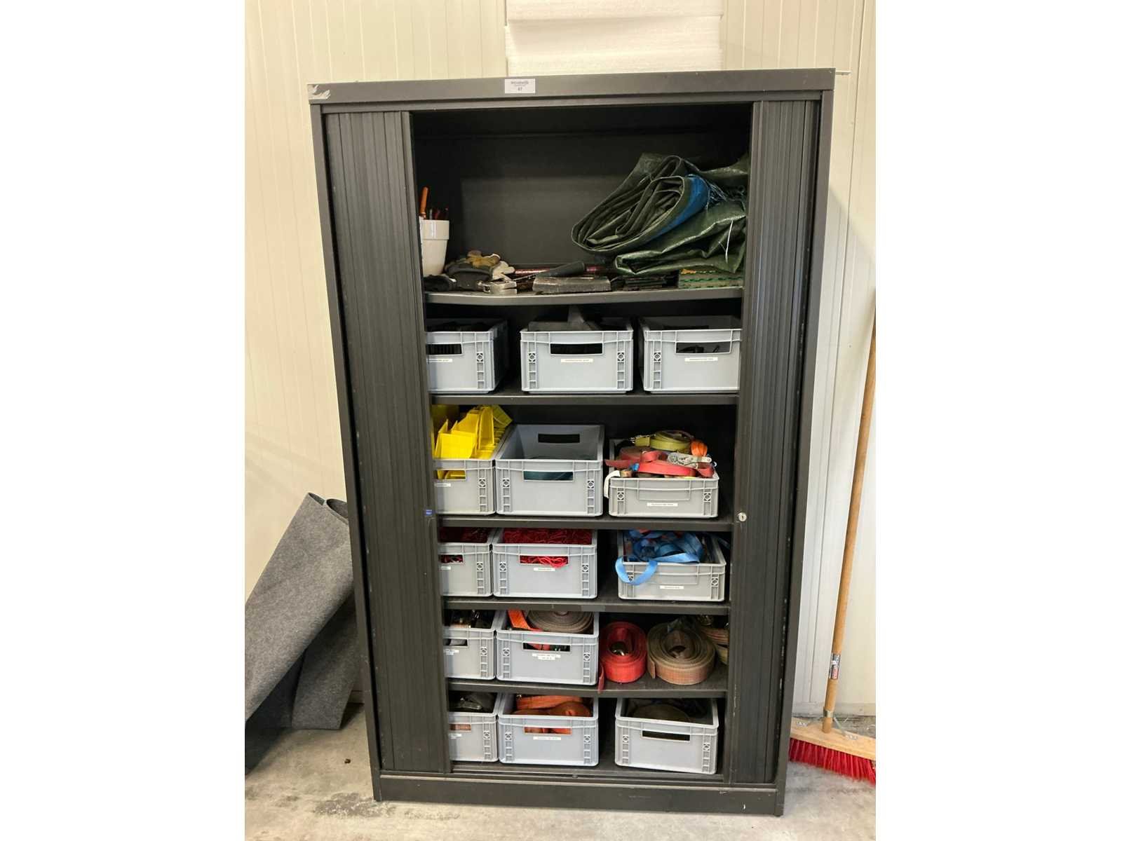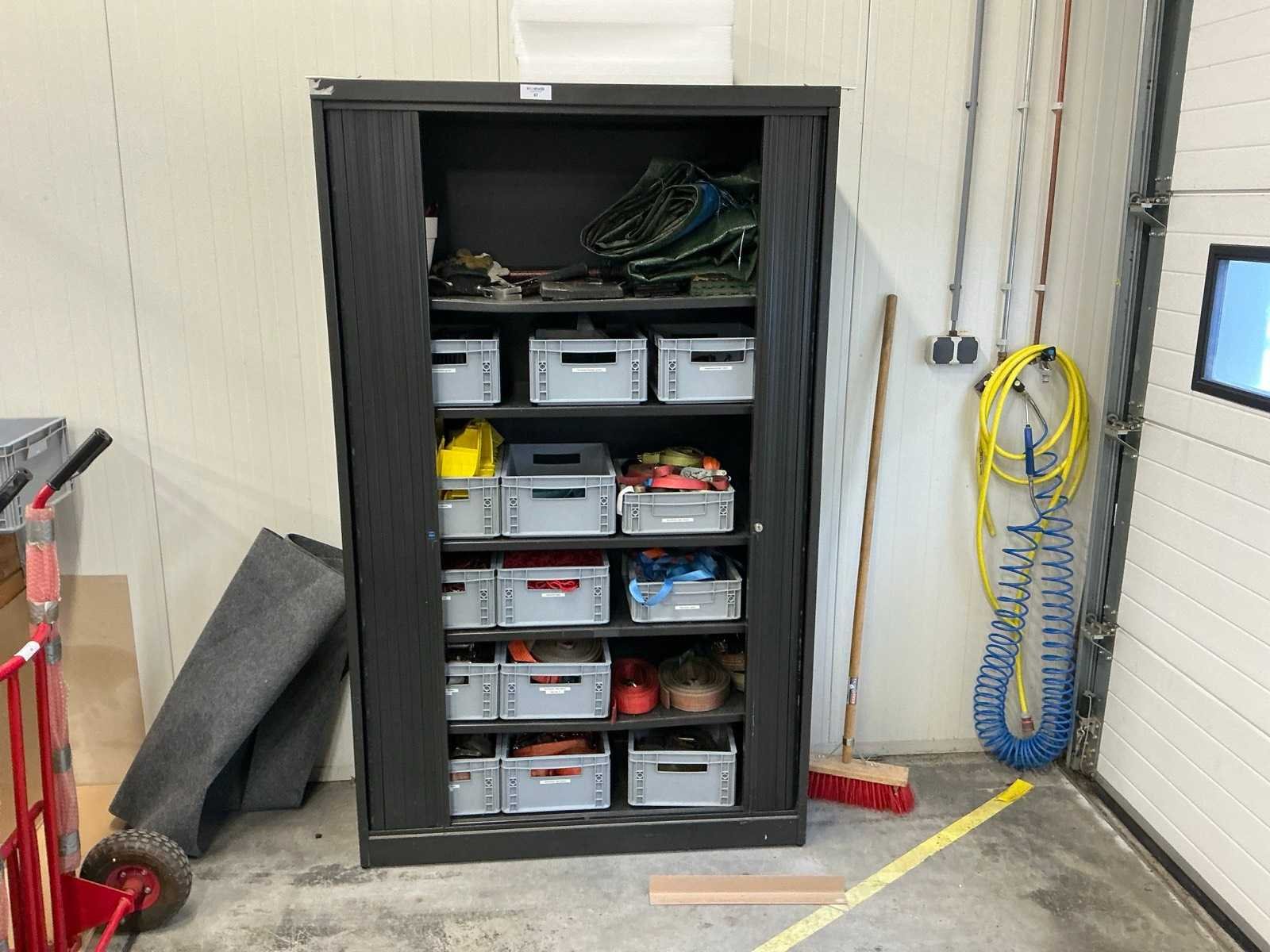 Mewaf jaloeziedeurkast met spanbanden en hoekbeschermers