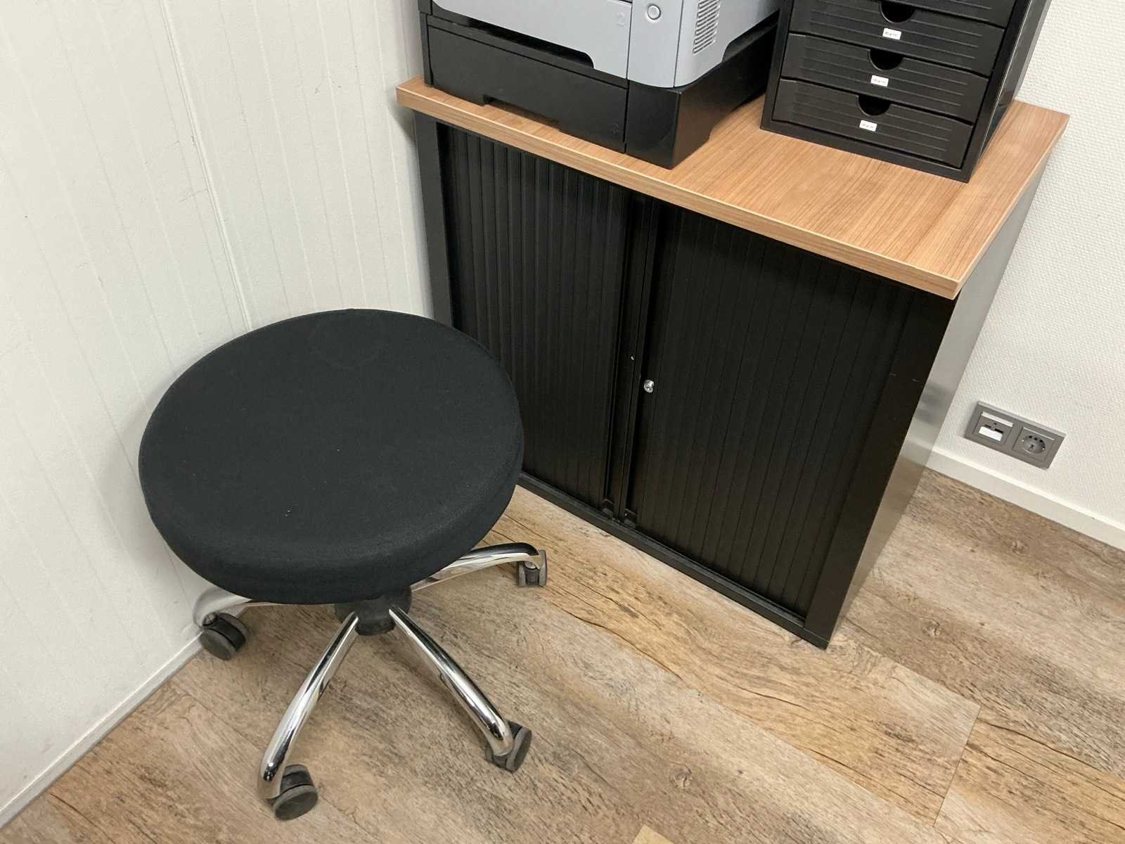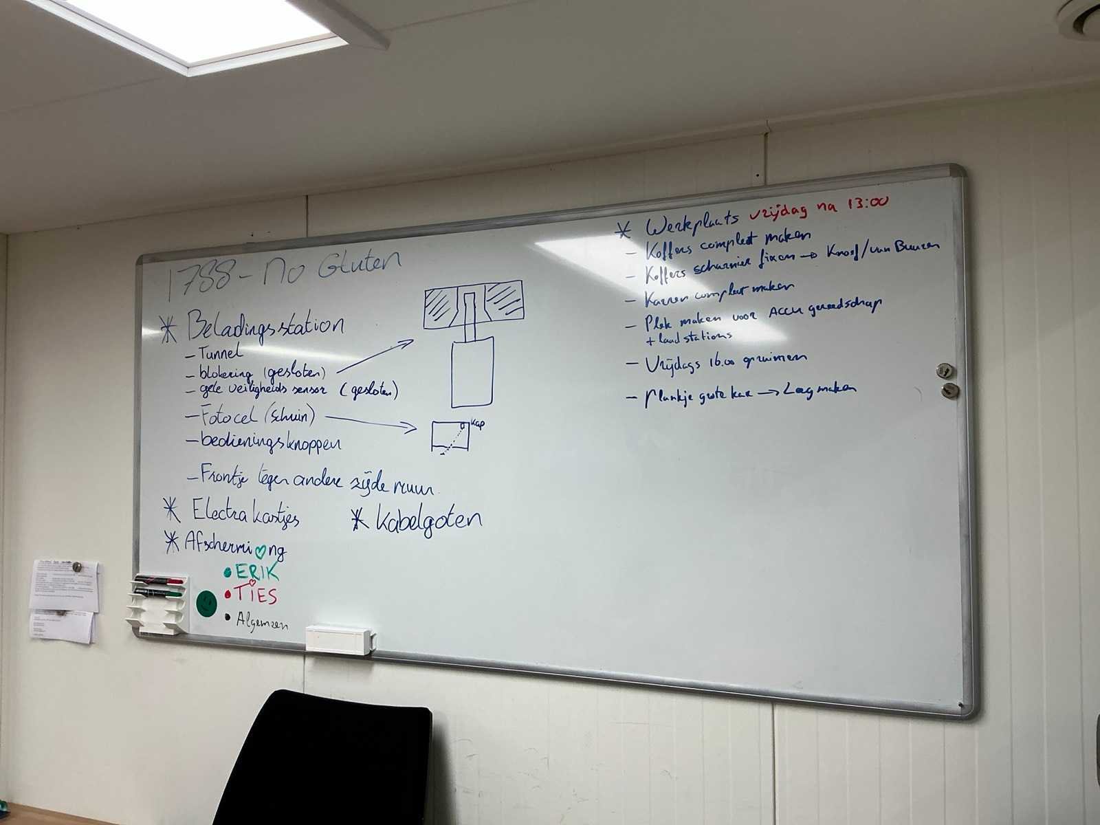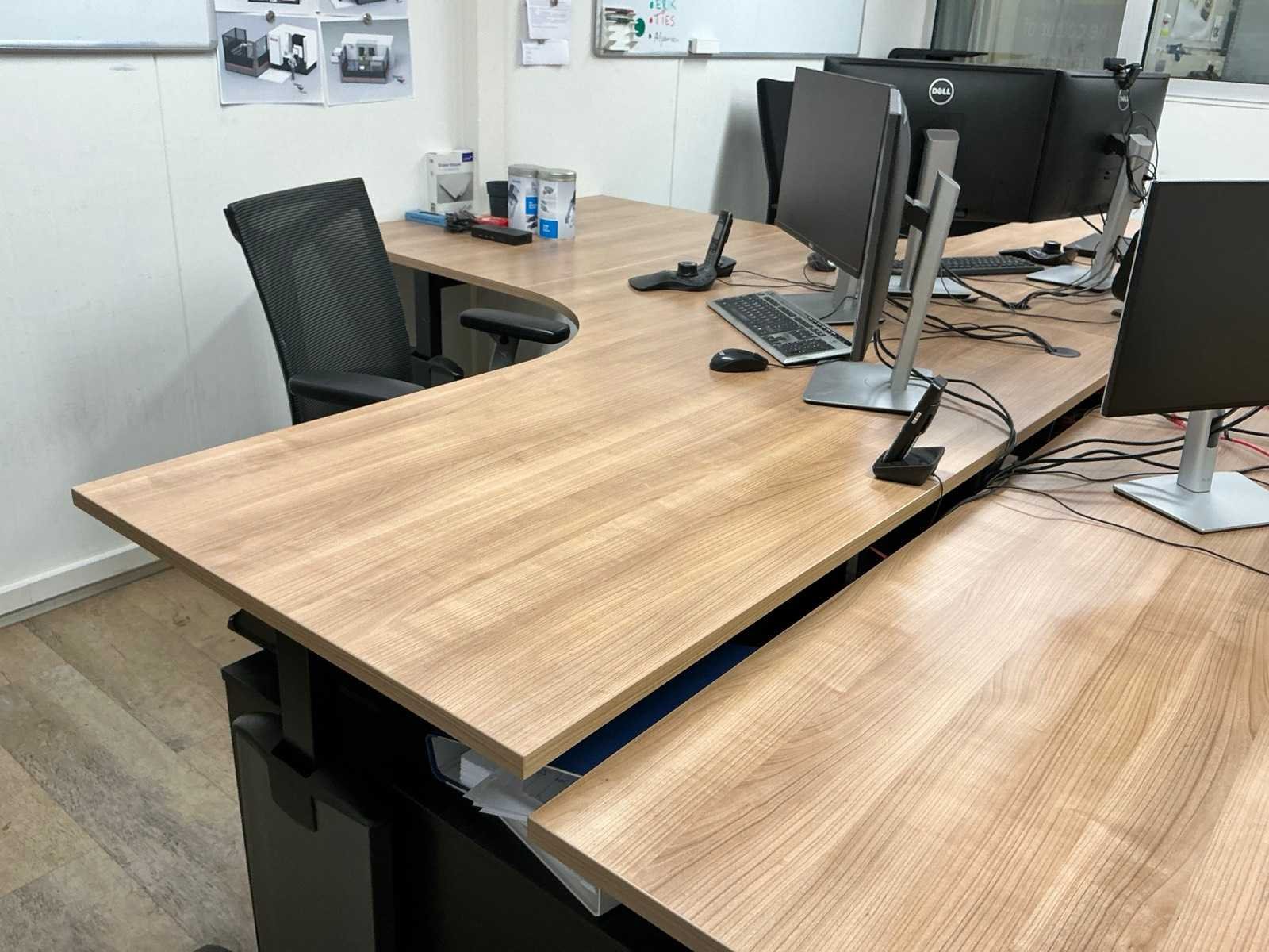 Vier werkplekken inclusief stoelen, 3 ladenblokken, 2 whiteboards en 2 jaloeziedeurkasten. Exclusief computers. Afmeting per bureau zonder aanbouwdeel: 180x120 cm. De bureaus staan gekoppeld en dienen gedemonteerd te worden. Nee Lengte: 360cm Breedte: 360cm