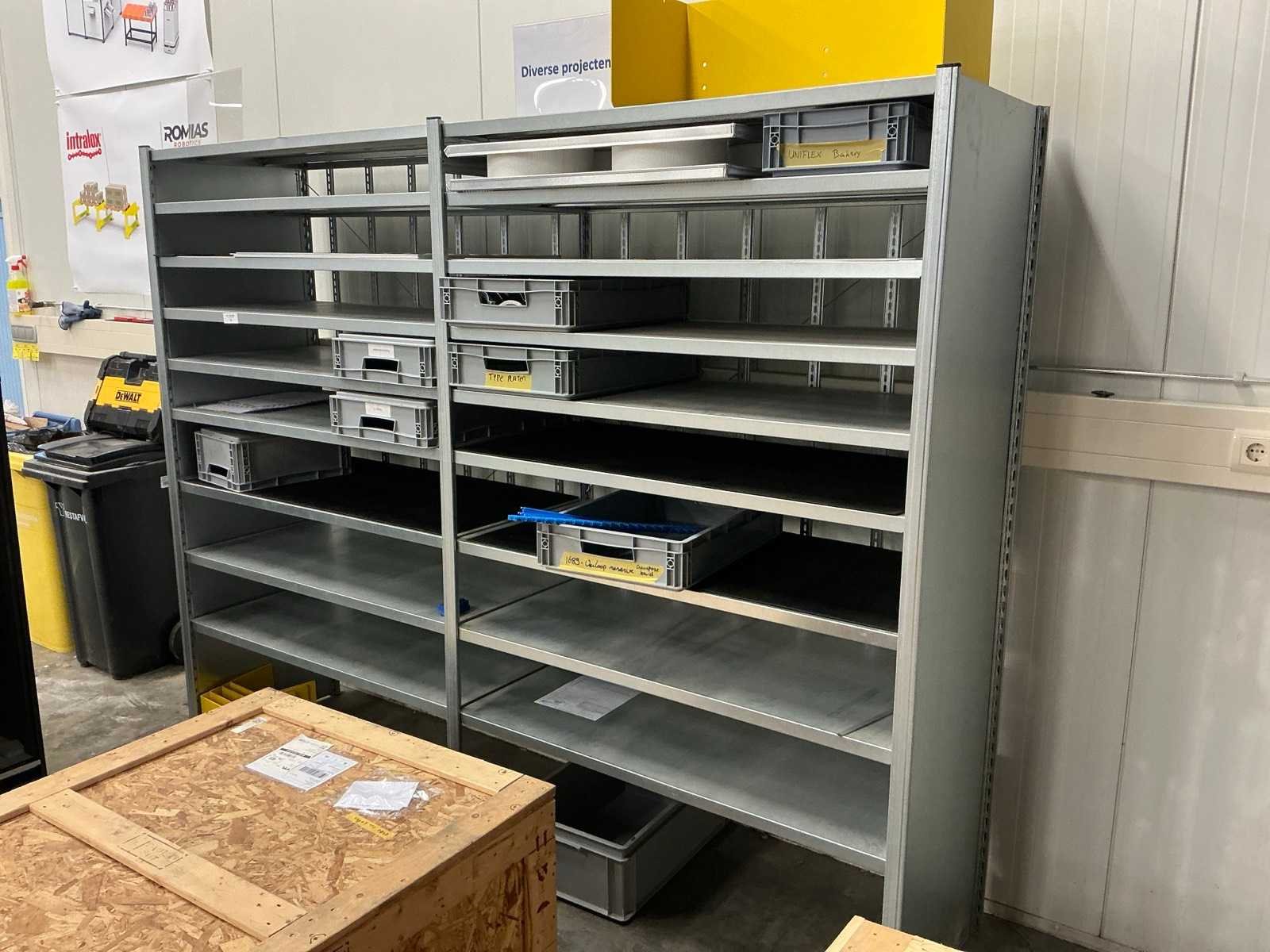 Nee Aantal secties: 2 Aantal staanders: 3 Aantal legborden: 18 Demontabel: true Lengte: 254cm Breedte: 57cm Hoogte: 200cm