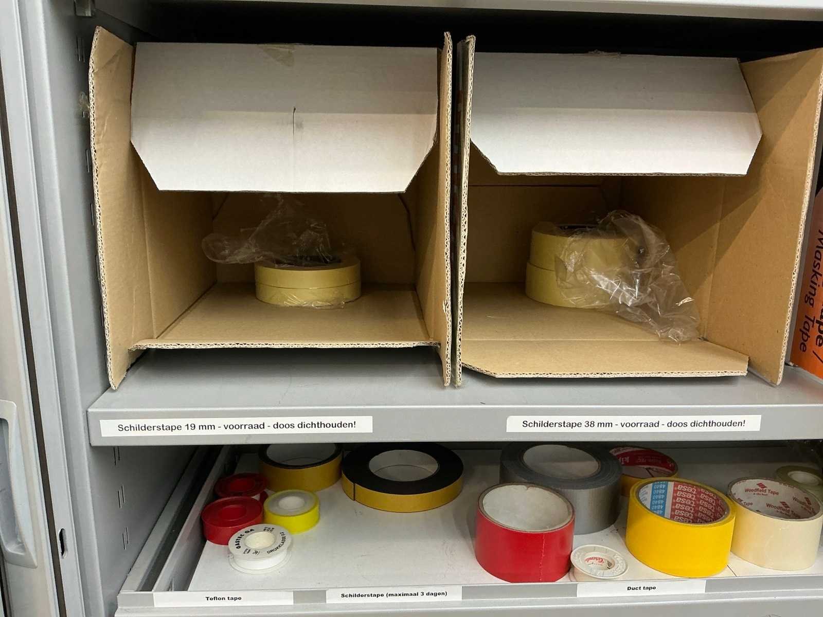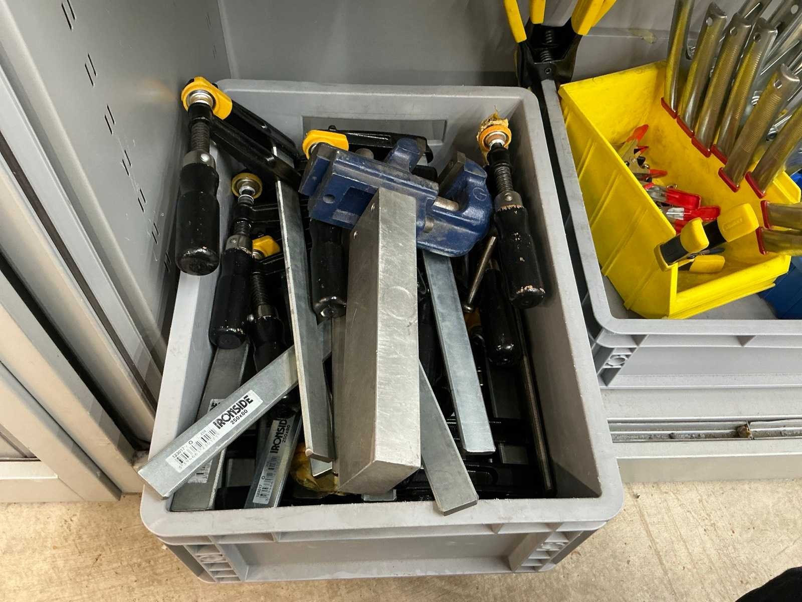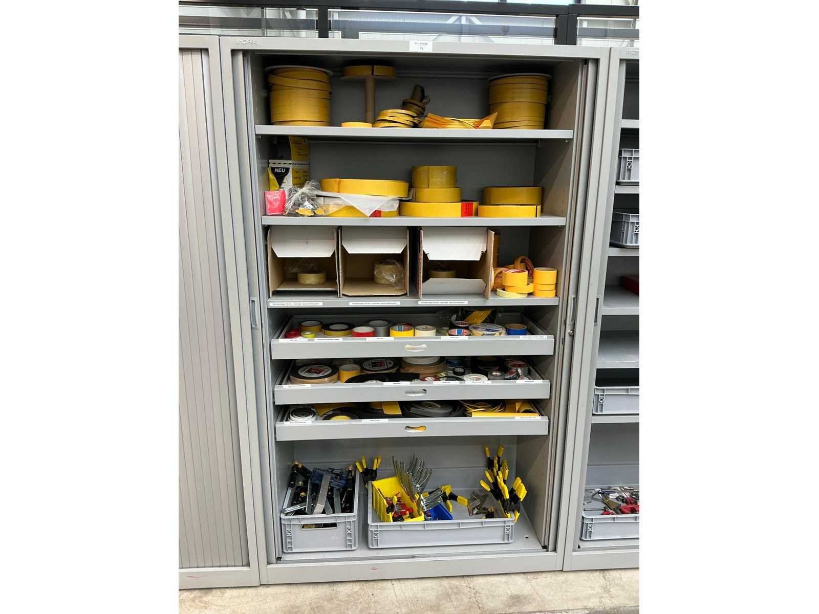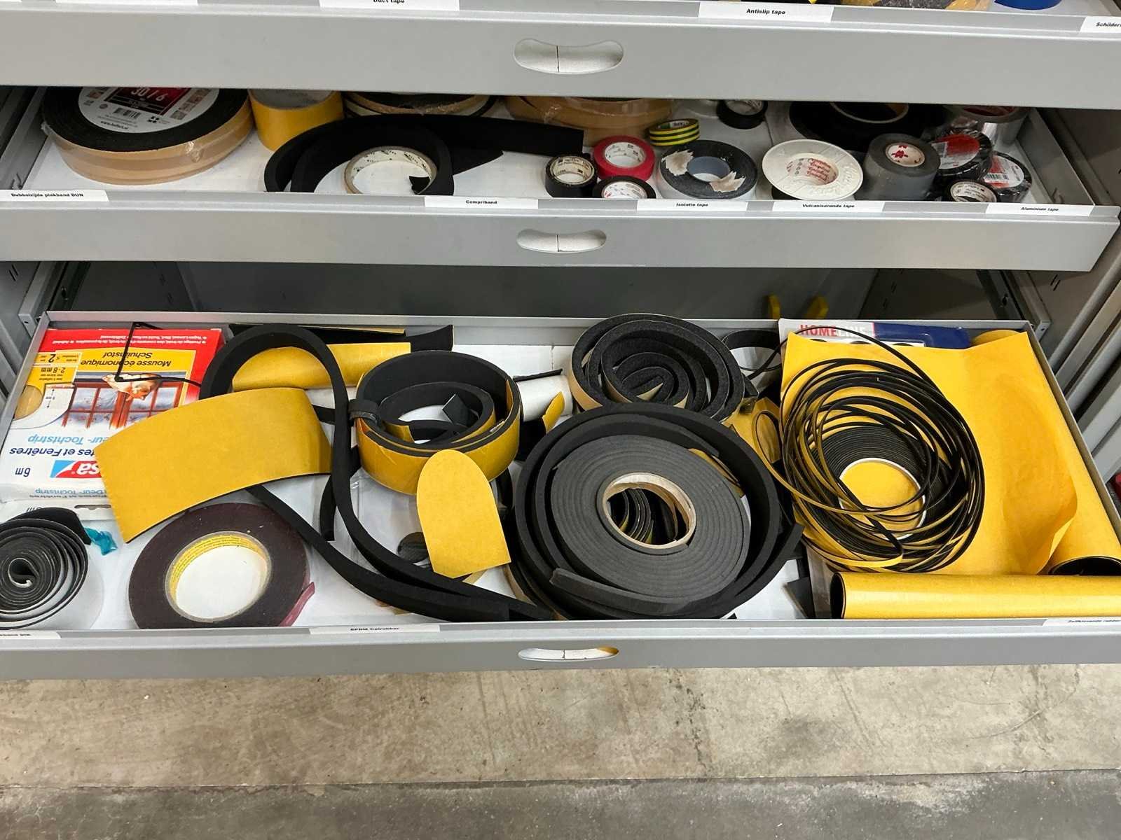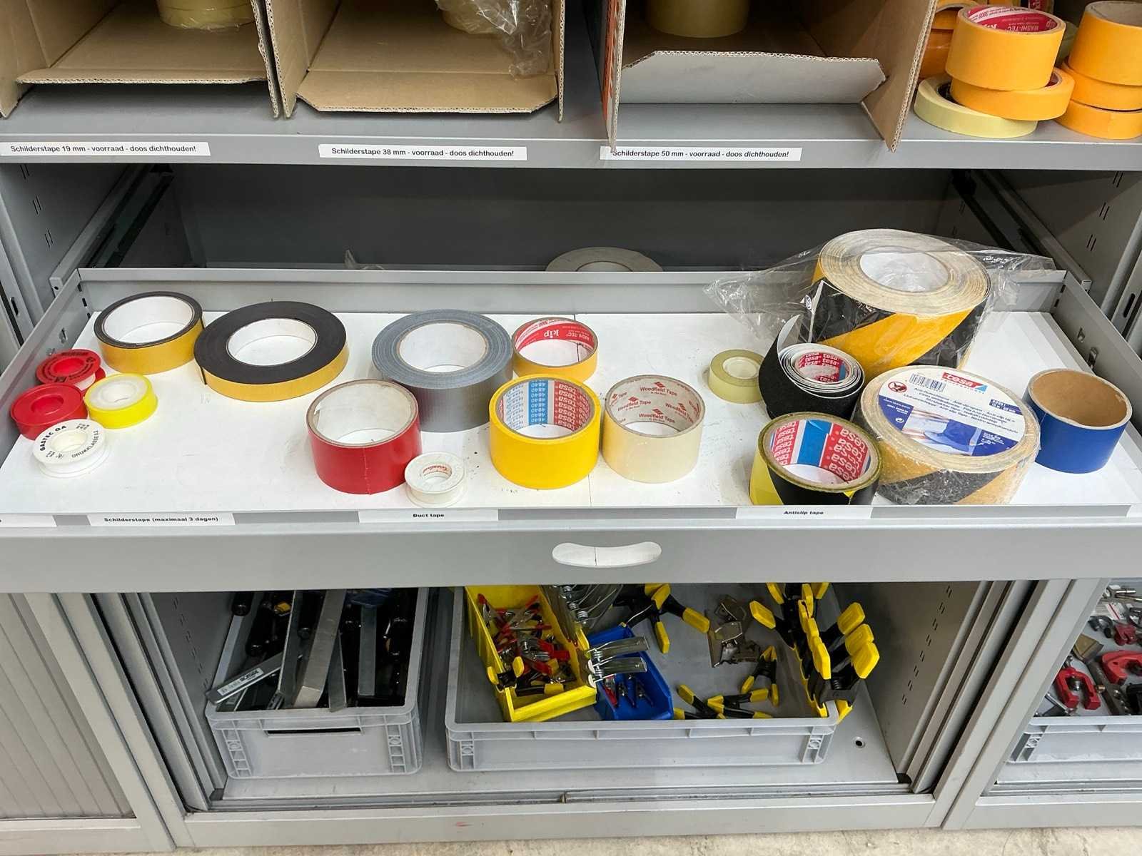 Inhoud diverse klemmen (Stanley), platenklemmen (Ironside) en diverse schilders en isolatietape. Kast is voorzien van 3 laden Nee Merk: Inofec Lengte: 120cm Breedte: 45cm Hoogte: 195cm