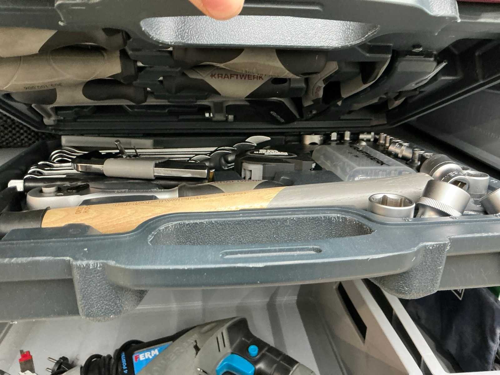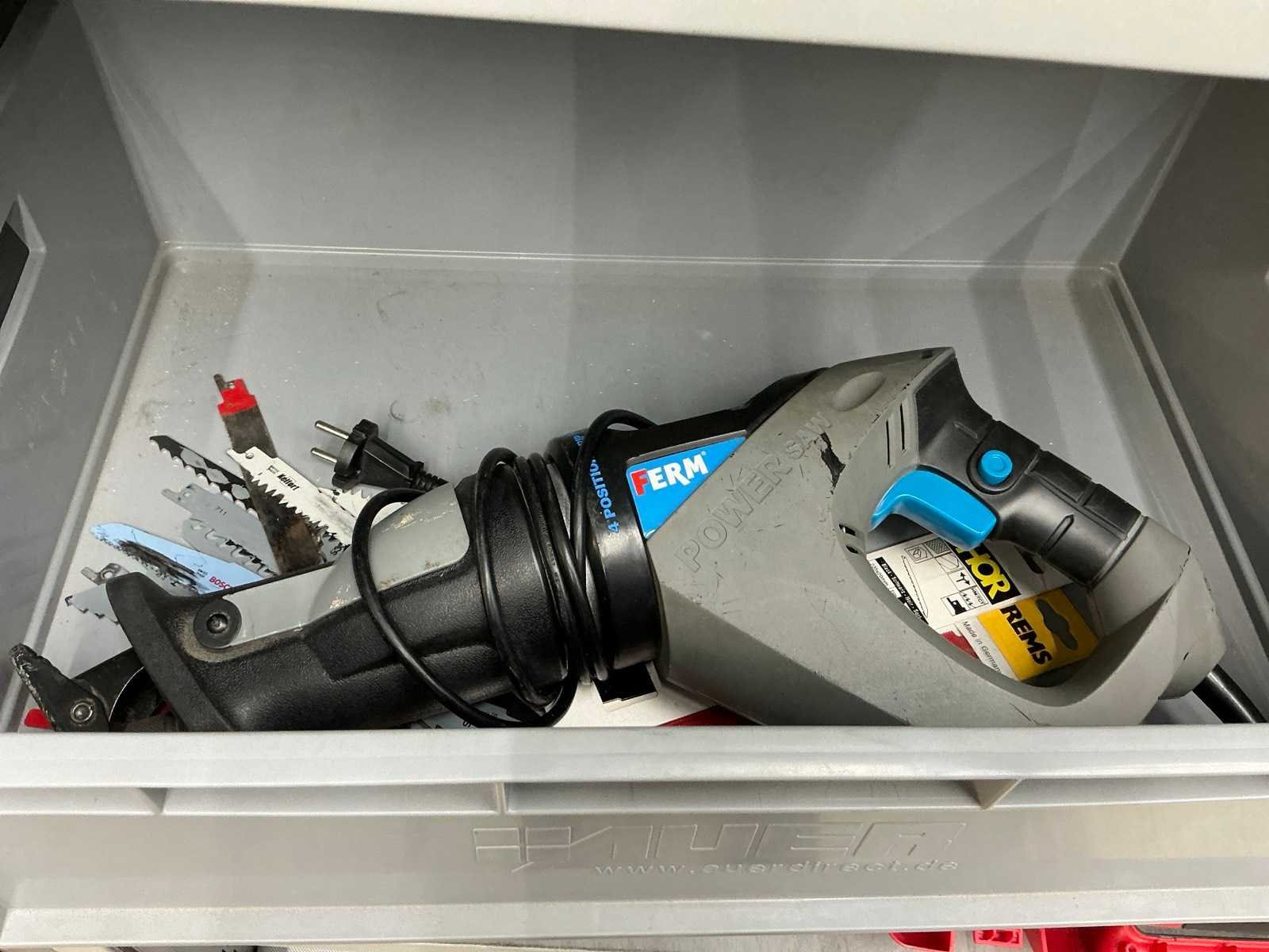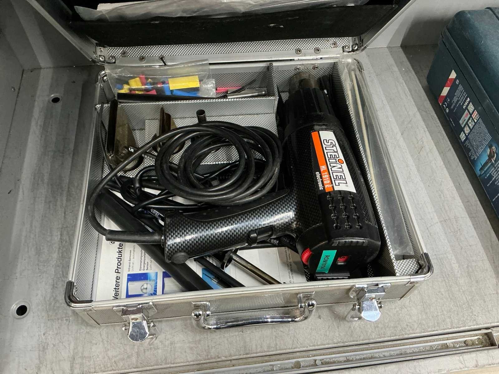 Inhoud Bosch decoupeerzaag, haakse slijper, klopboormachine en zware slagmoersleutel. Ferm reciprozaag, Hitachi schuurmachine, Steinel föhn, Hilti kitspuit en Dremel graveerapparaat Nee Merk: Inofec Lengte: 120cm Breedte: 45cm Hoogte: 195cm