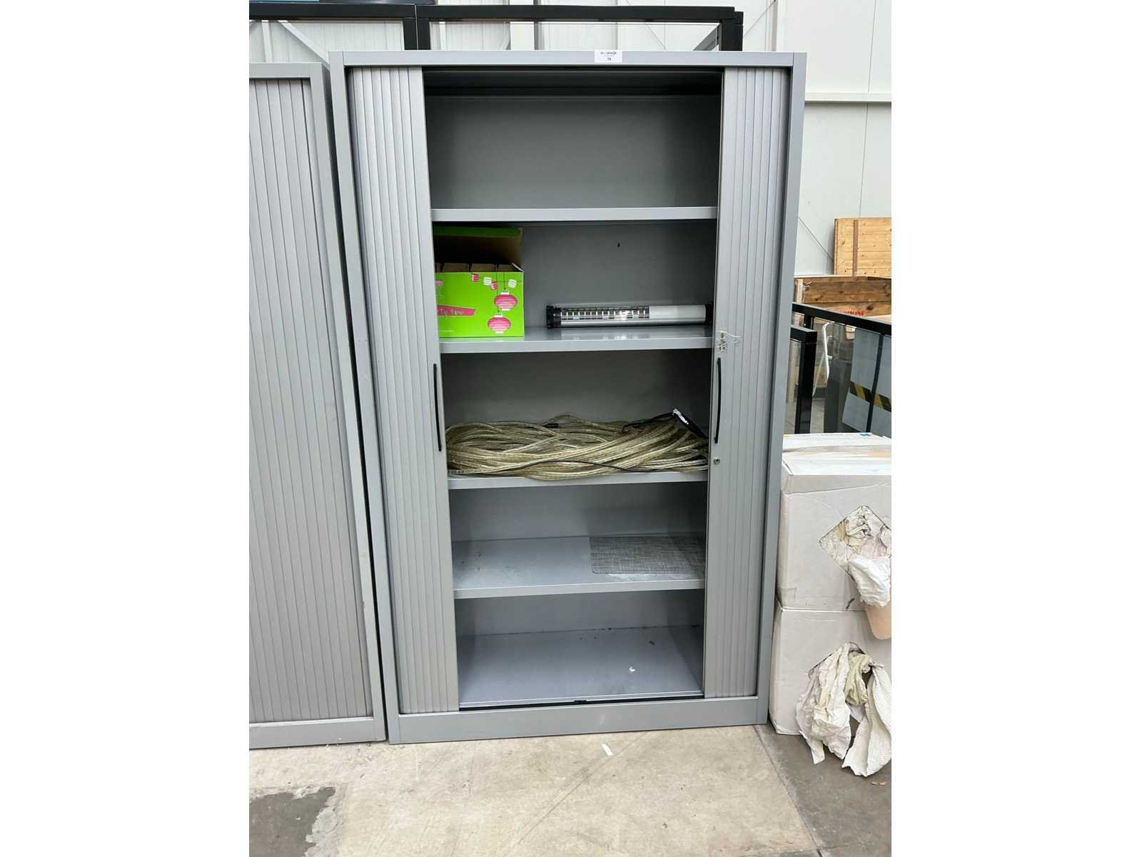 Stalen jaloeziedeurkast met inhoud