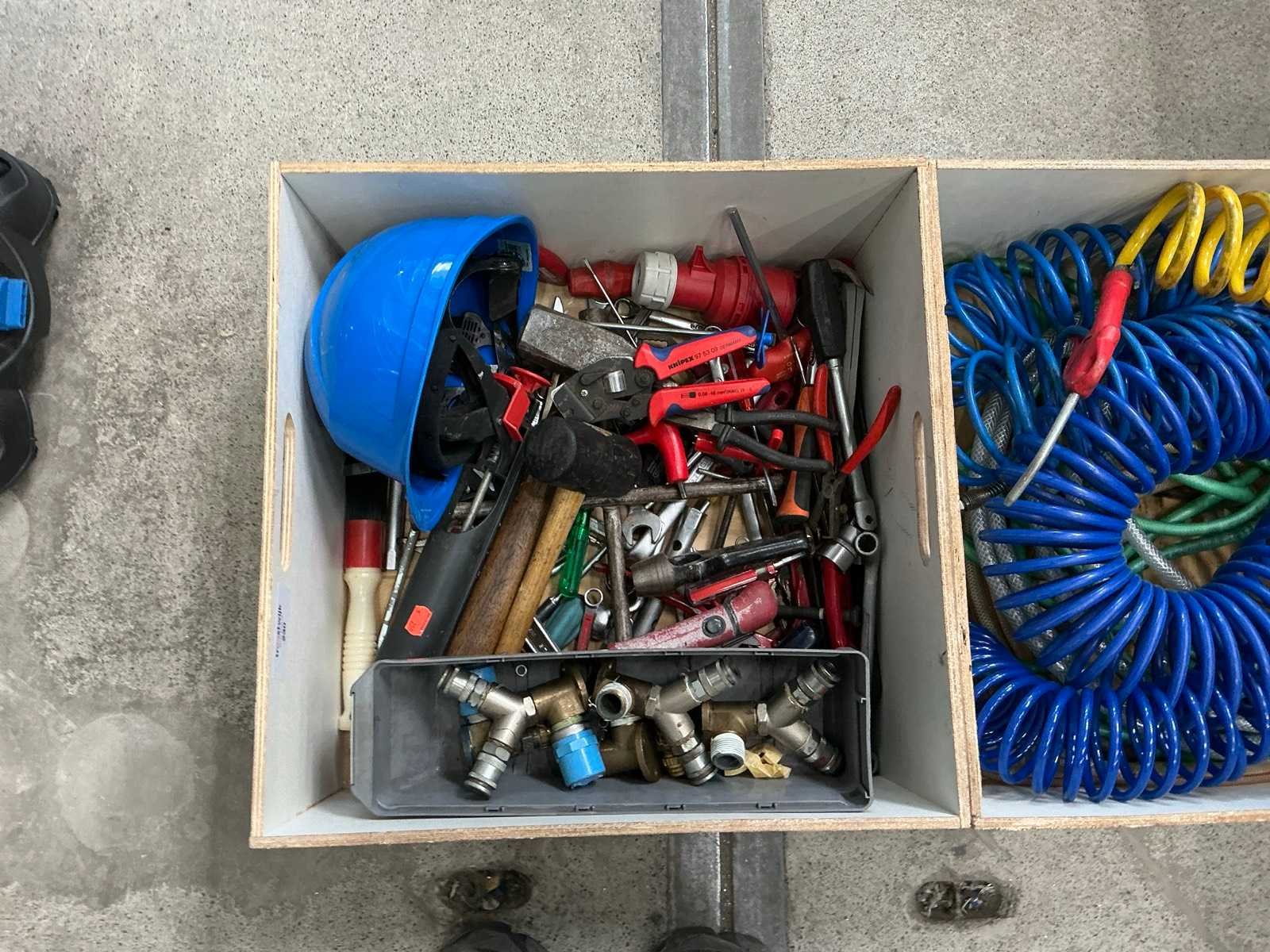 Diverse handgereedschap en luchtslang