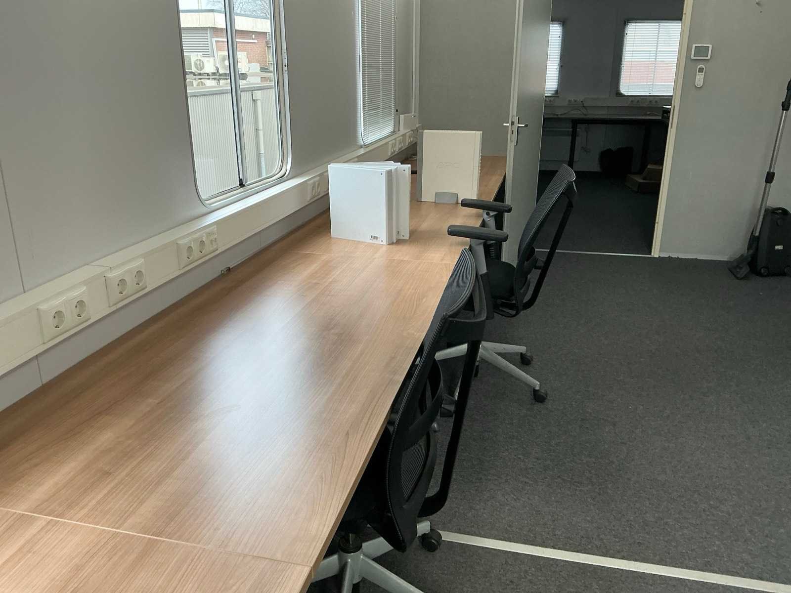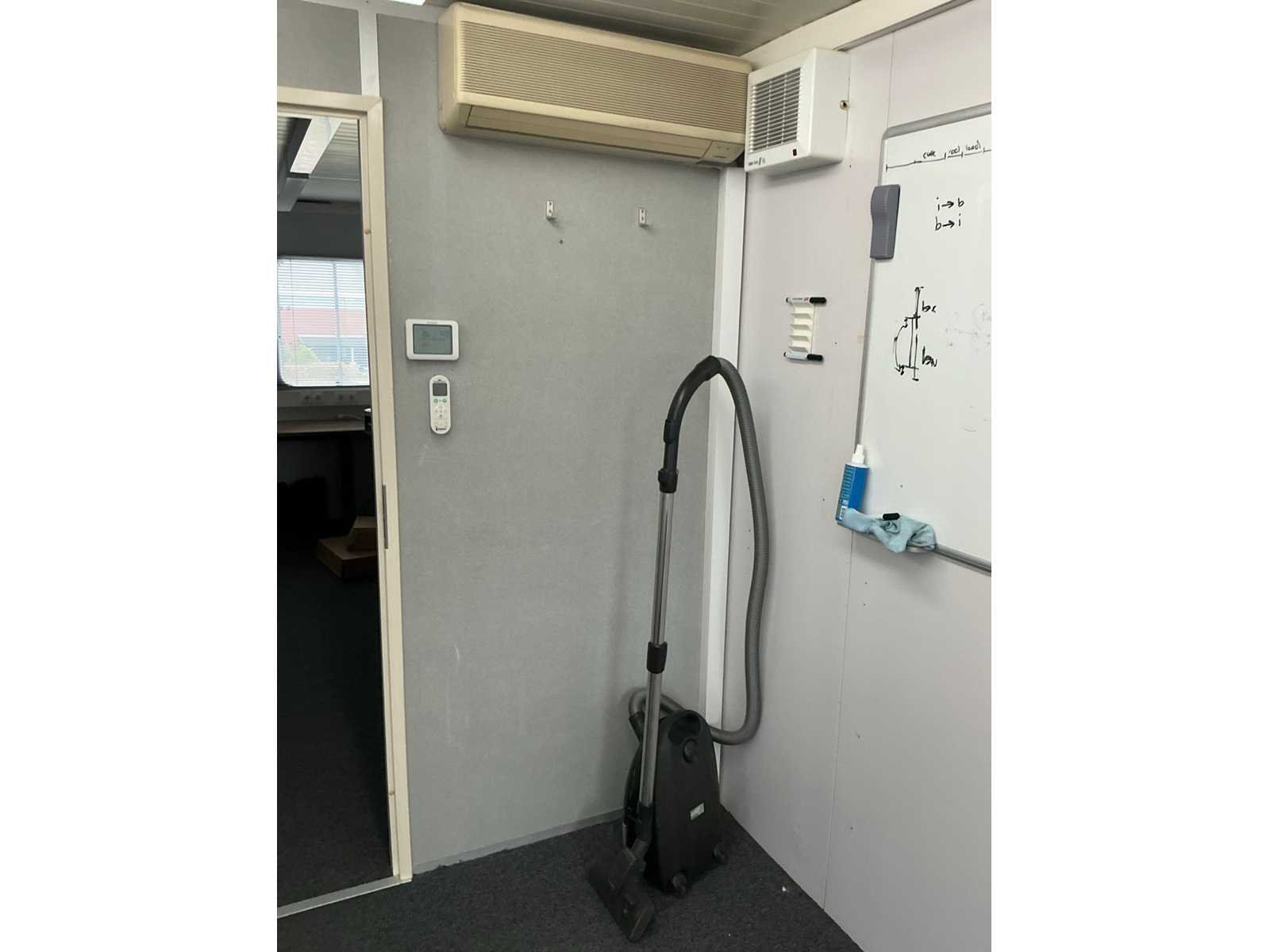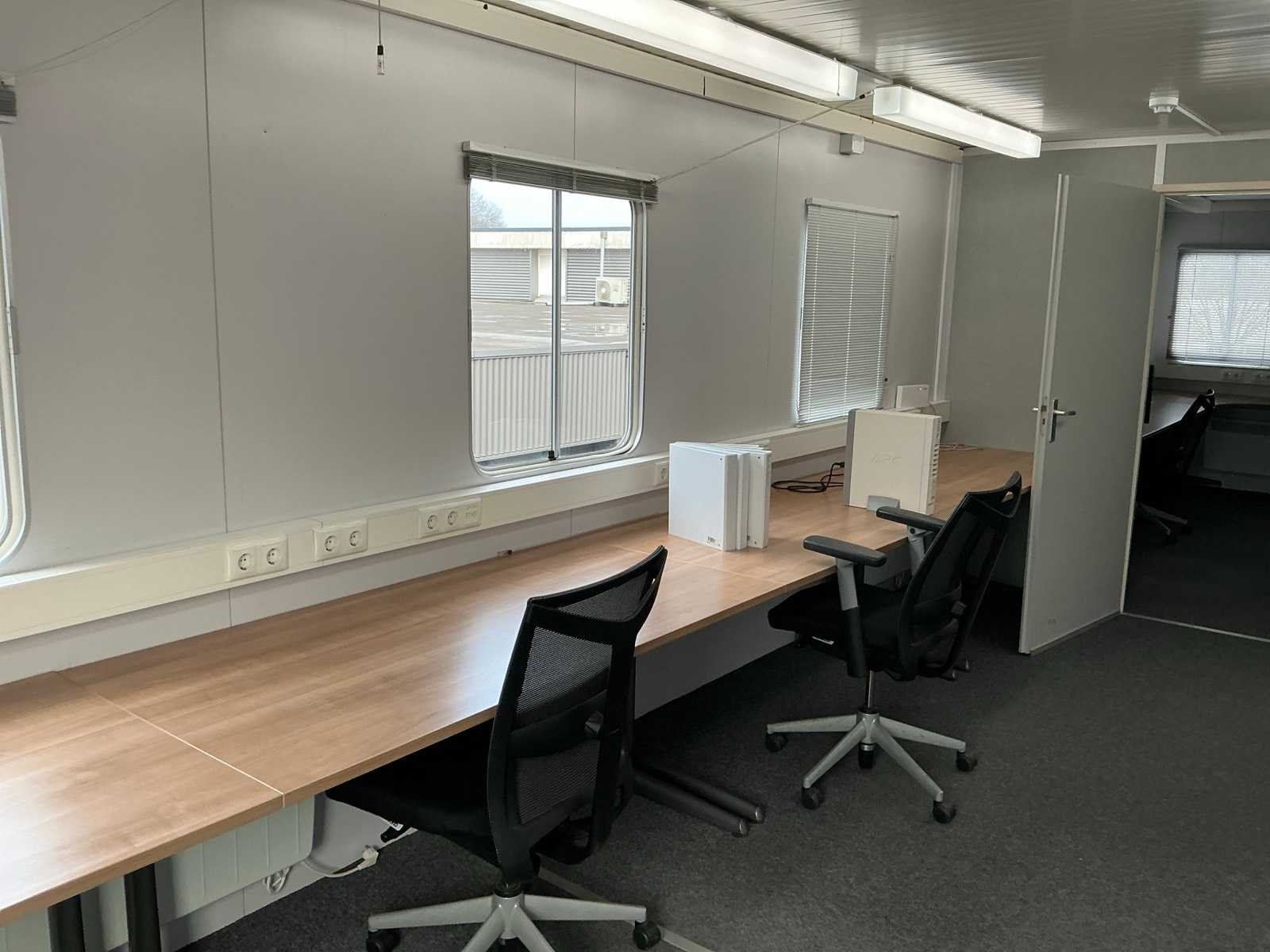 De container is voorzien van elektra en een airco unit. Het geheel is ingericht met een compleet kantoor, verlichting, rookmelders en raambekleding. De container staat op een stalen onderstel gebouwd, welke op een volgende container zou kunnen worden geplaatst. Nee