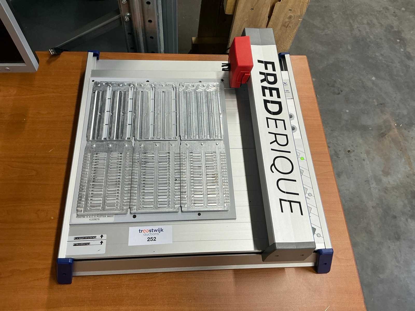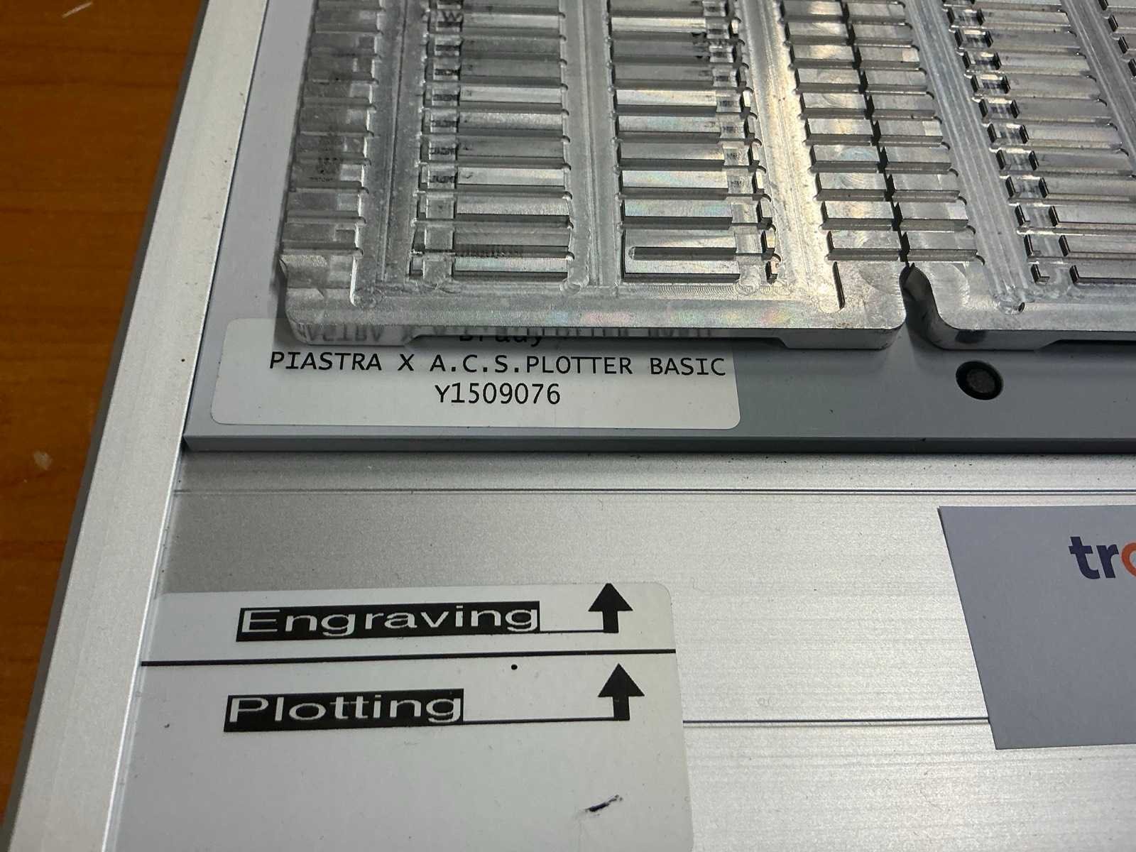Volledige inventaris voor het printen voor kabels en slangen, inclusief: Murrplastik P3b labelprinter (defect, voor onderdelen), klemmenschilden/terminal blocks, mallen en overige benodigdheden voor labelprinten, tafel, Mewaf jaloeziedeurkast en bureaustoel Nee Merk: Brady Type: ACS Plotter VP600