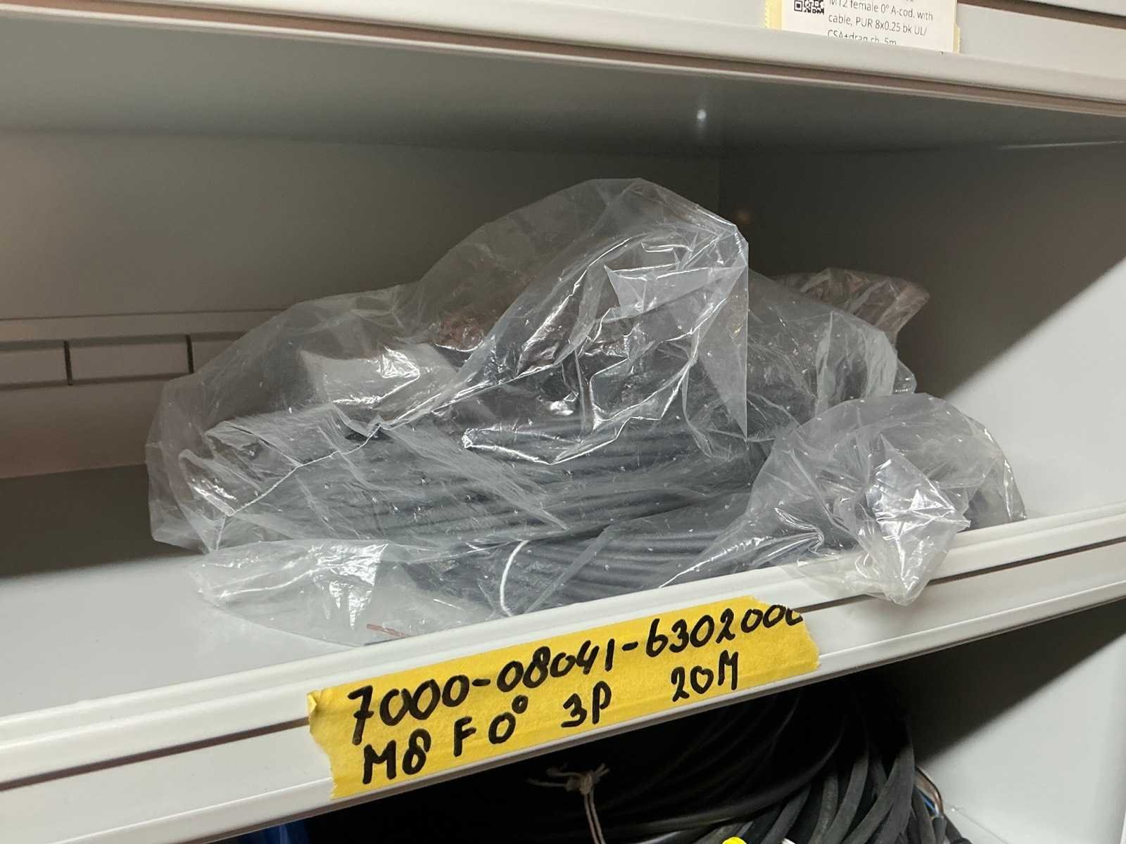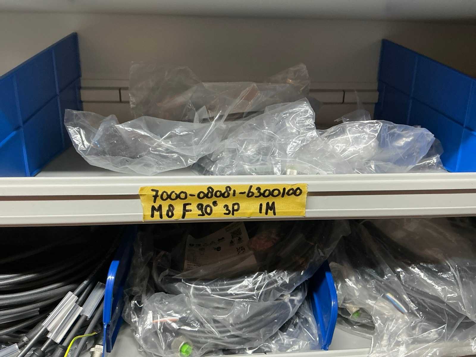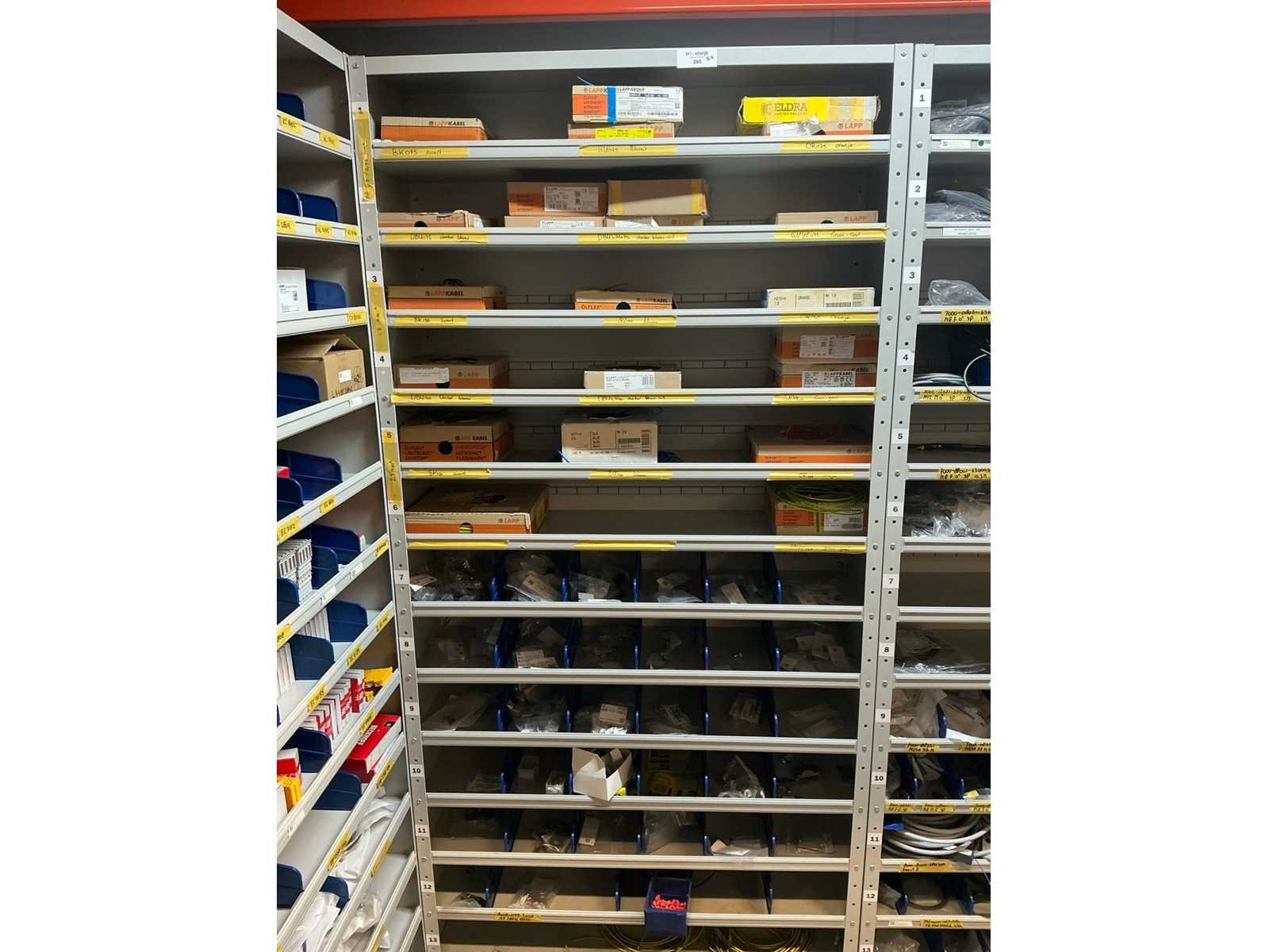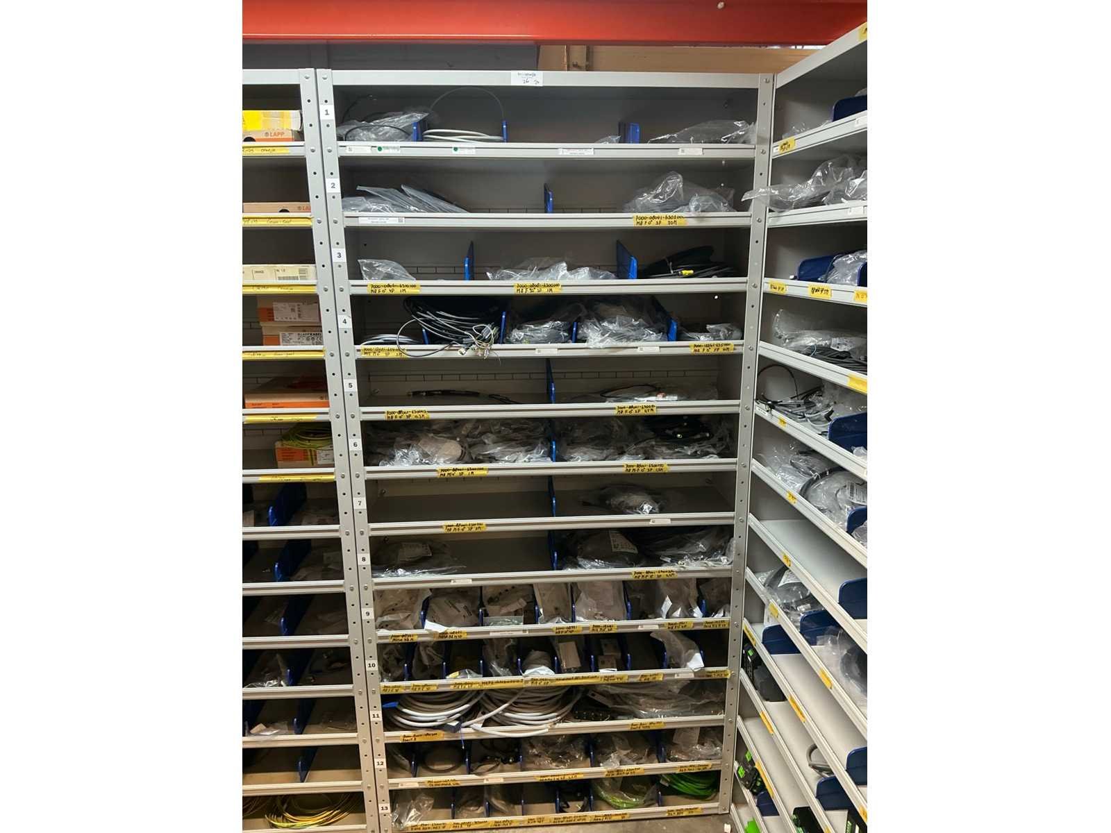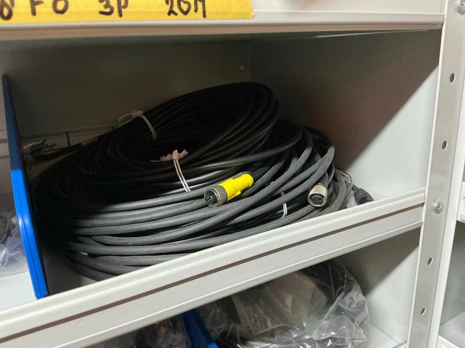 Partij kabel en robotconnectoren in stalen vakkenkast (2x)