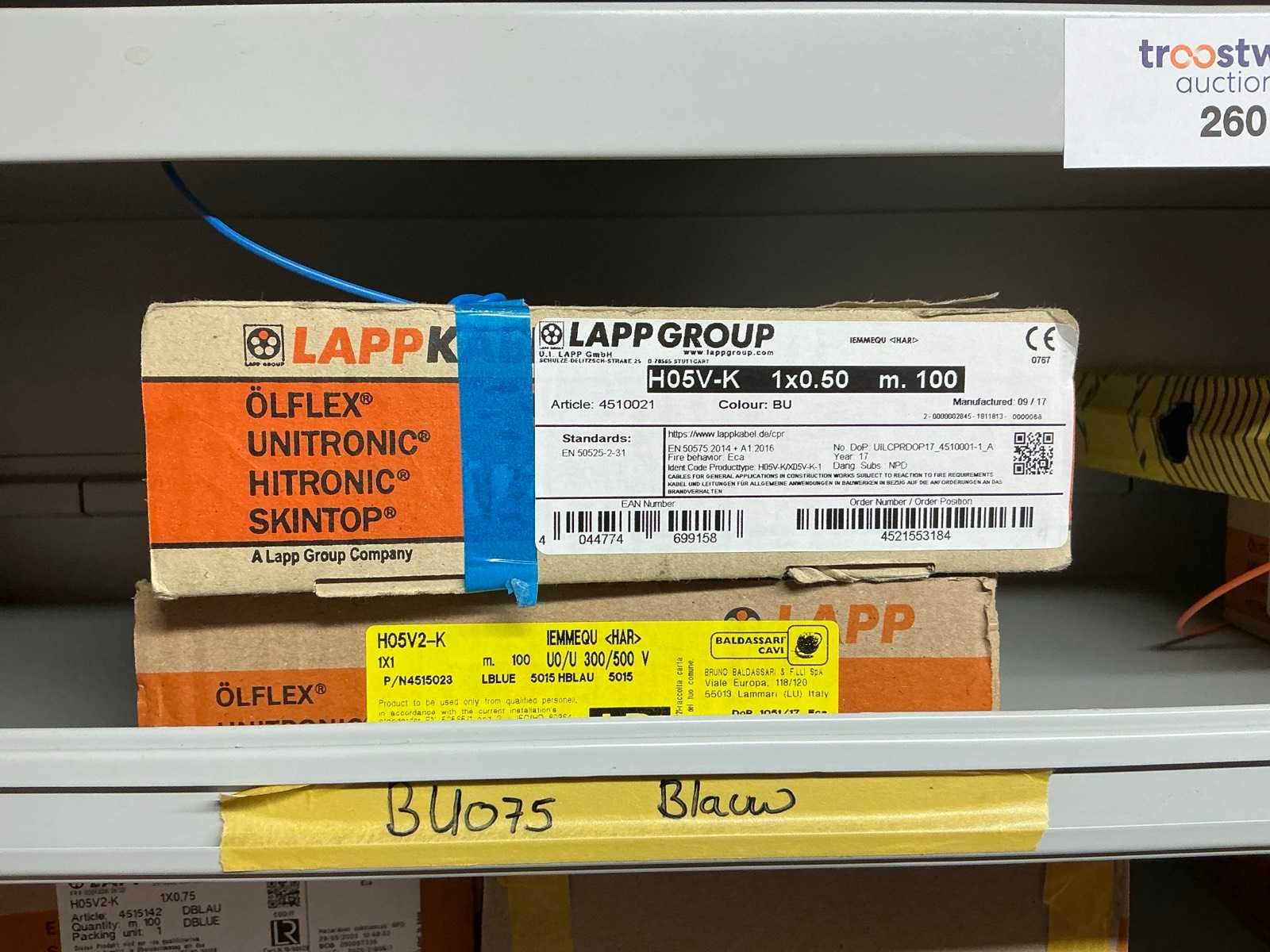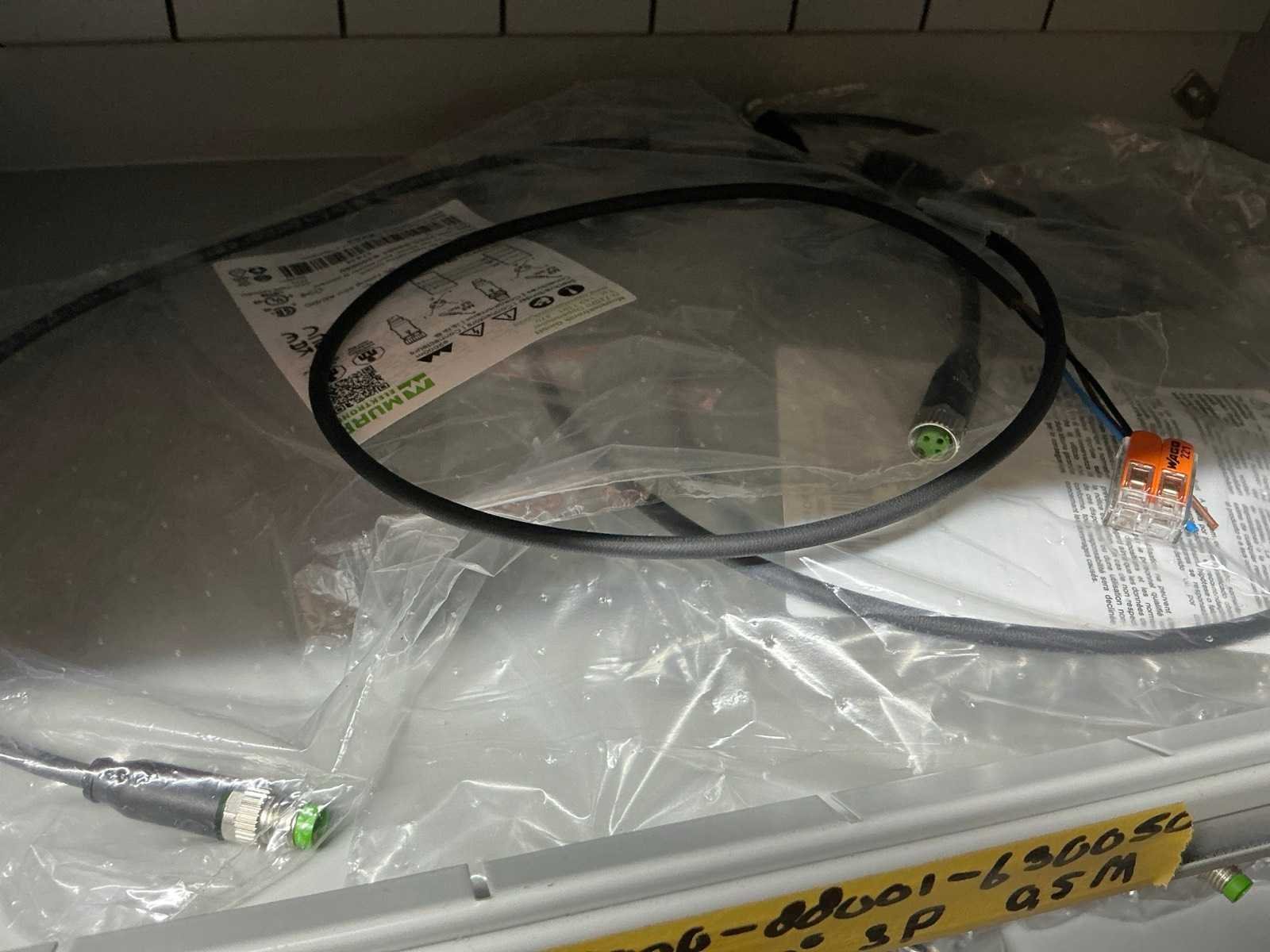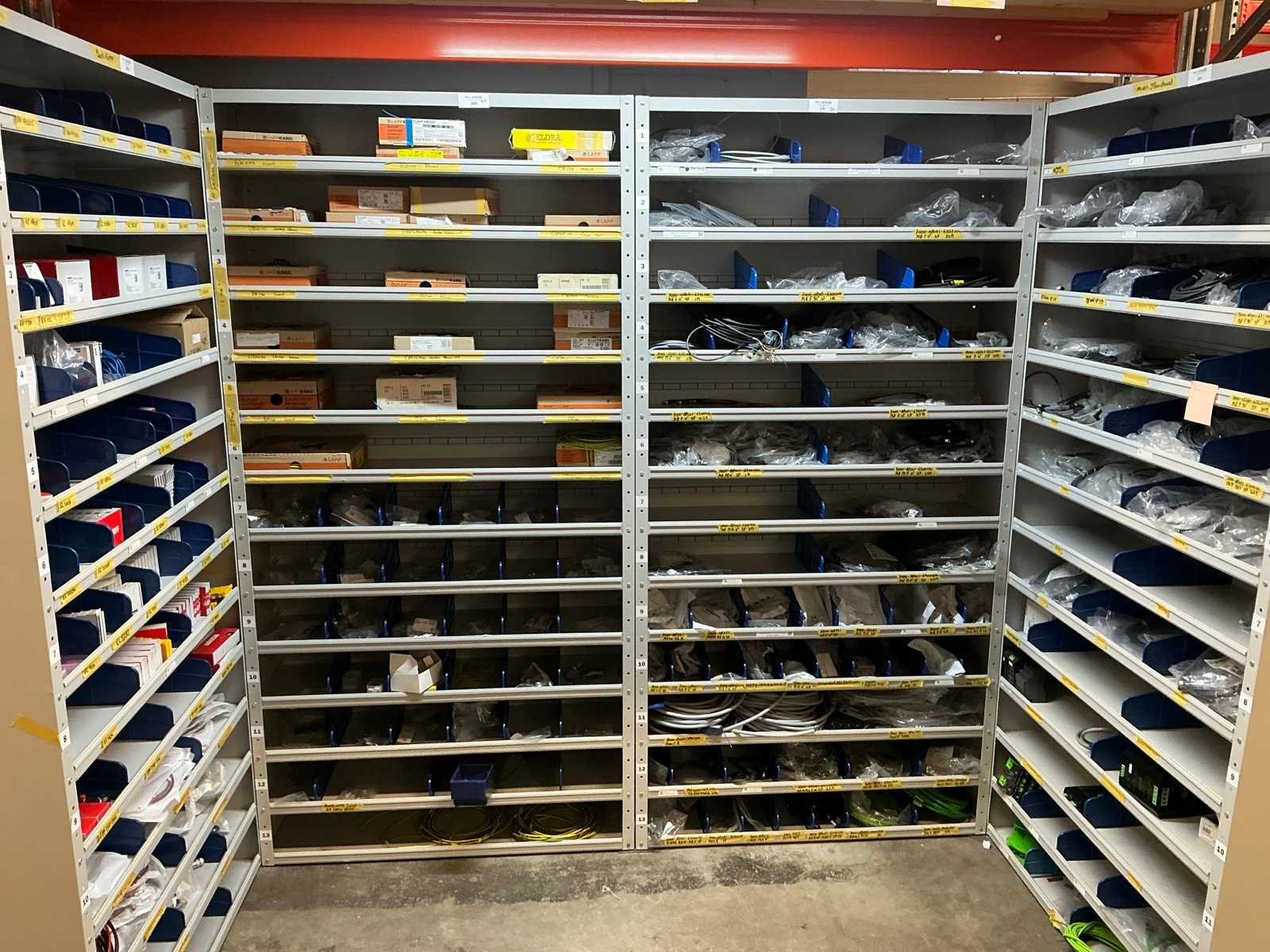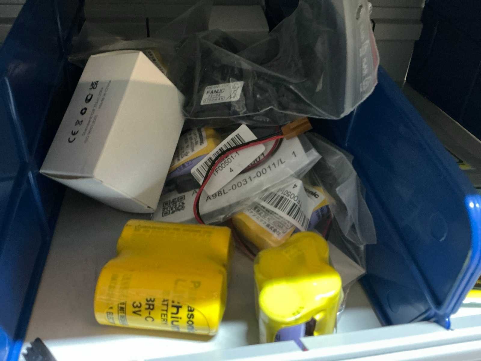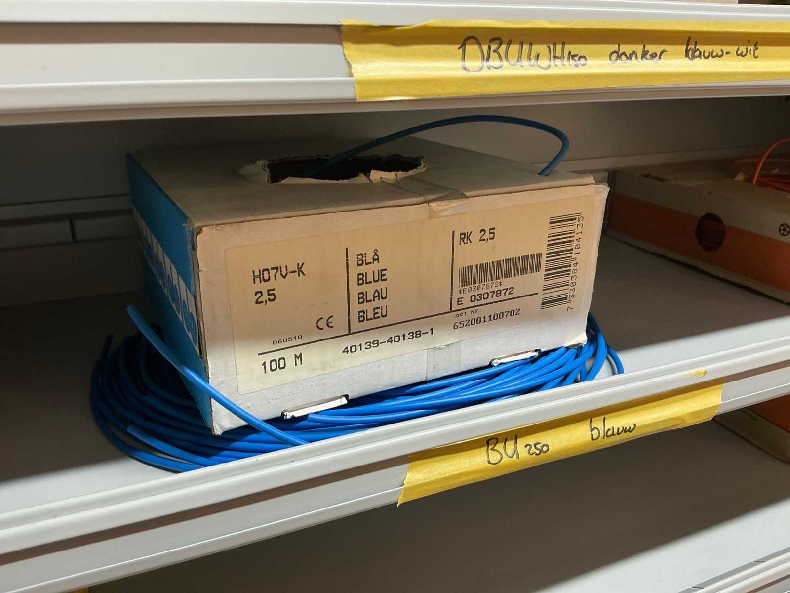 Partij kabel en robotconnectoren in stalen vakkenkast (2x)