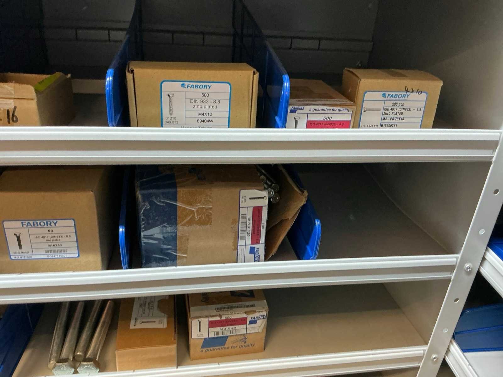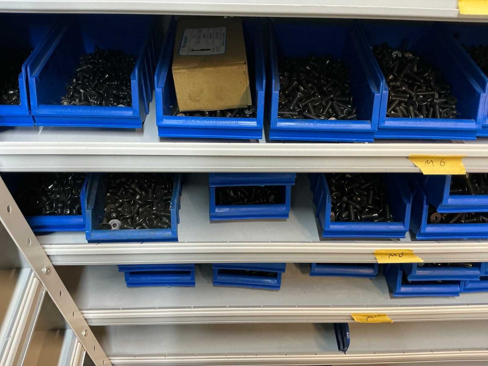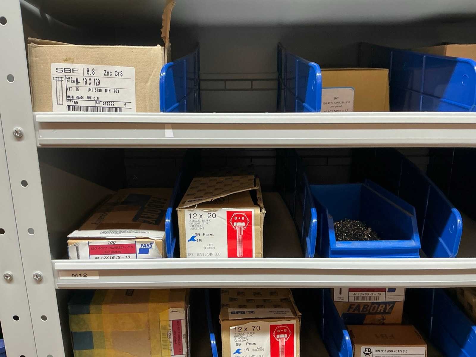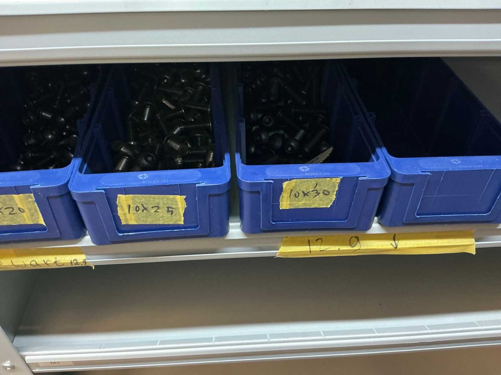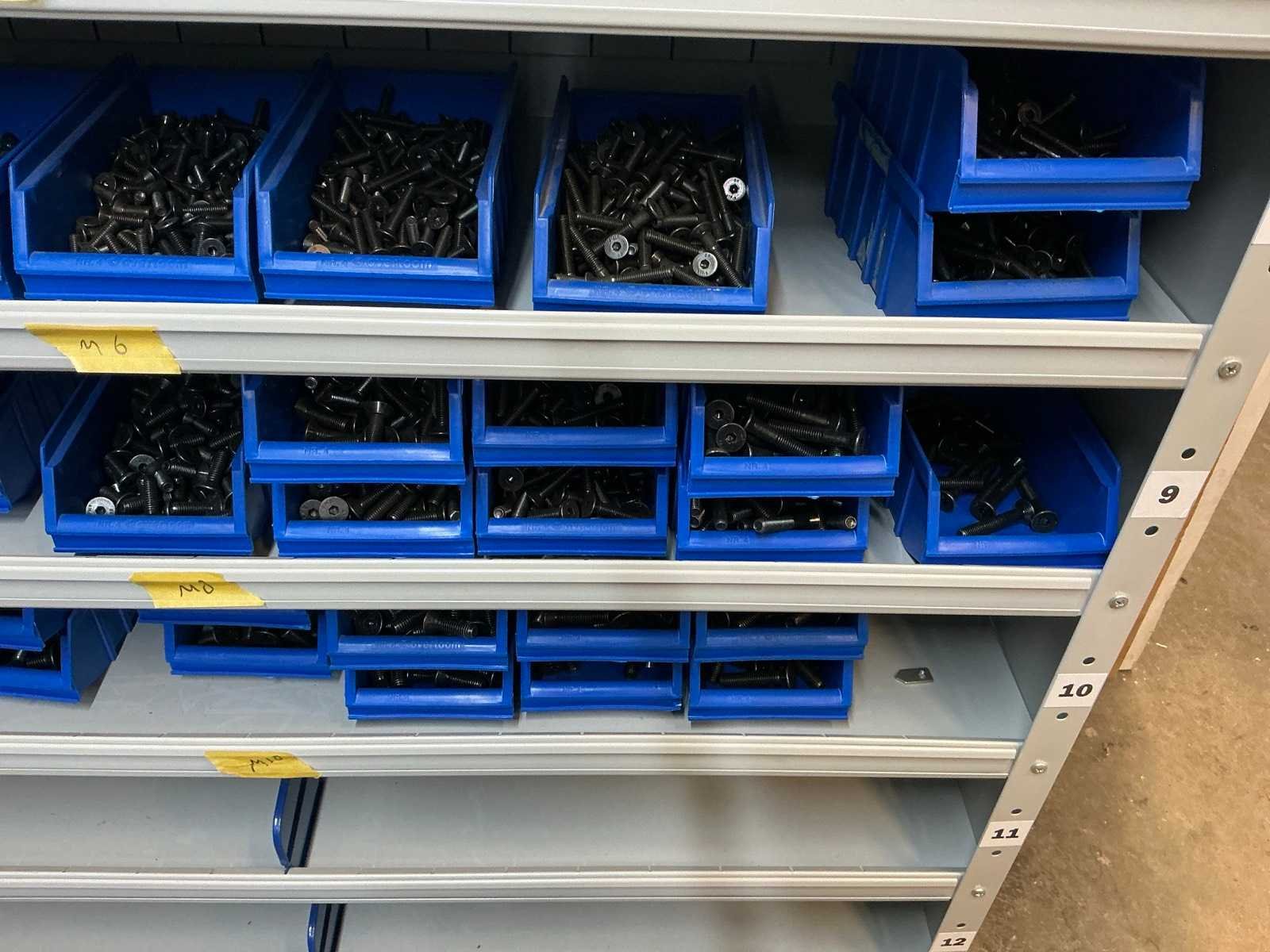 Afmeting per kast: 100x30x199 cm. Inhoud voornamelijk zwart stalen inbus bouten en moeren Nee