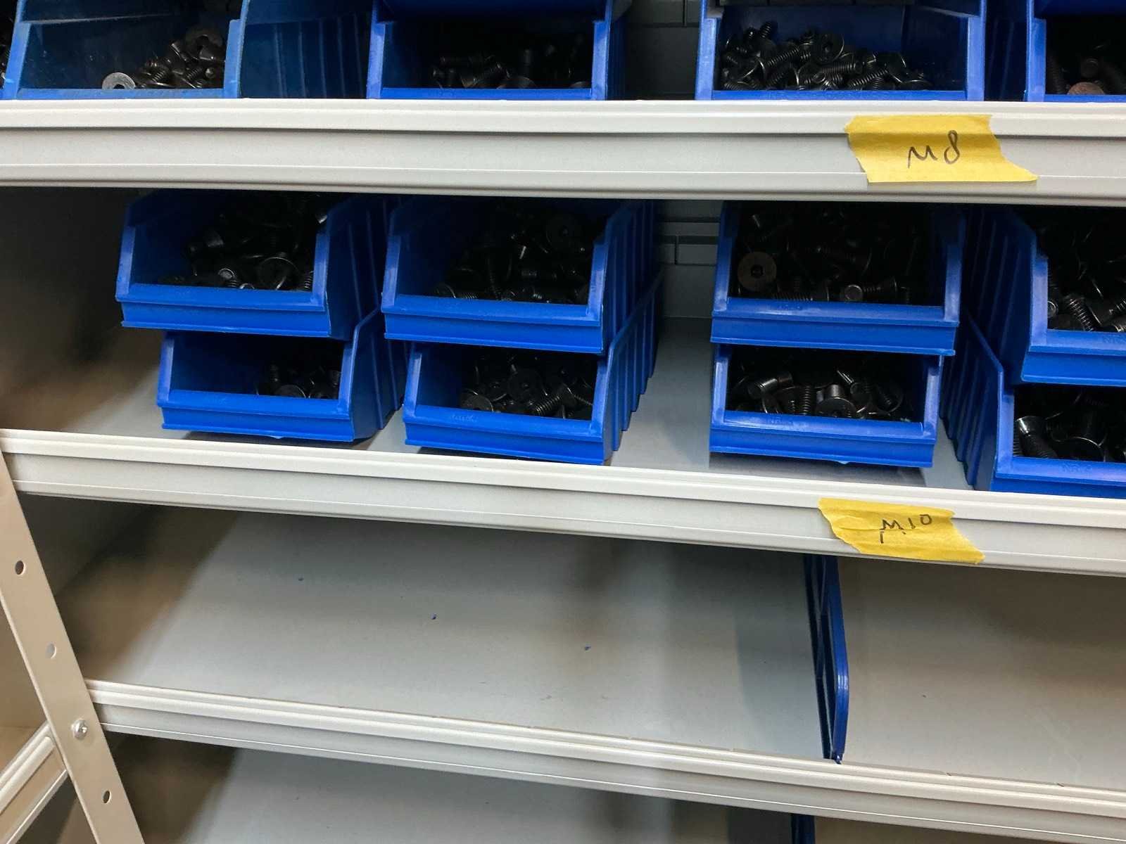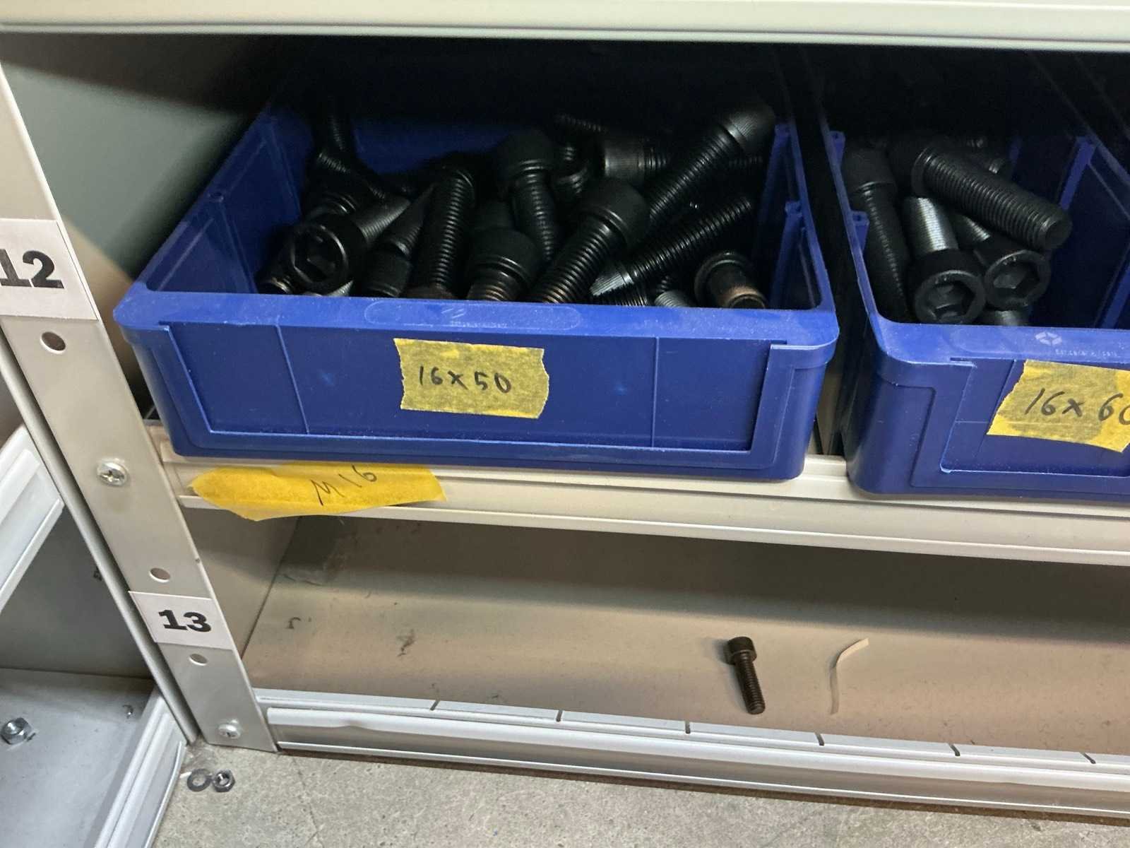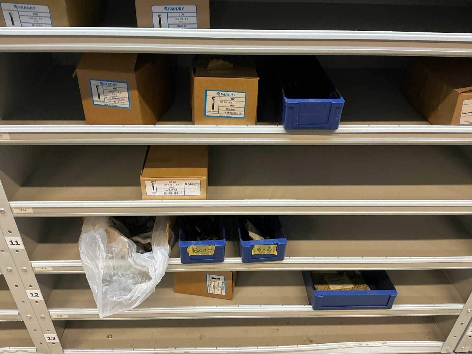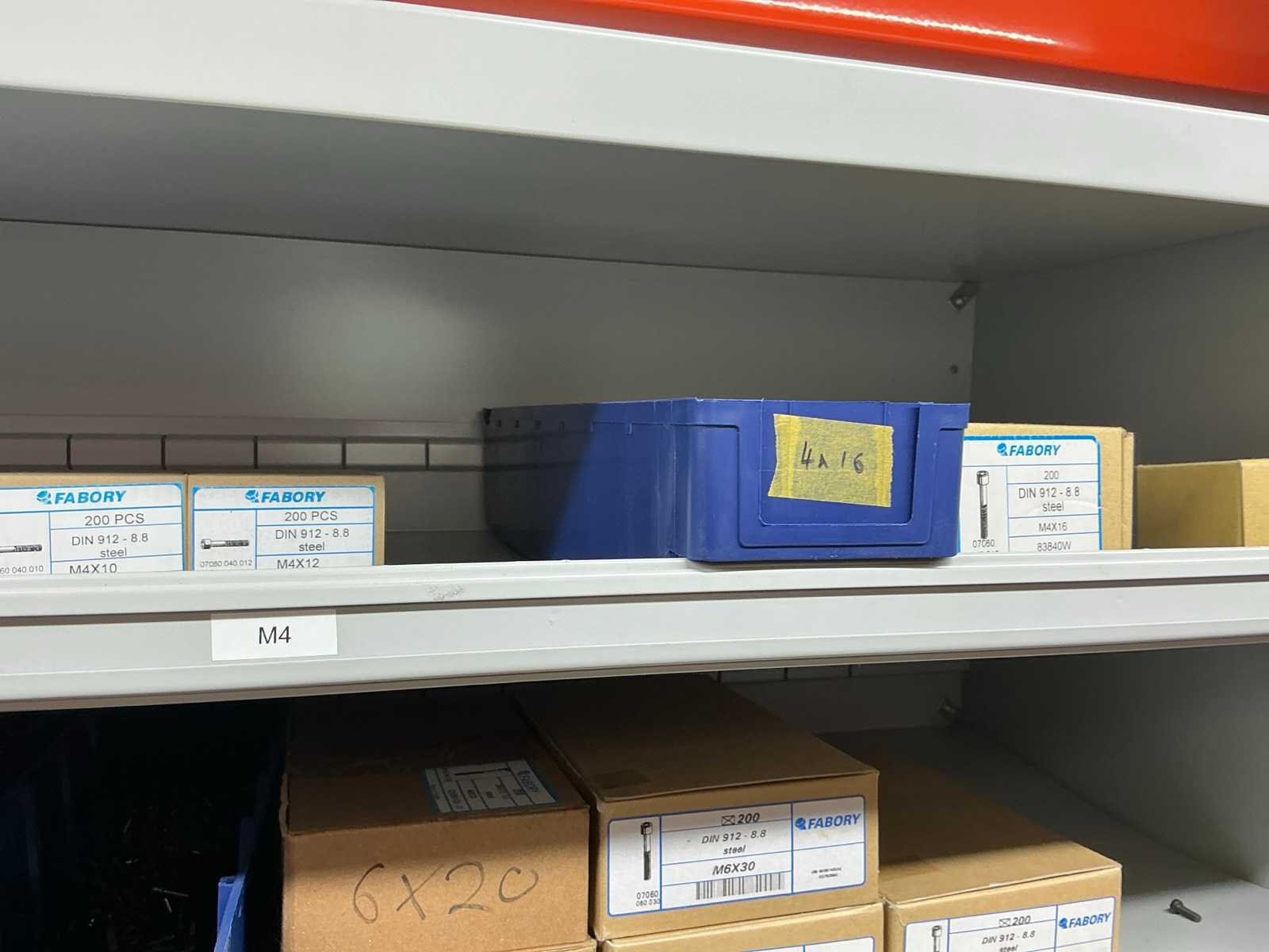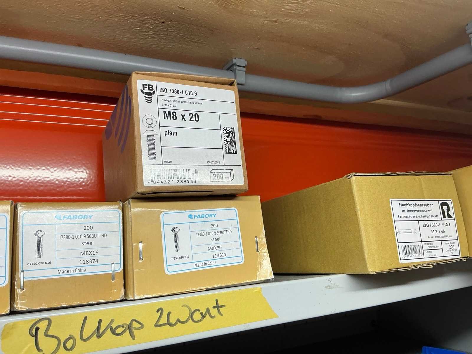 Afmeting per kast: 100x30x199 cm. Inhoud voornamelijk zwart stalen inbus bouten en moeren Nee