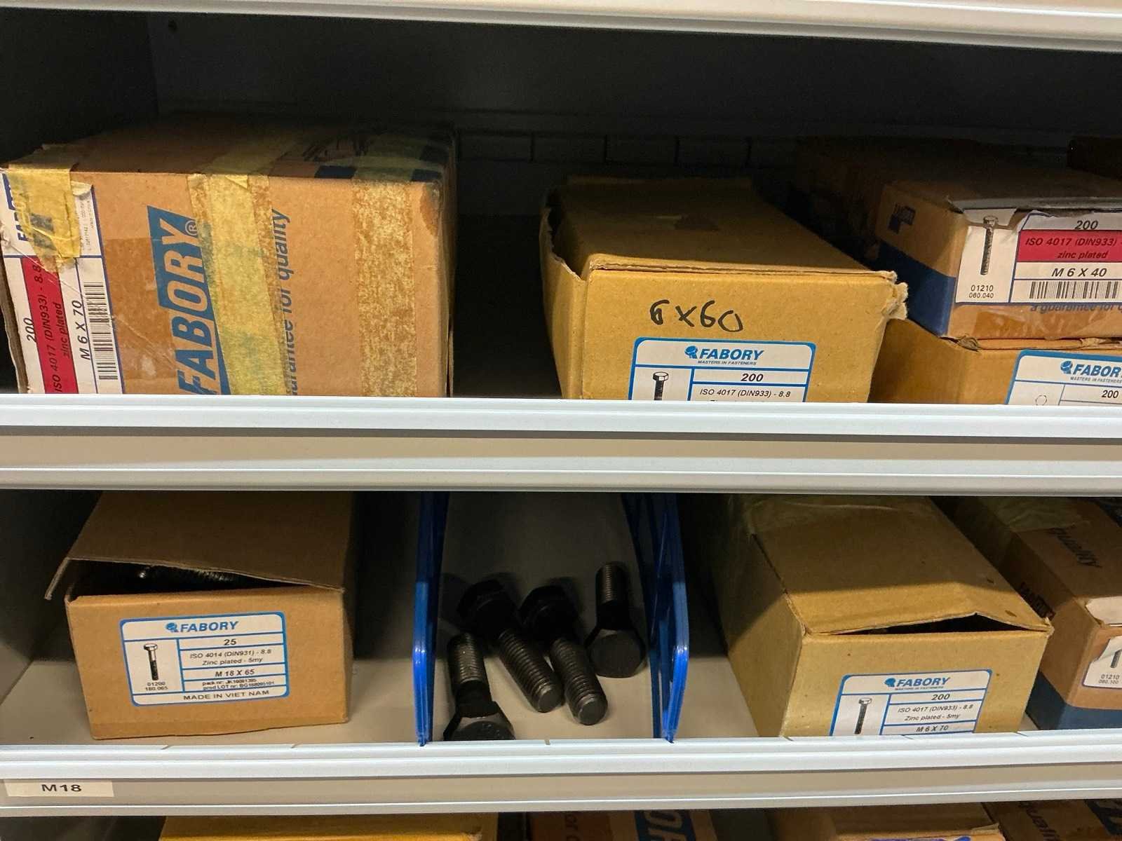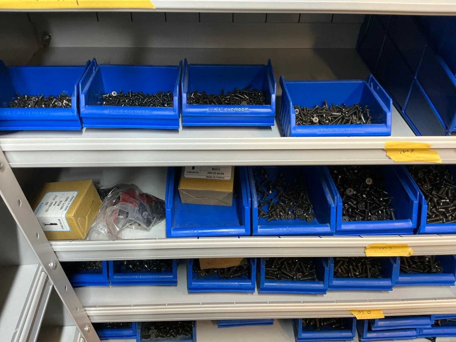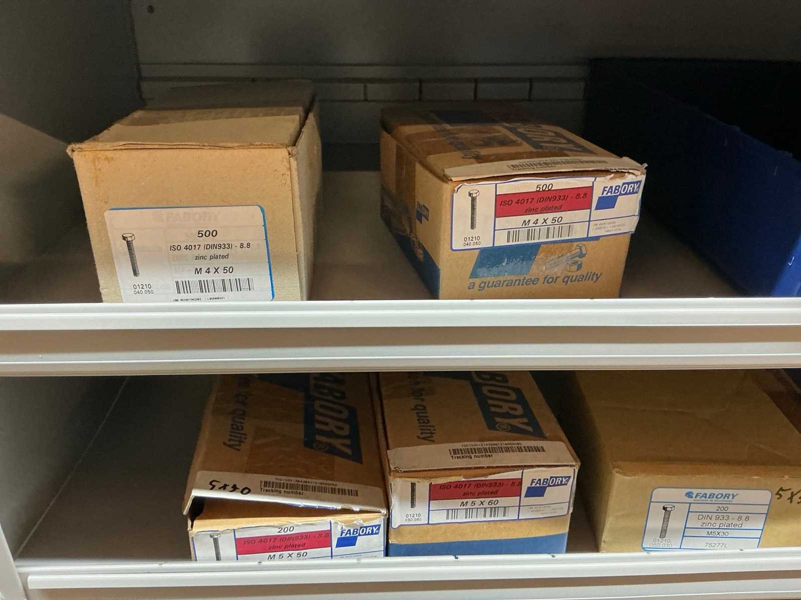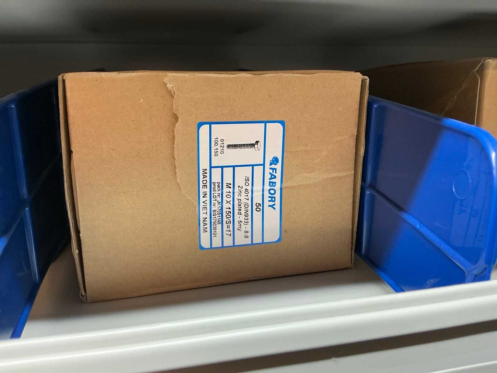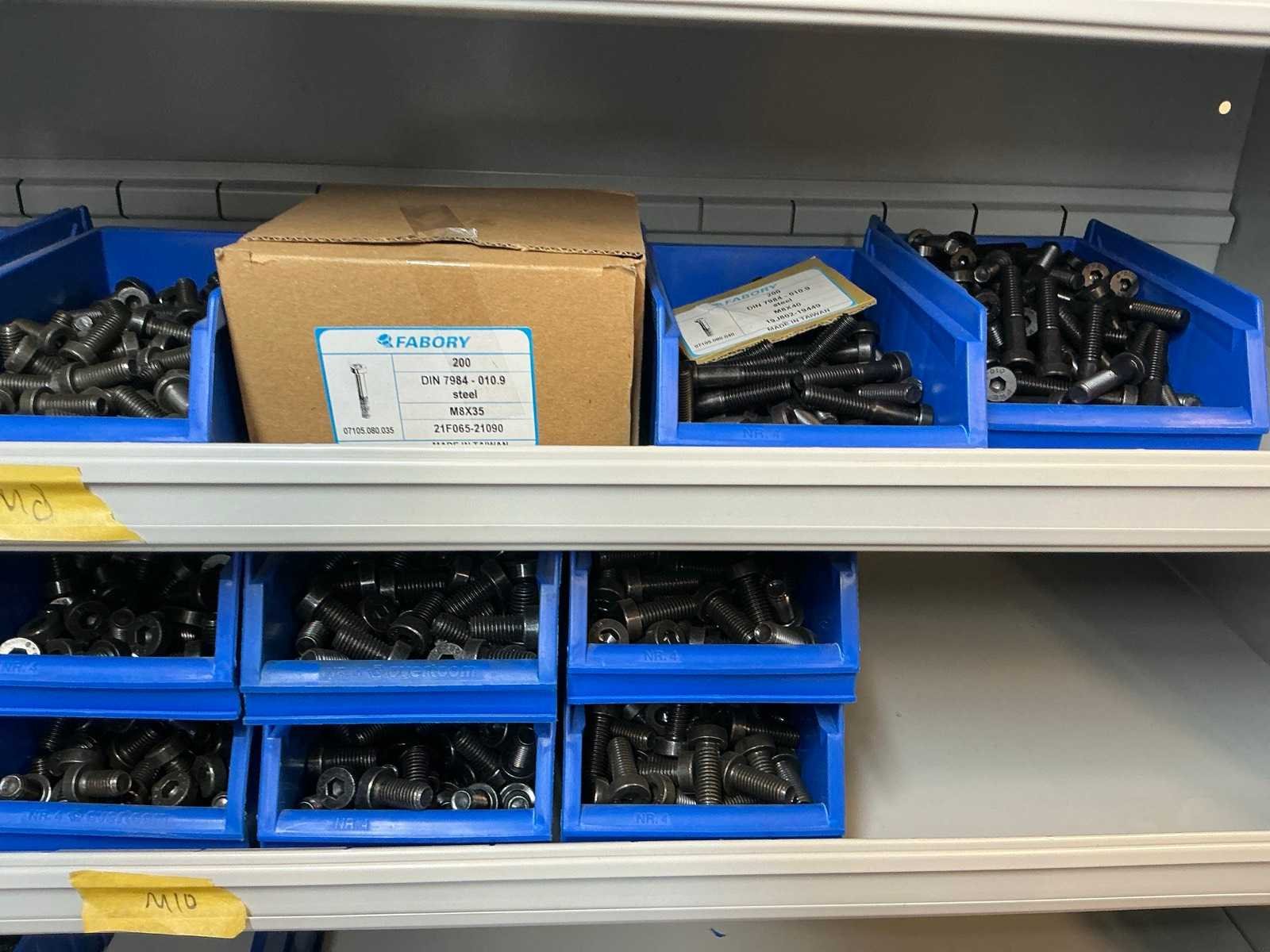 Afmeting per kast: 100x30x199 cm. Inhoud voornamelijk zwart stalen inbus bouten en moeren Nee