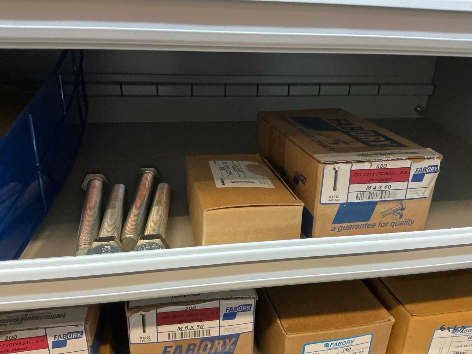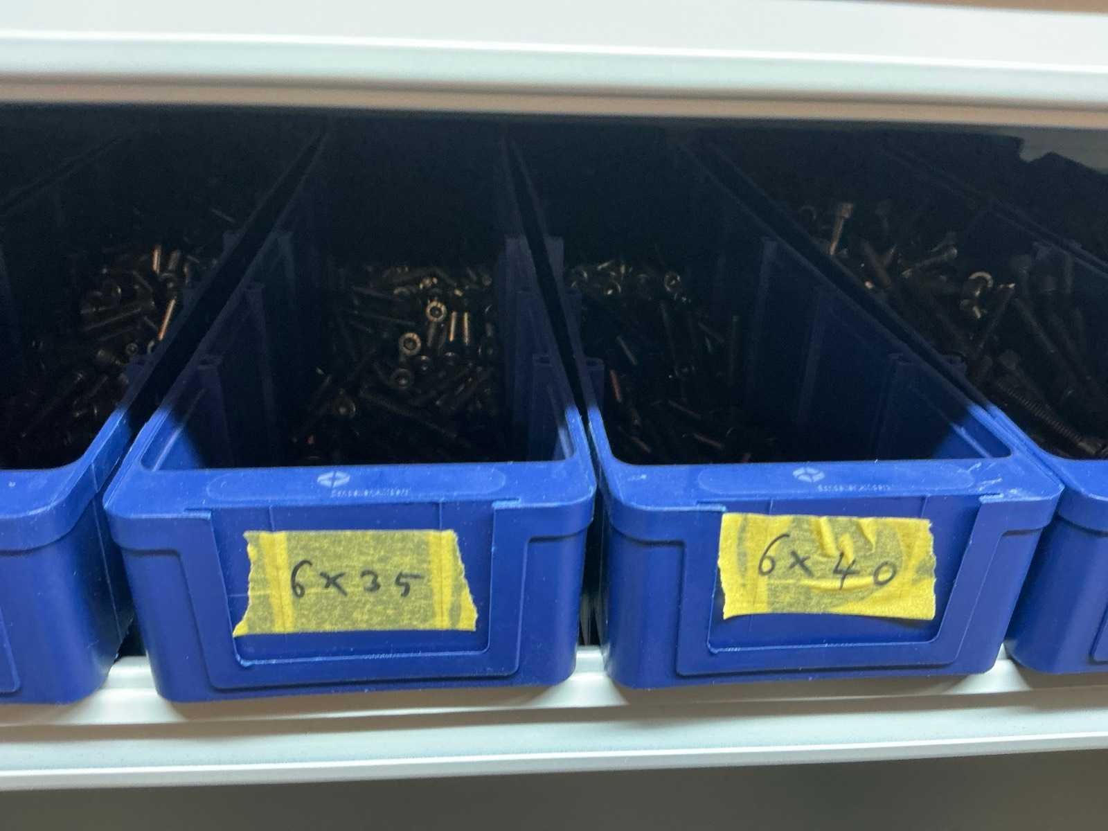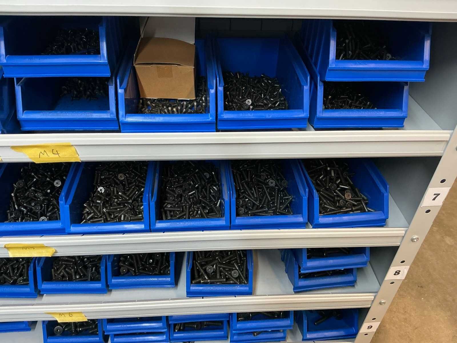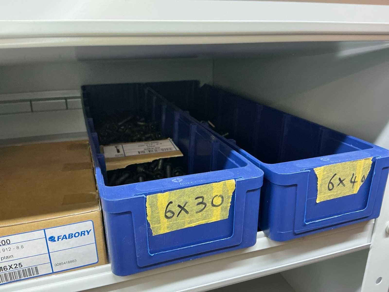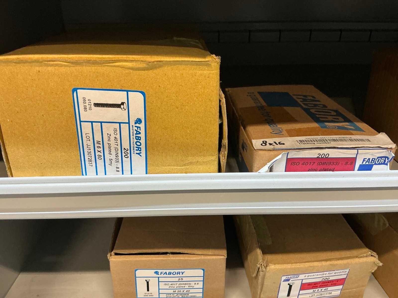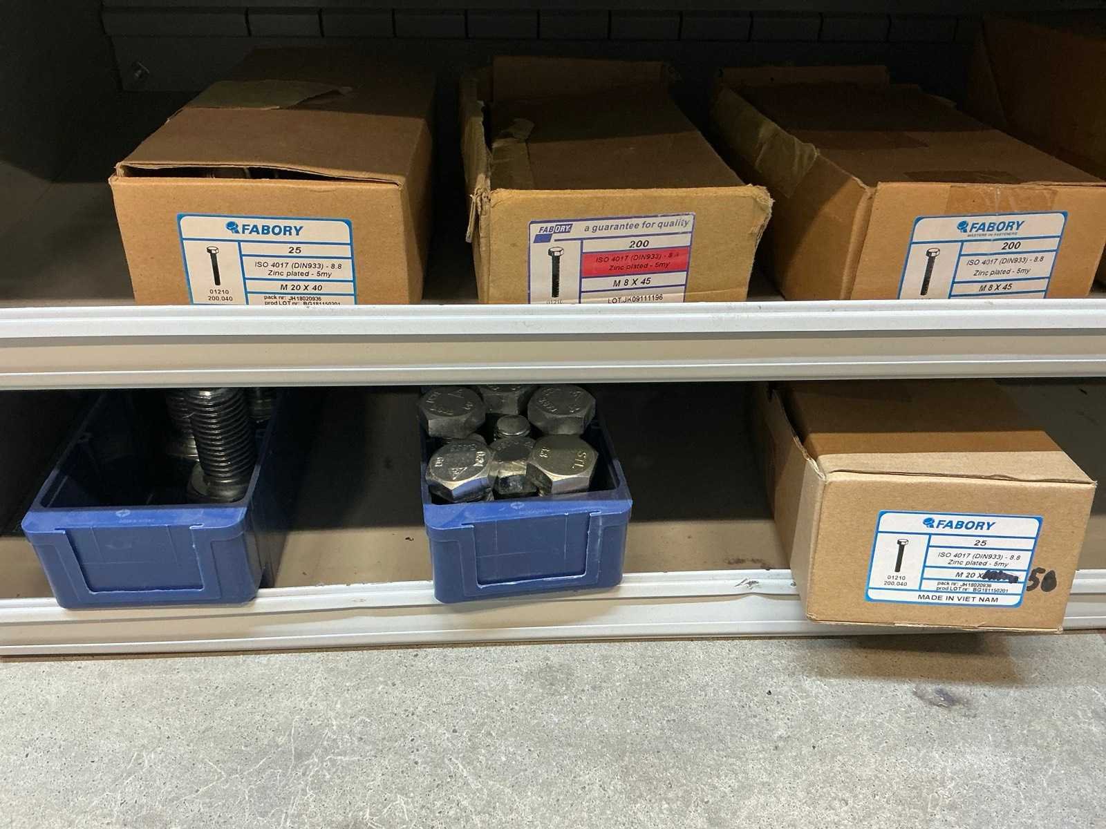 Afmeting per kast: 100x30x199 cm. Inhoud voornamelijk zwart stalen inbus bouten en moeren Nee