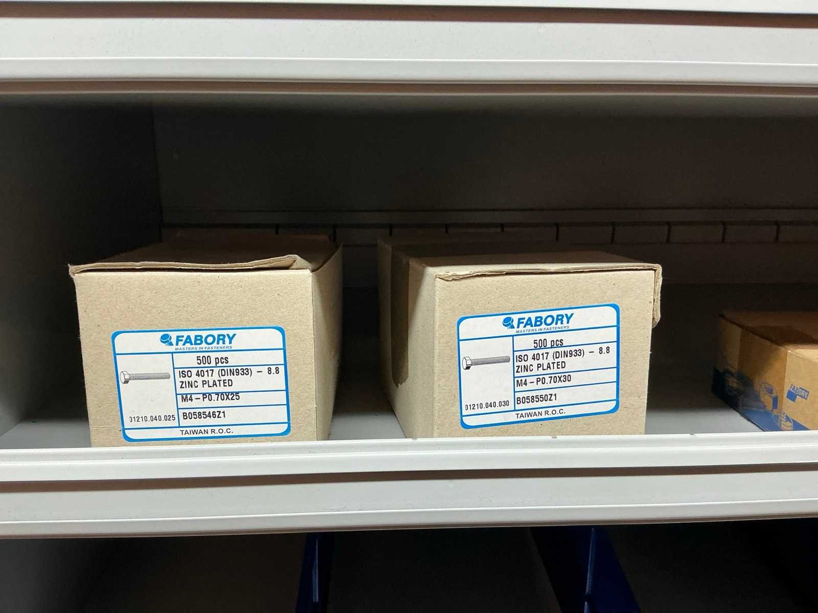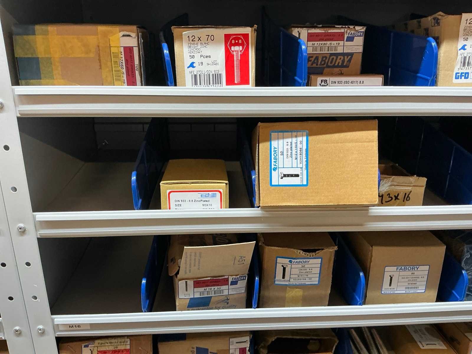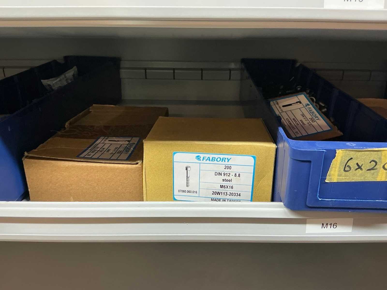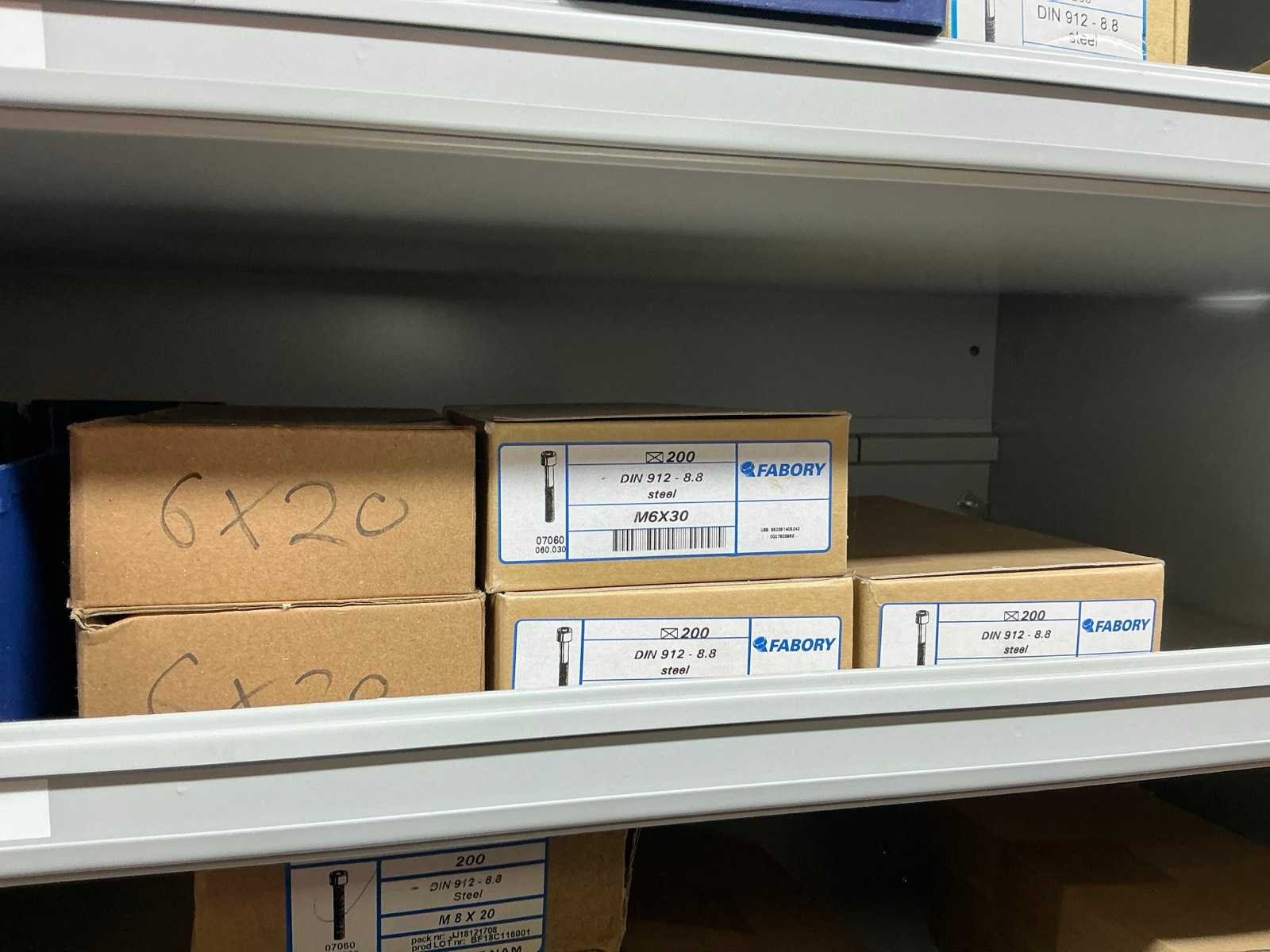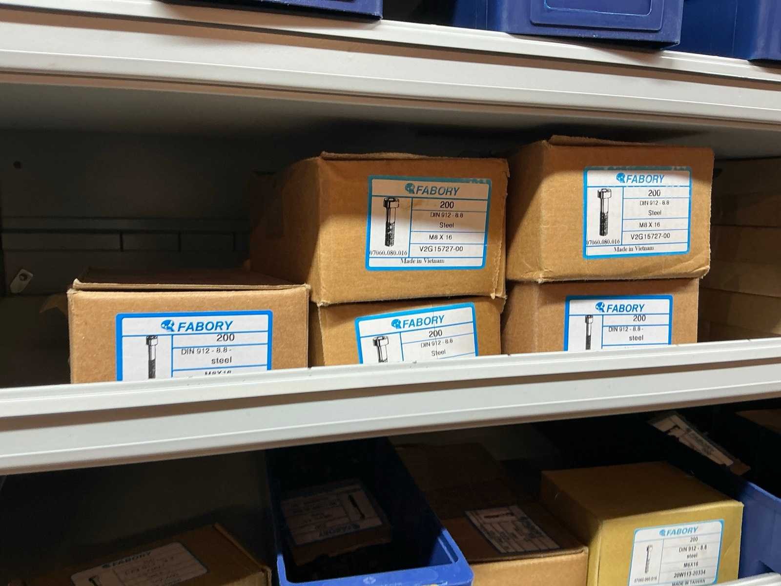 Afmeting per kast: 100x30x199 cm. Inhoud voornamelijk zwart stalen inbus bouten en moeren Nee