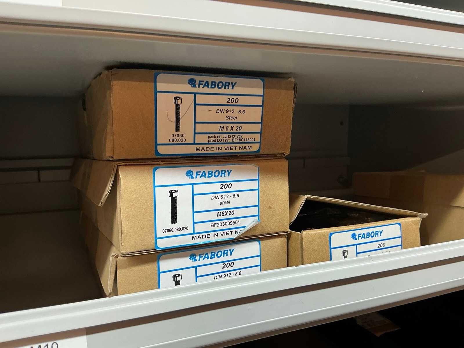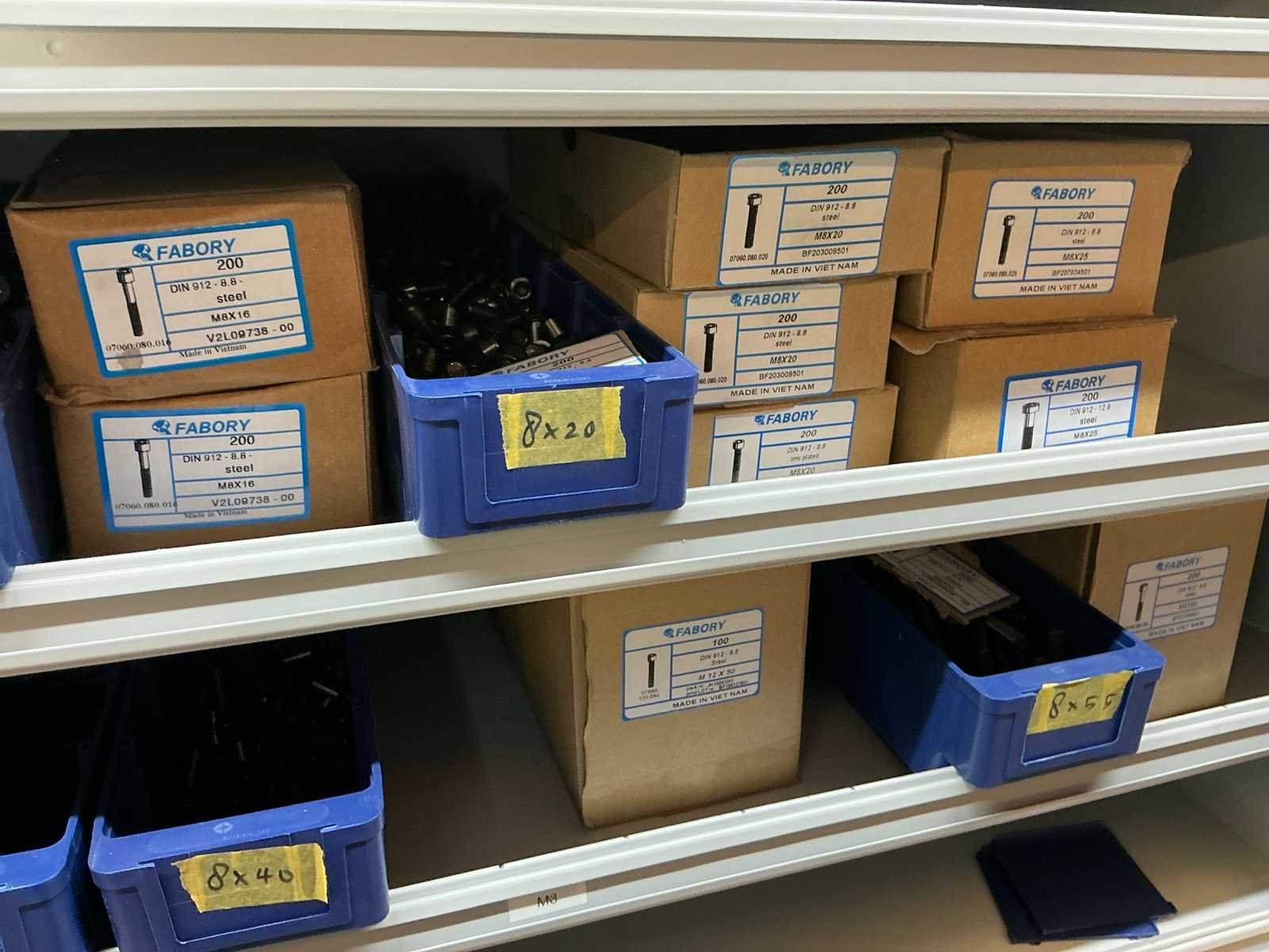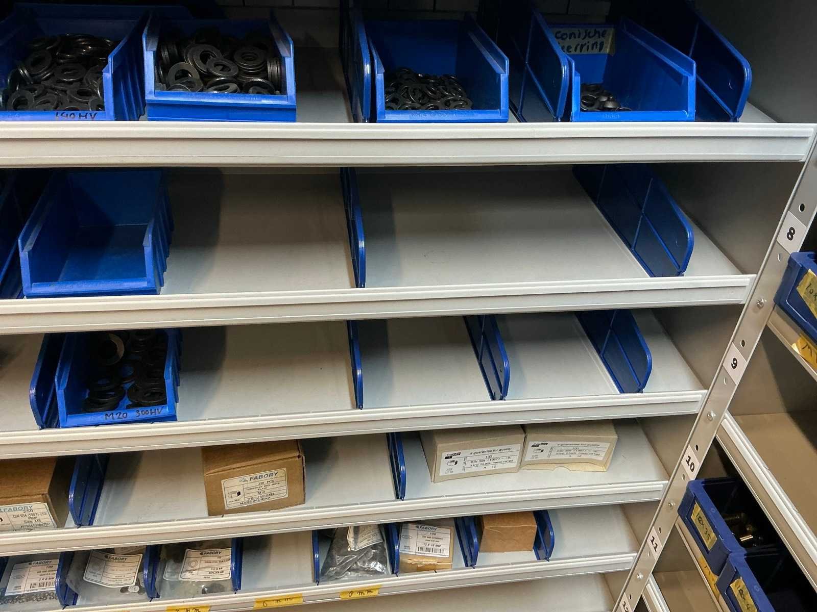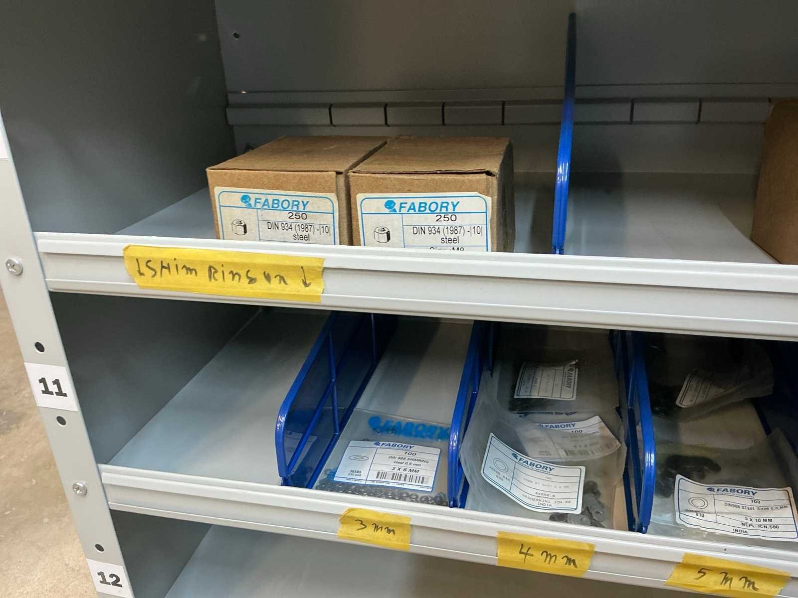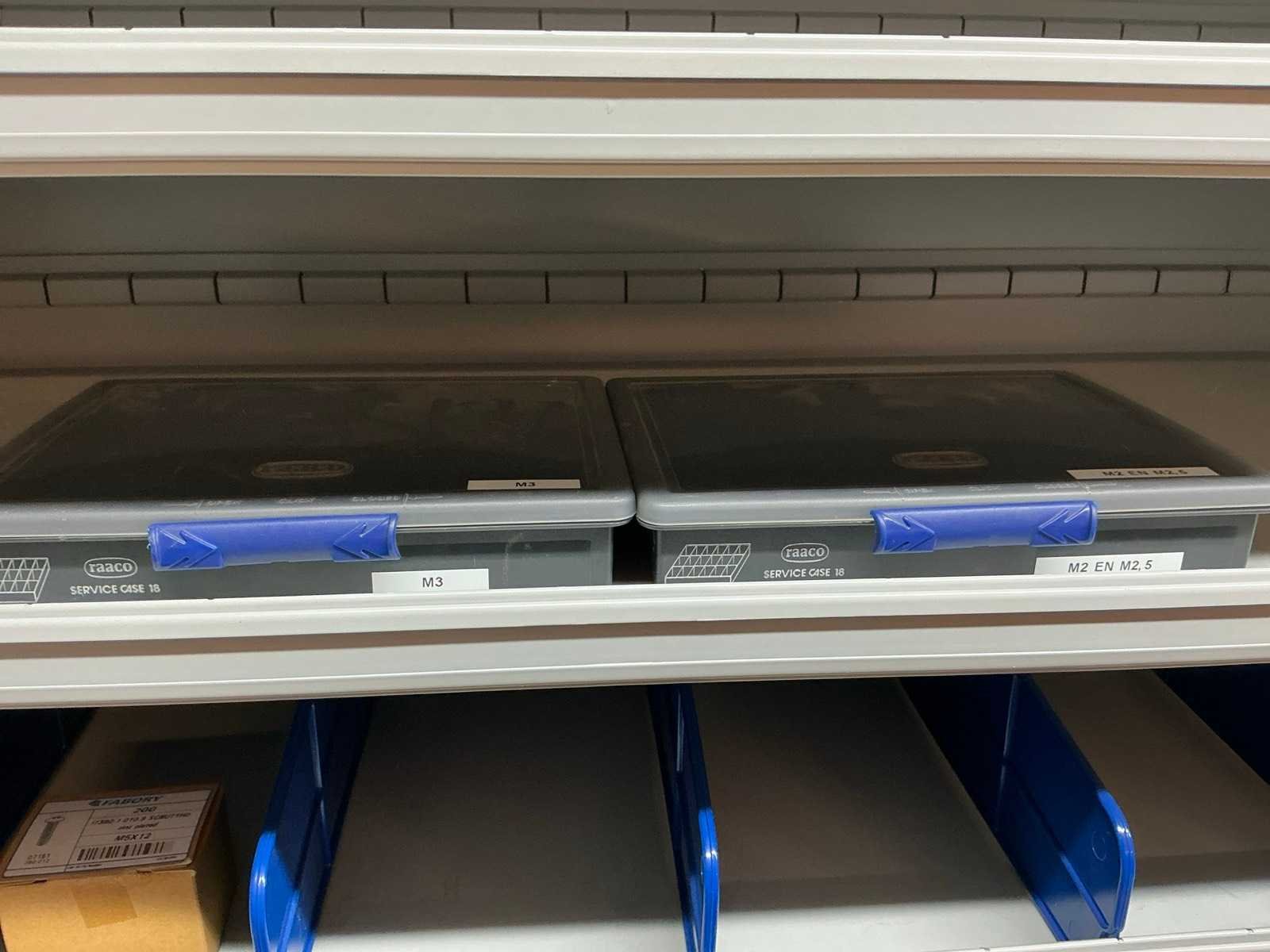 Afmeting per kast: 100x30x199 cm. Inhoud voornamelijk zwart stalen inbus bouten en moeren Nee