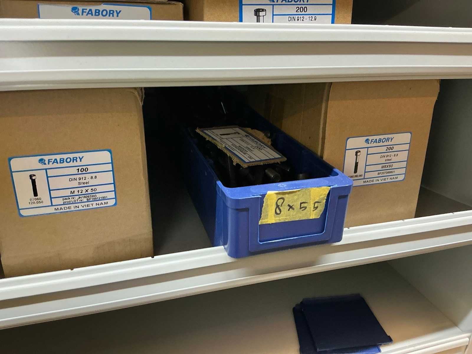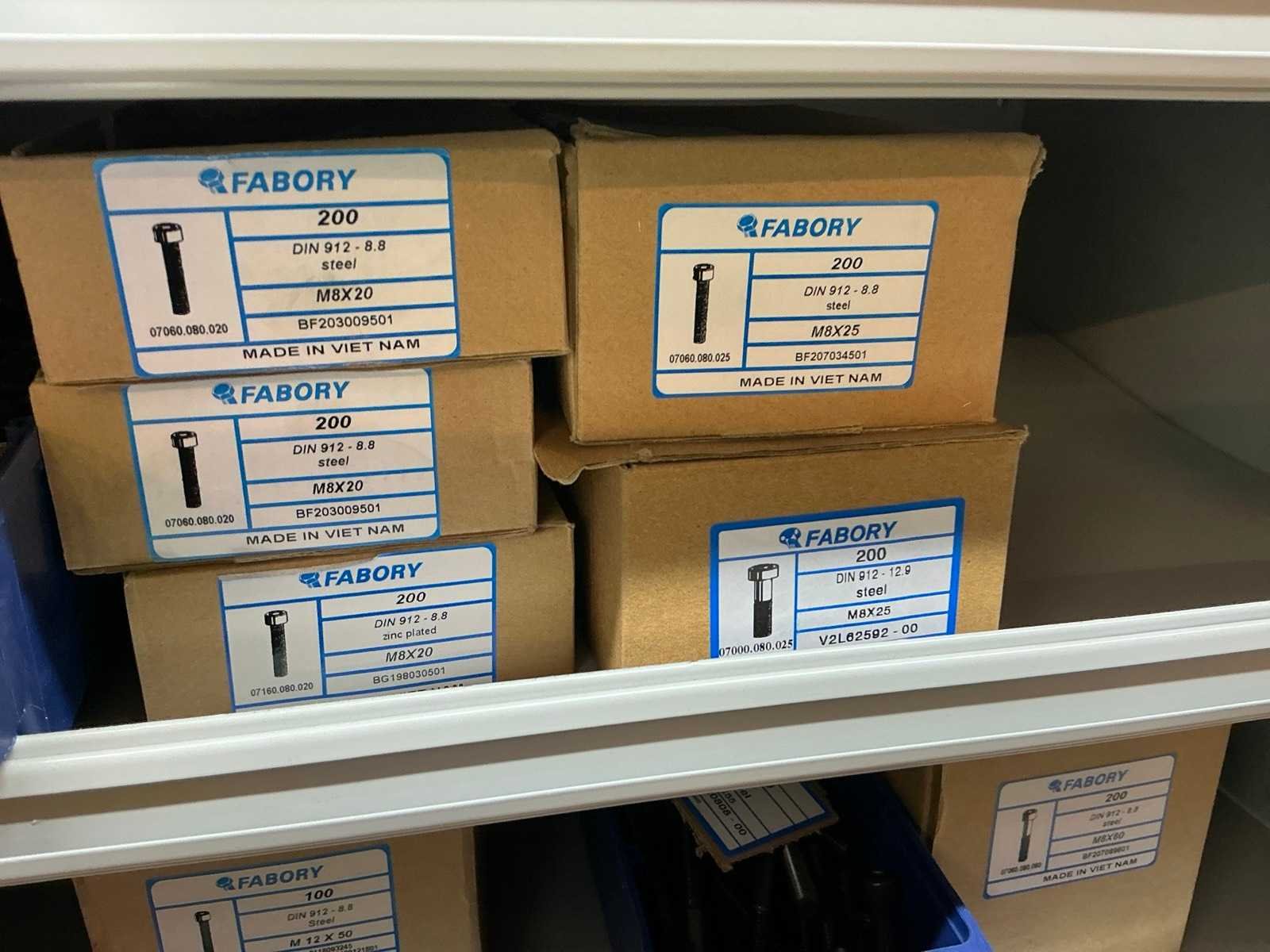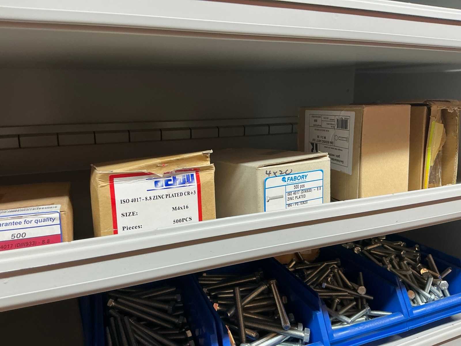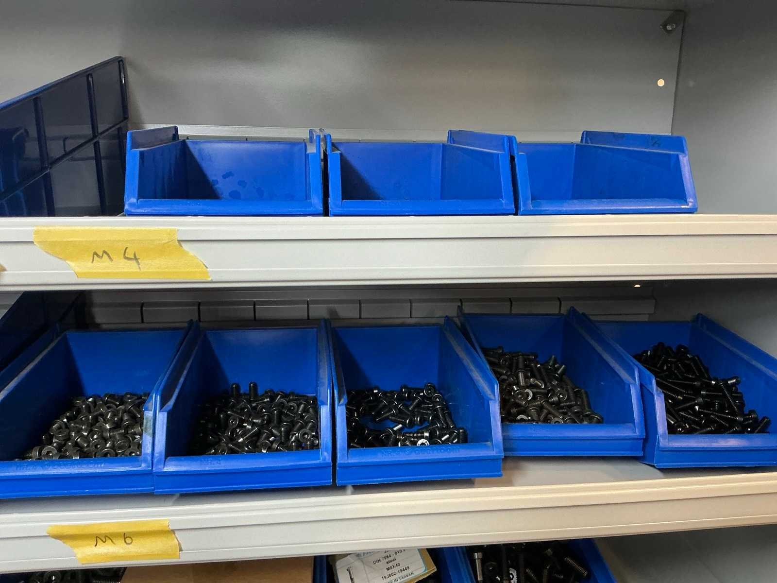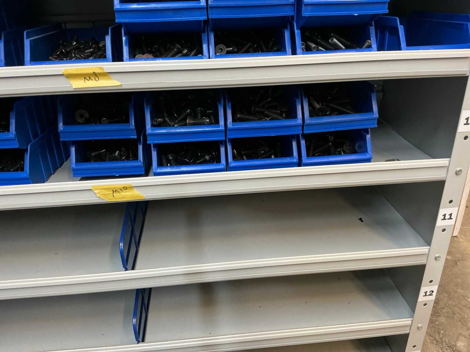 Afmeting per kast: 100x30x199 cm. Inhoud voornamelijk zwart stalen inbus bouten en moeren Nee