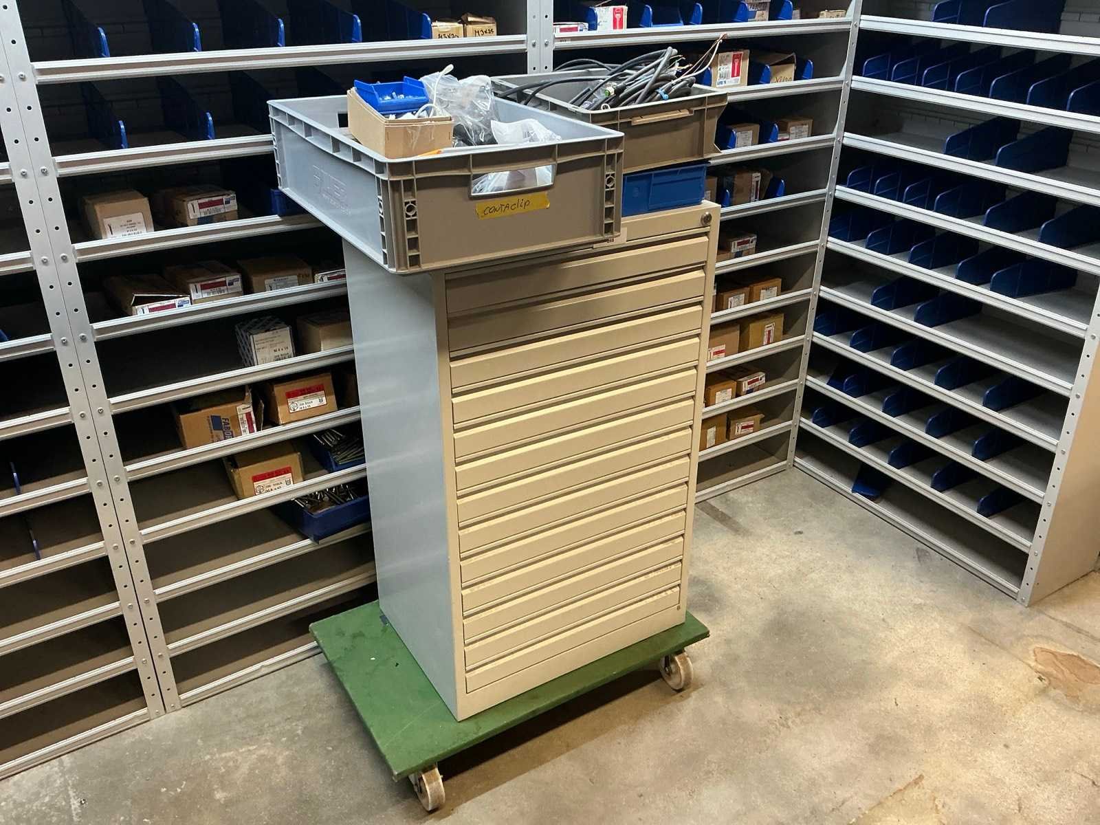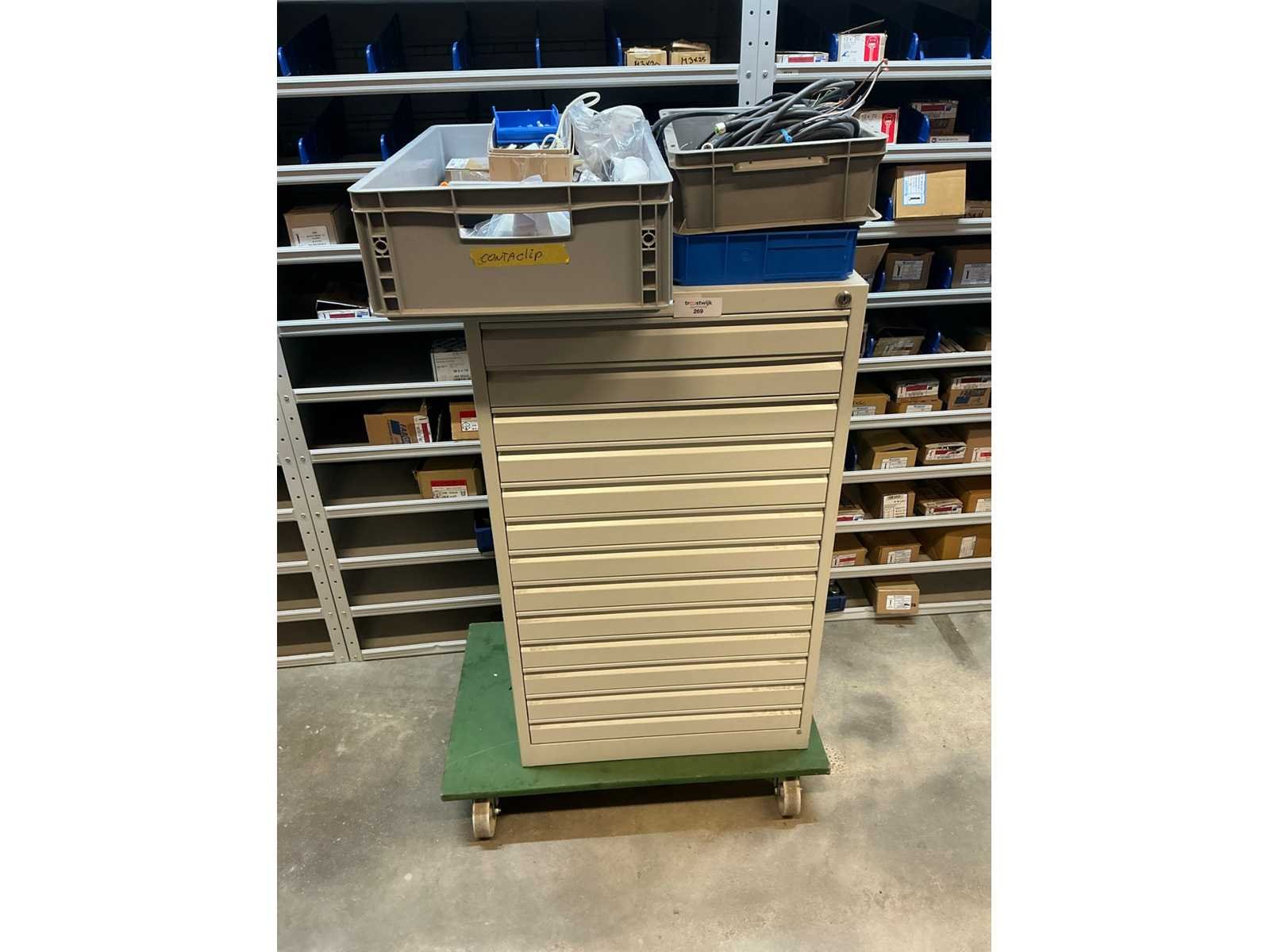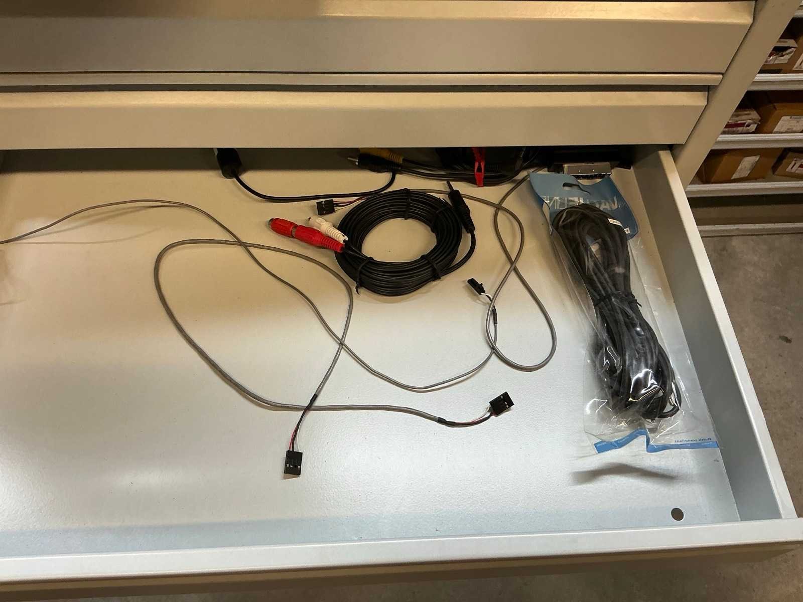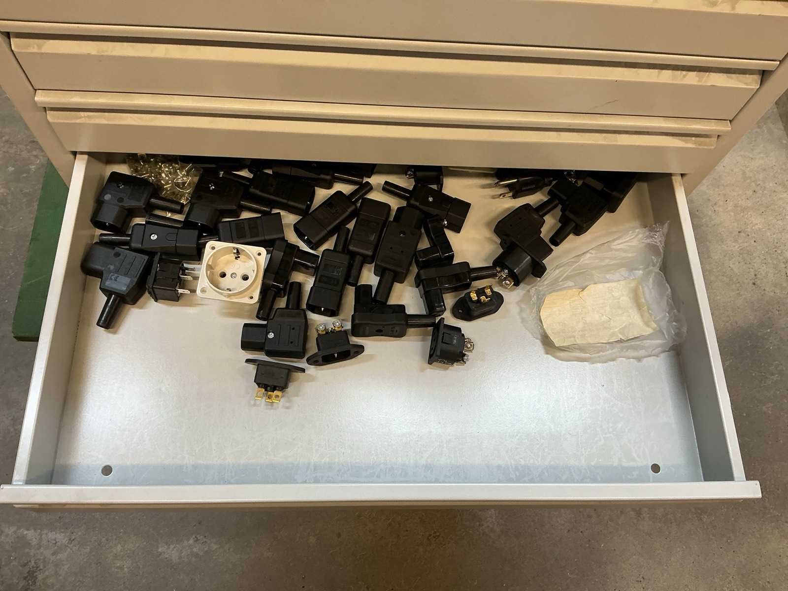 Voorzien van 13 laden met diverse kabel en stekkers en 3 kratten met inhoud Nee Lengte: 59 Breedte: 42cm Hoogte: 98.5cm