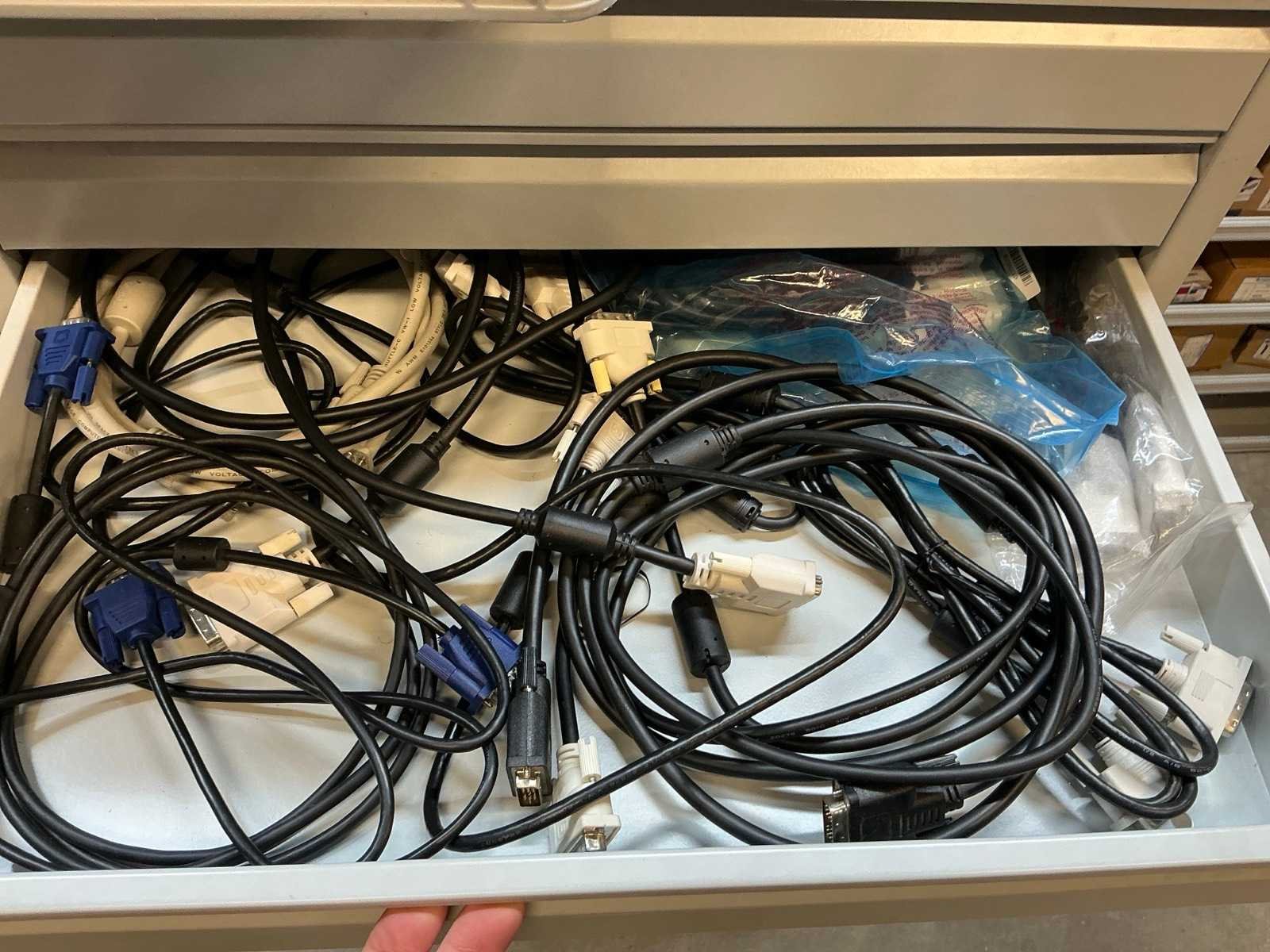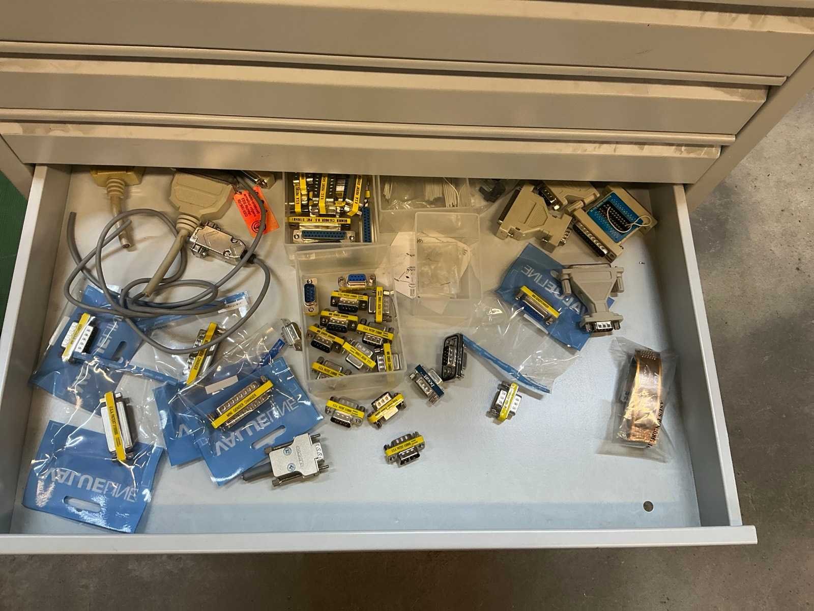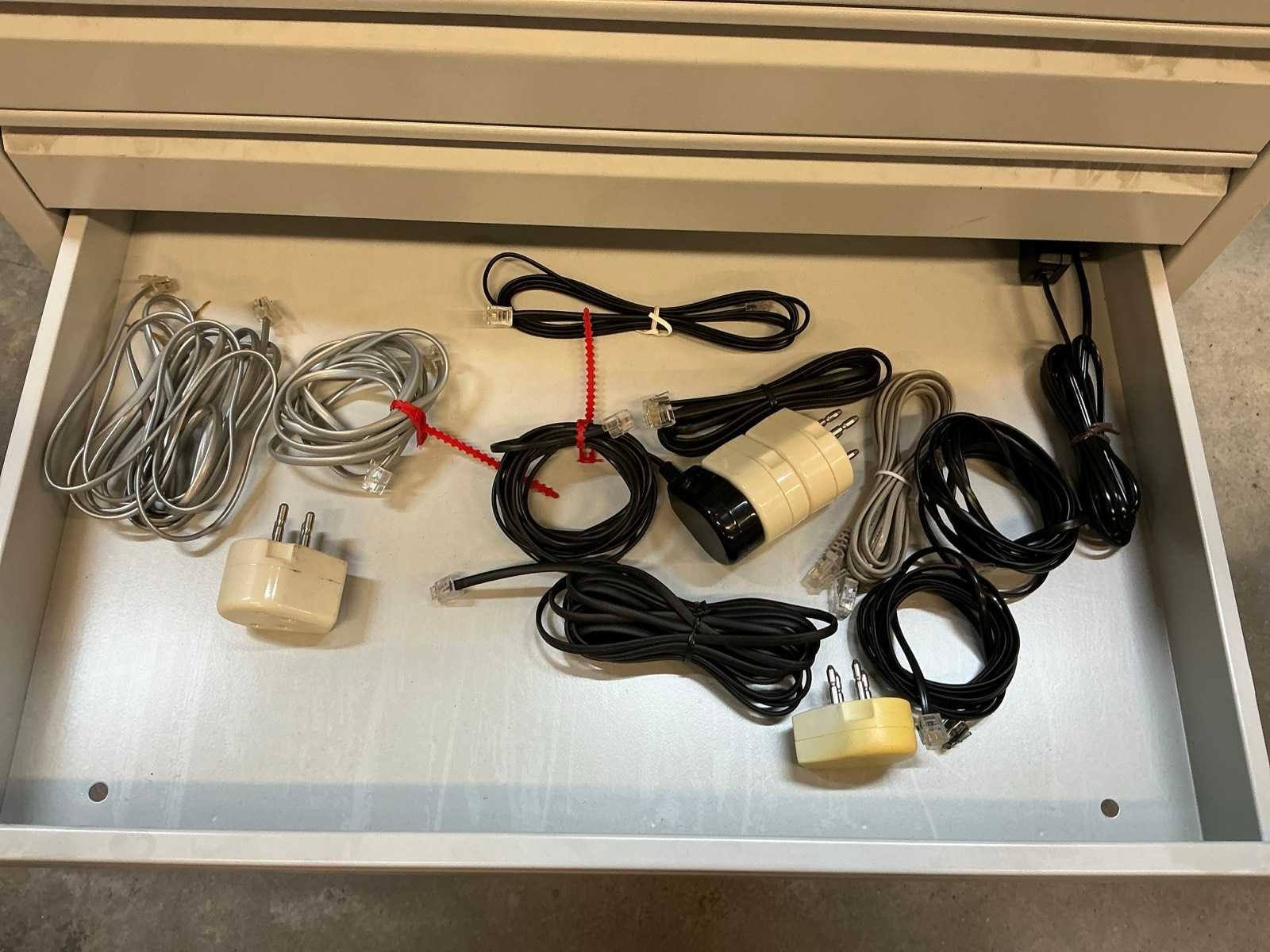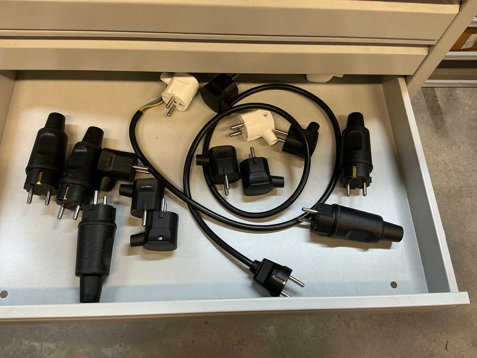 Voorzien van 13 laden met diverse kabel en stekkers en 3 kratten met inhoud Nee Lengte: 59 Breedte: 42cm Hoogte: 98.5cm