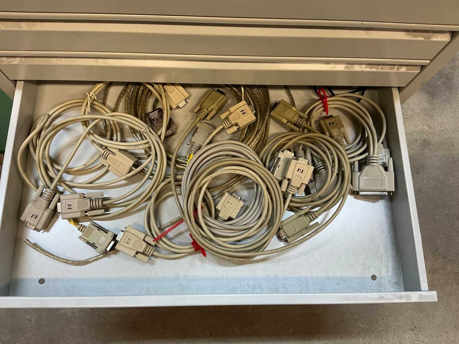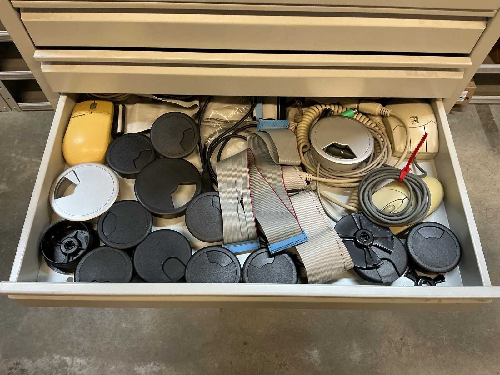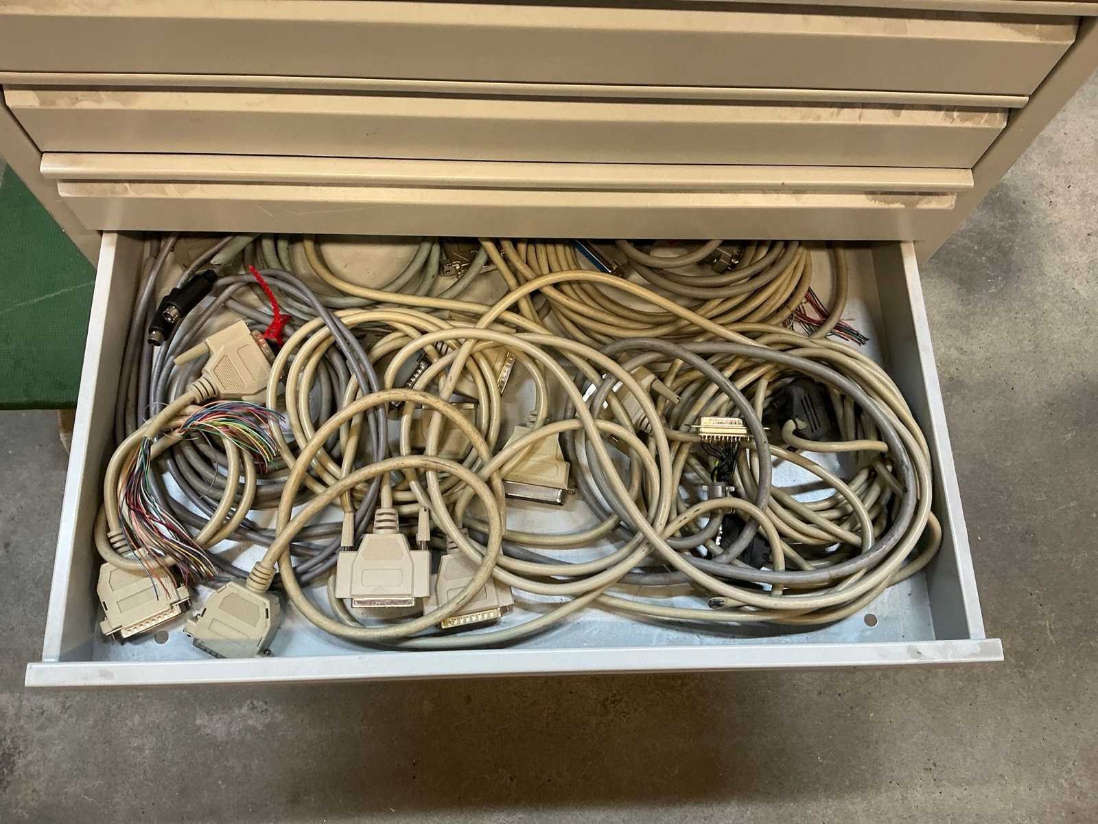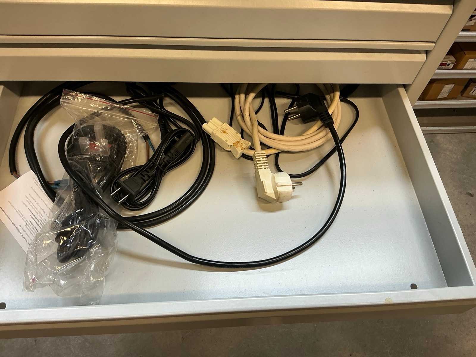Stalen ladenkast met kabels