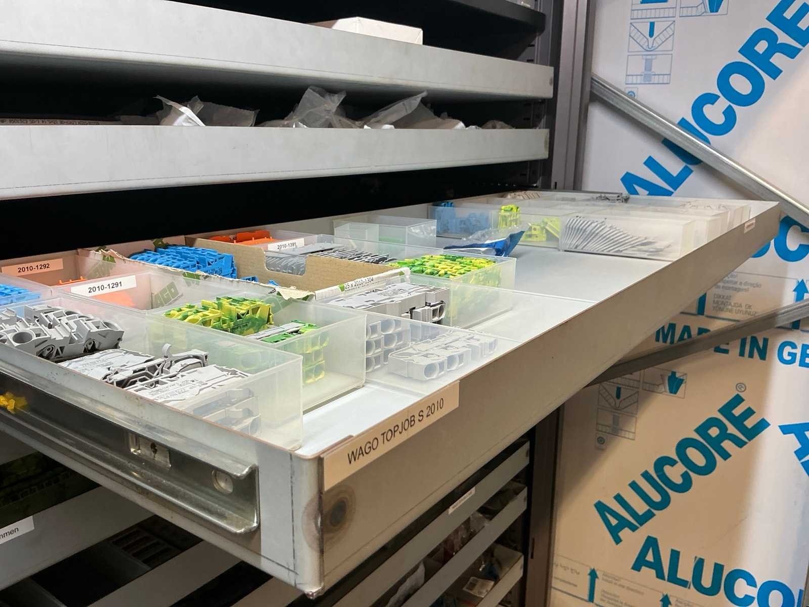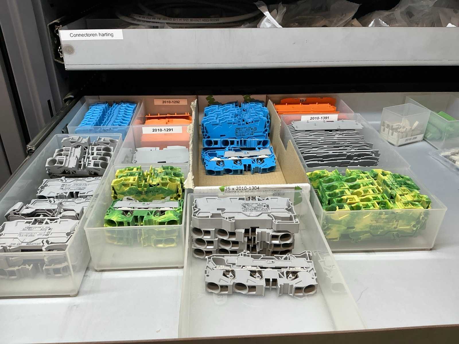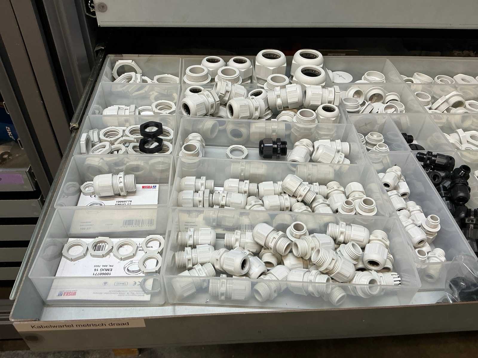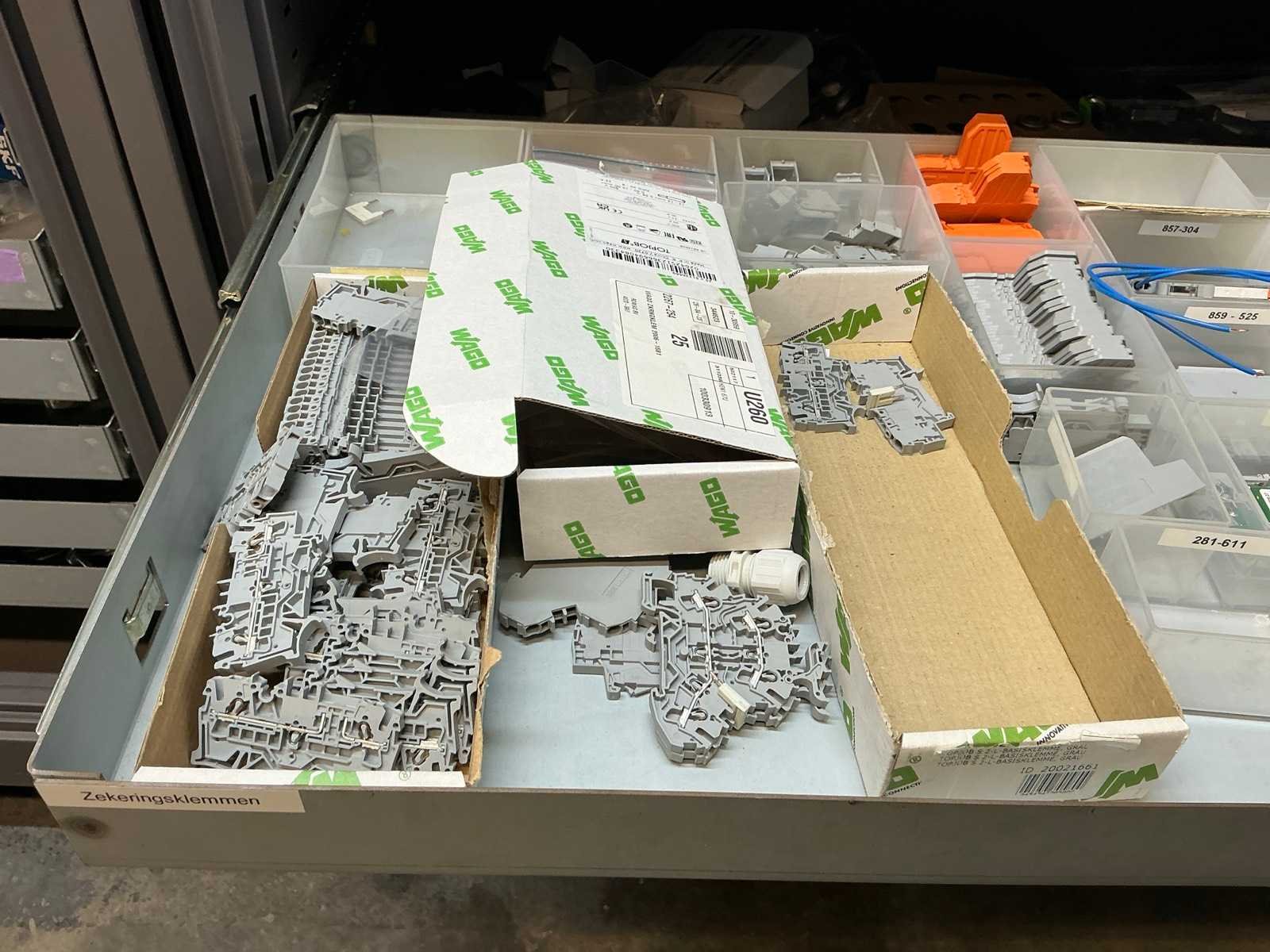 Mewaf jaloeziedeurkast met wago klemmen, wartels en connectoren