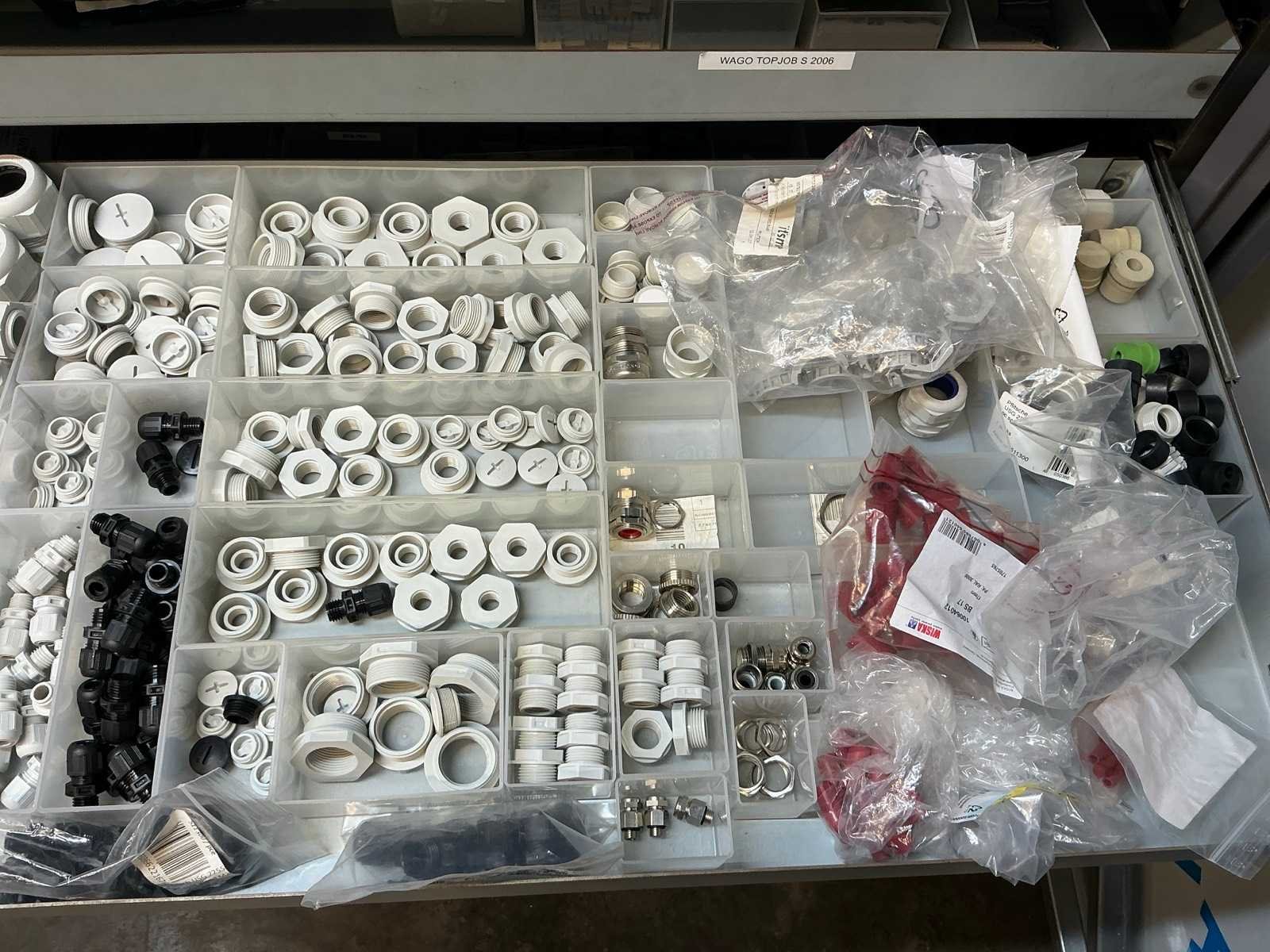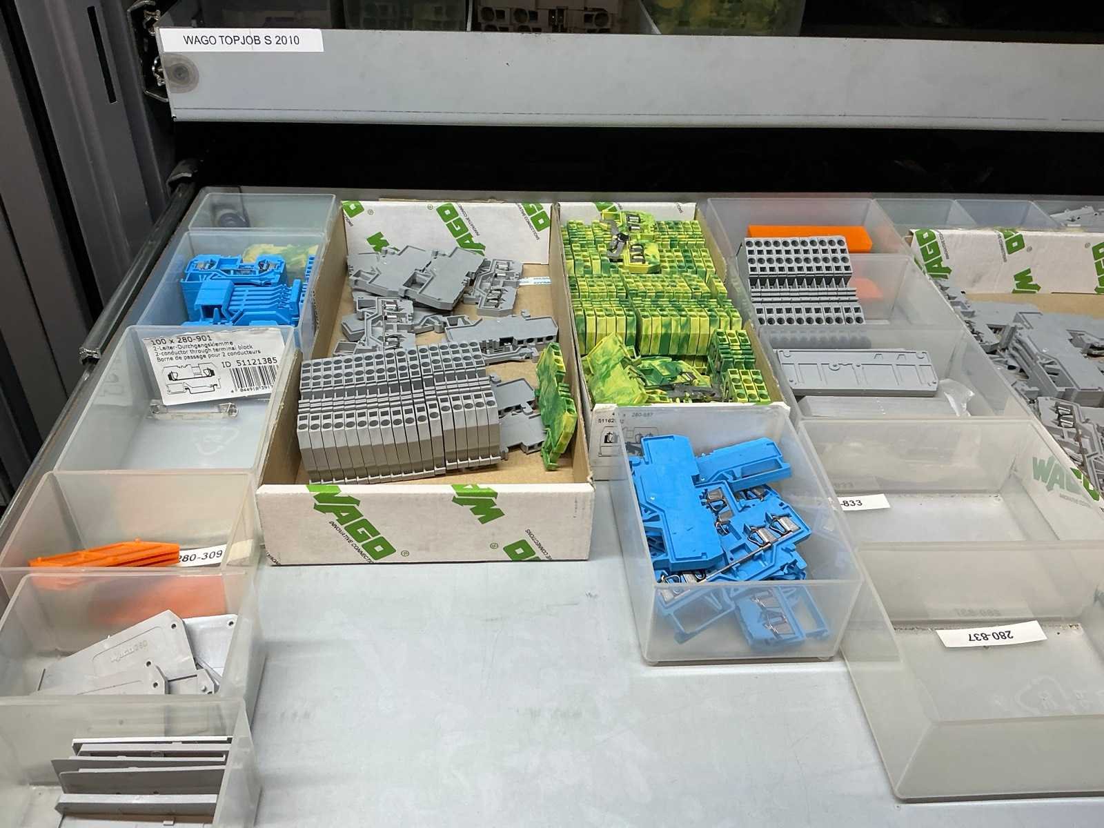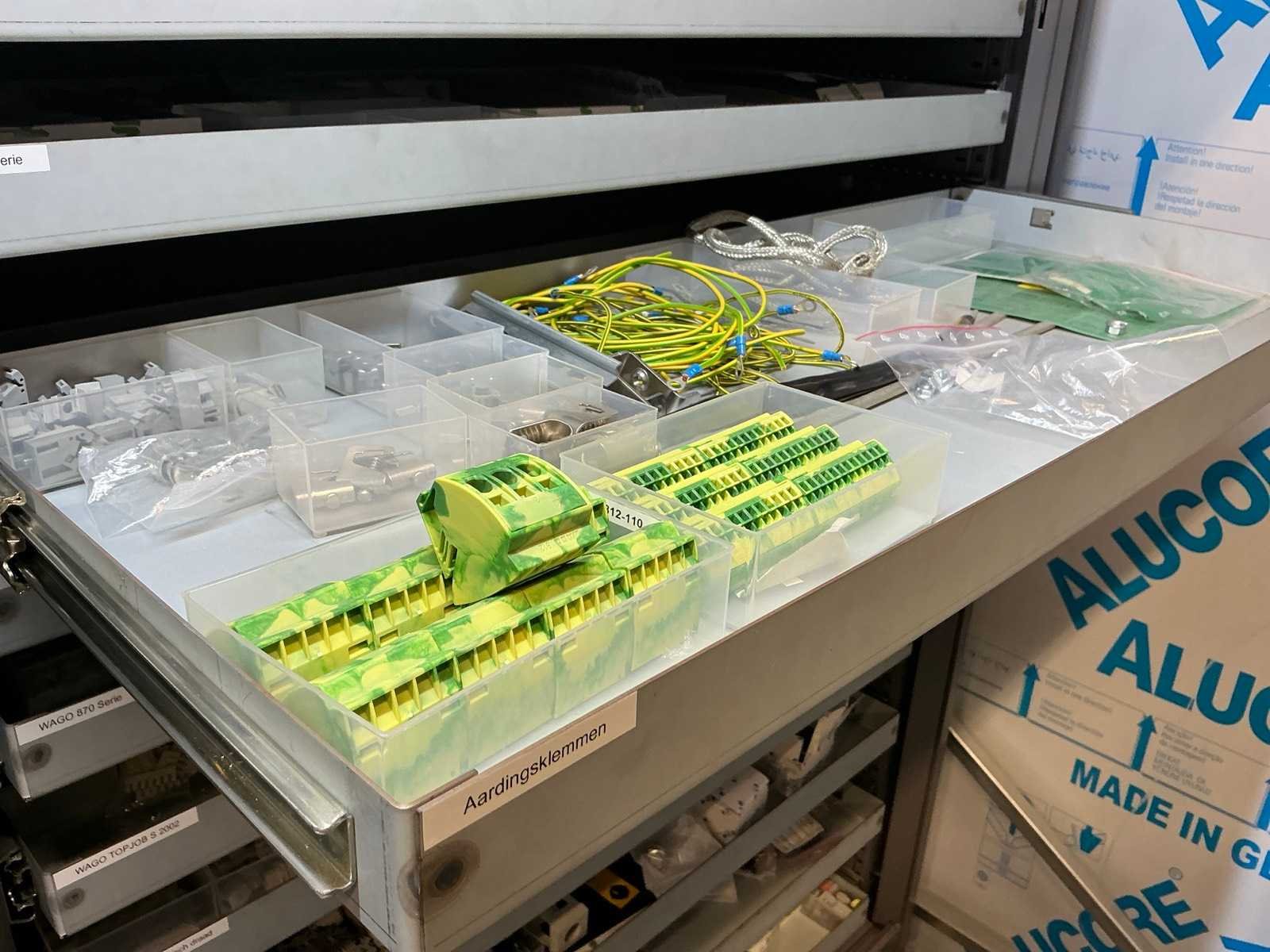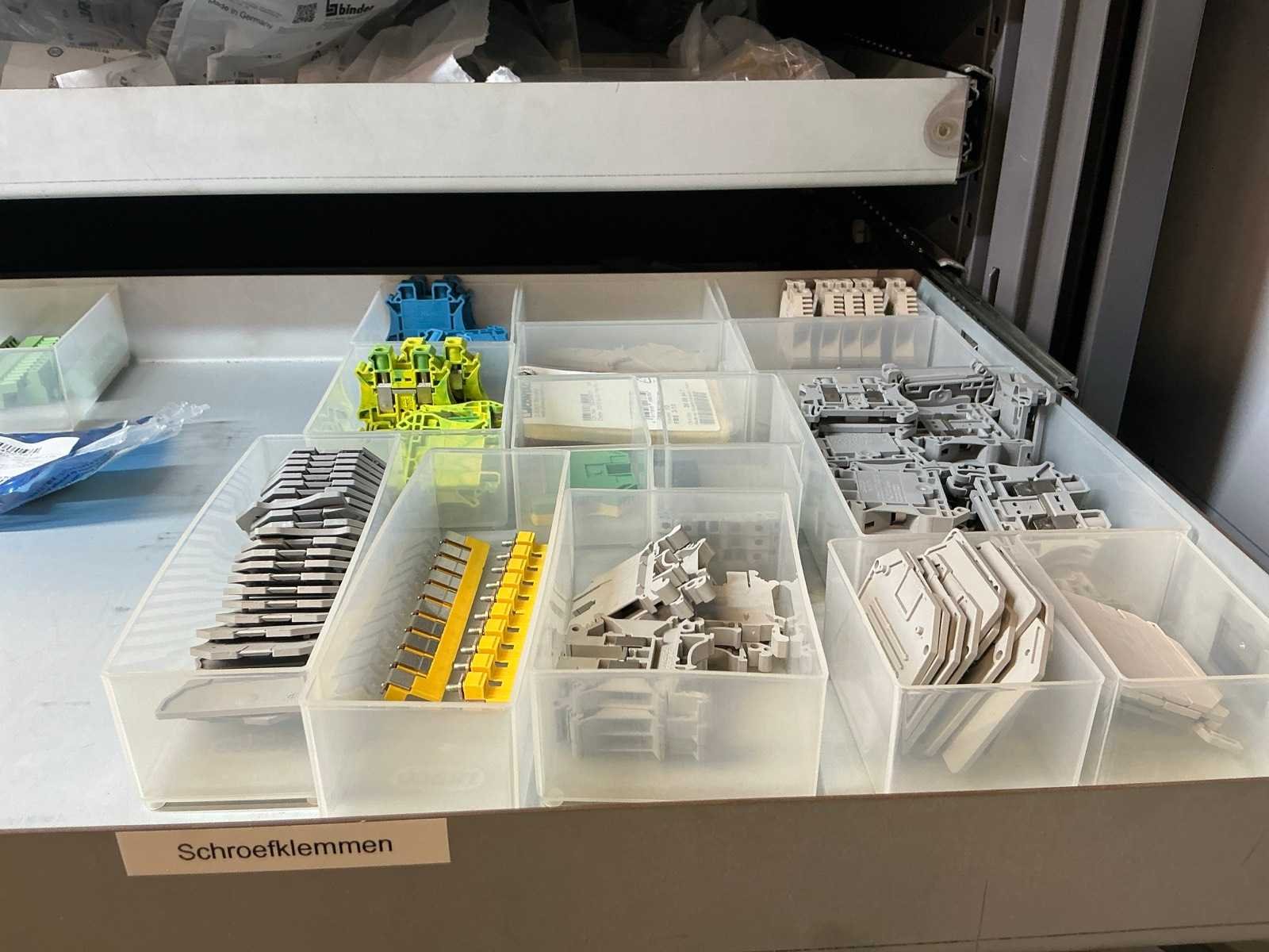 Mewaf jaloeziedeurkast met wago klemmen, wartels en connectoren