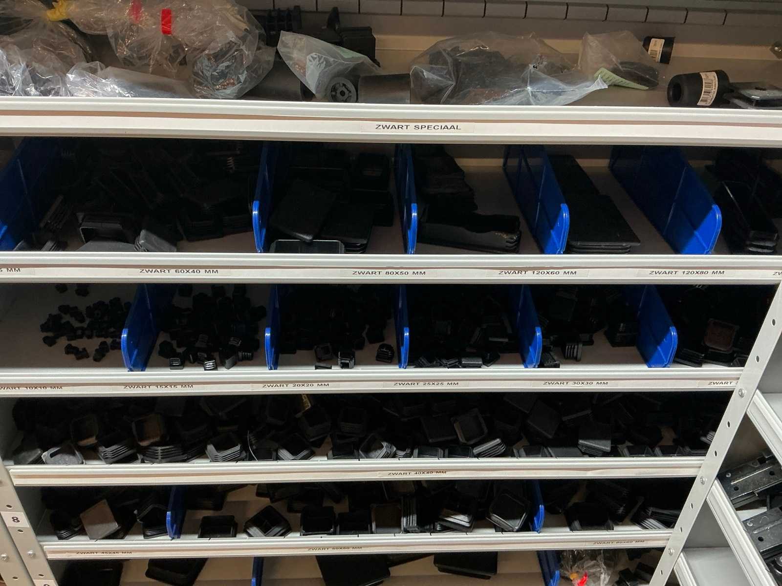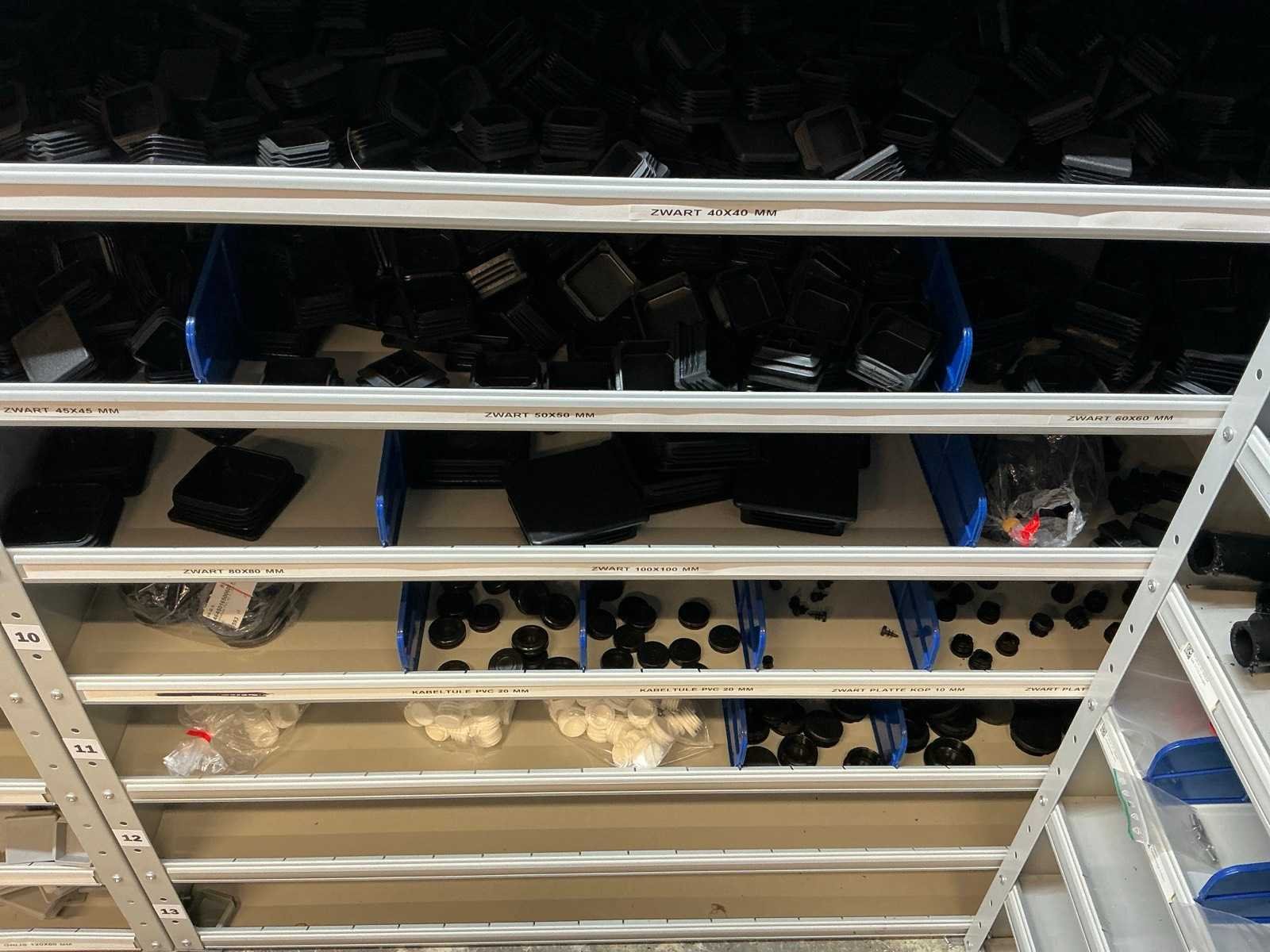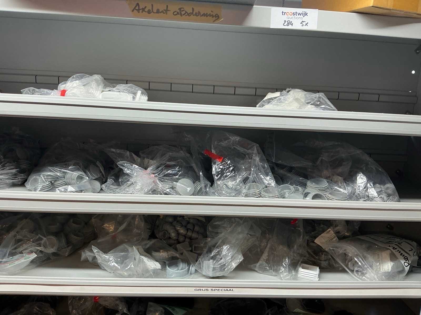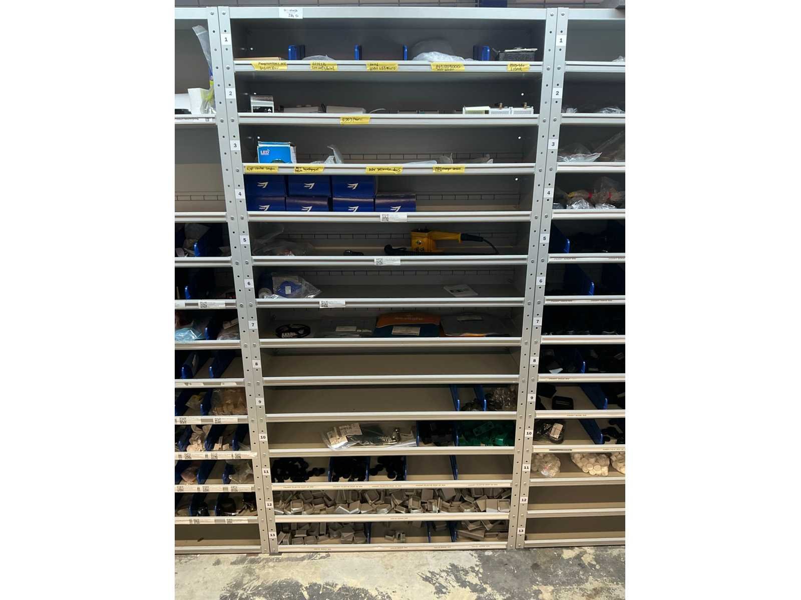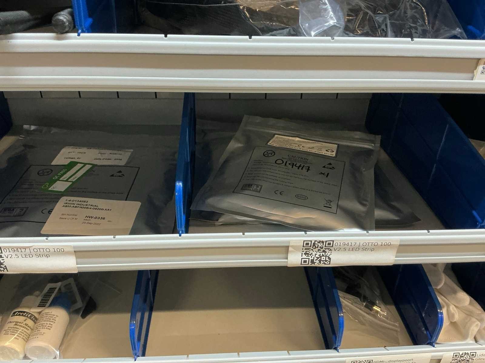 Stalen vakkenkast met elektrotechnische robotonderdelen (5x)