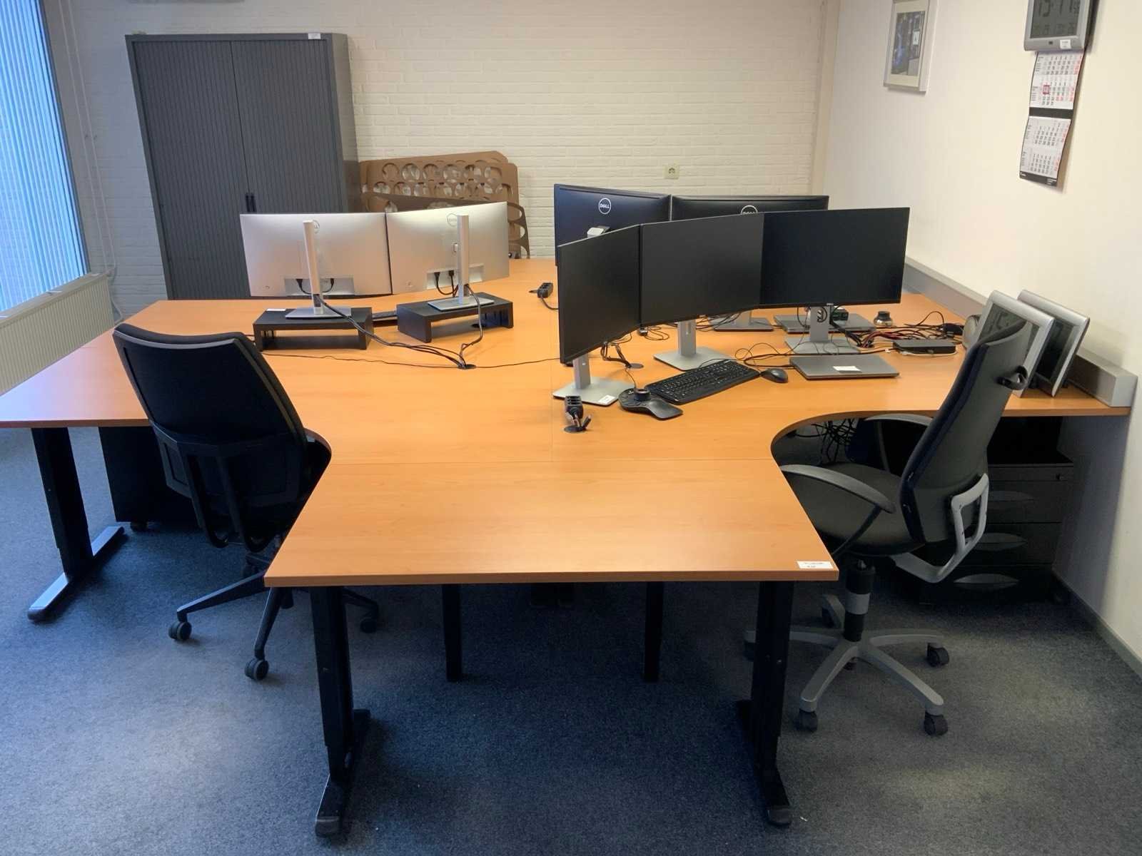 4x bureau + 2x koppelstuk + 3x ladekastjes + 4x bureaustoel Nee Lengte: 120cm Breedte: 180cm Hoogte: 75.5cm Diepte: 80cm