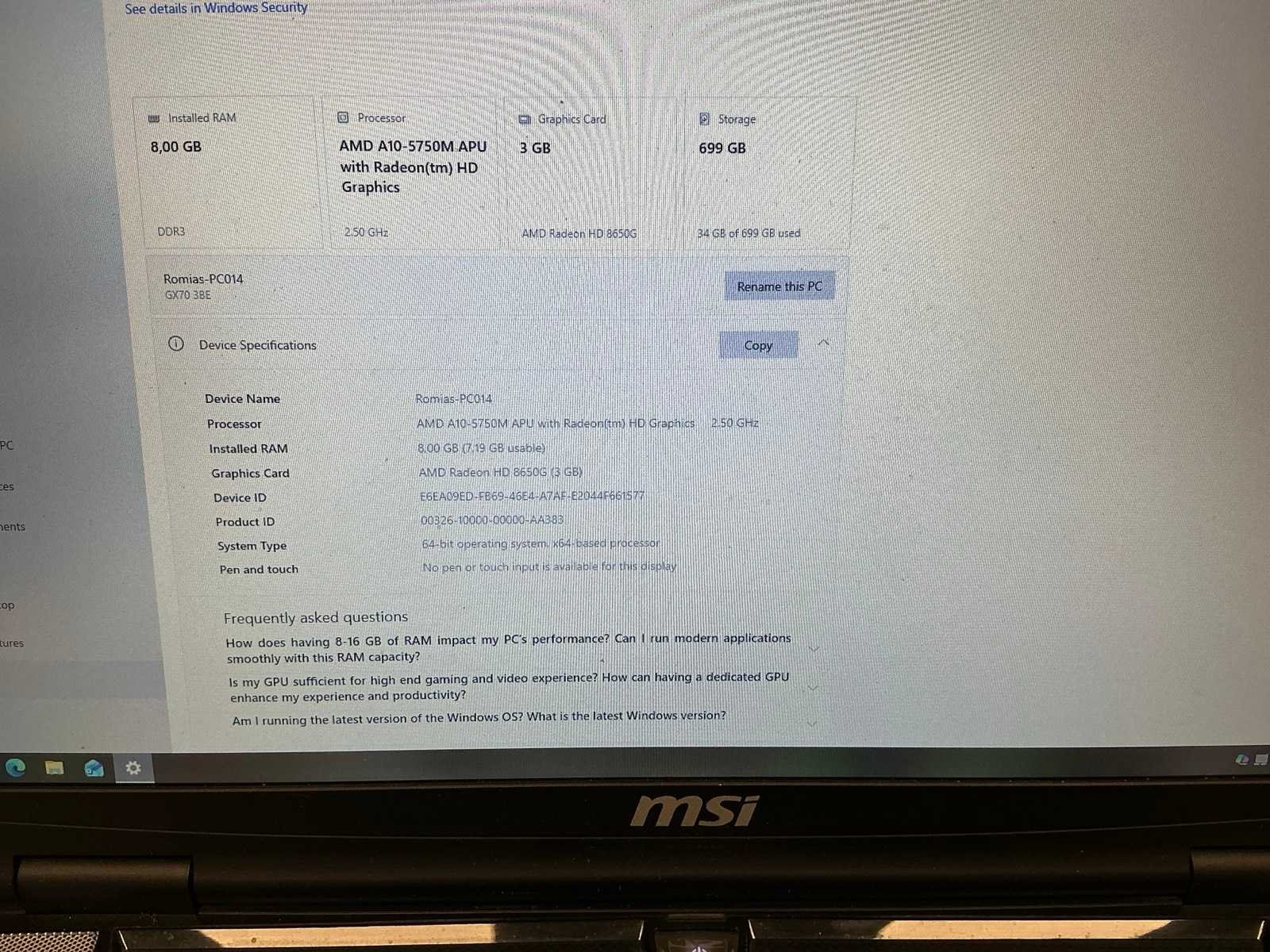 Msi gx70 3be laptop