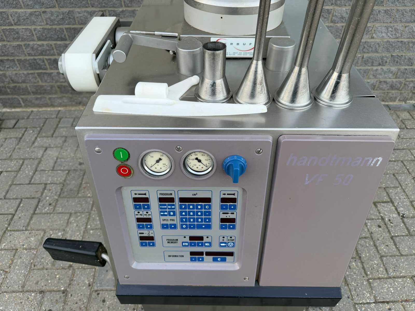 Met afdraai Nee Merk: Handtmann Type: VF 50 + afdraai Rvs: true Aansluiting: 400V Digitale uitlezing: true