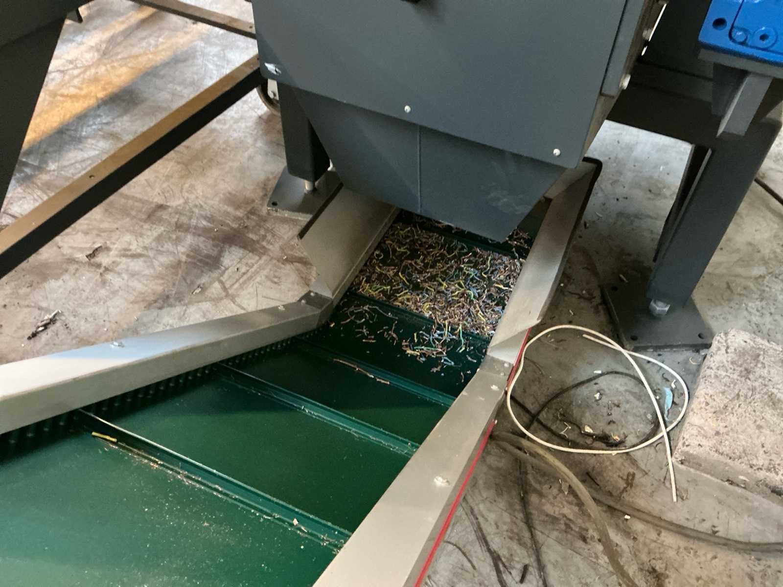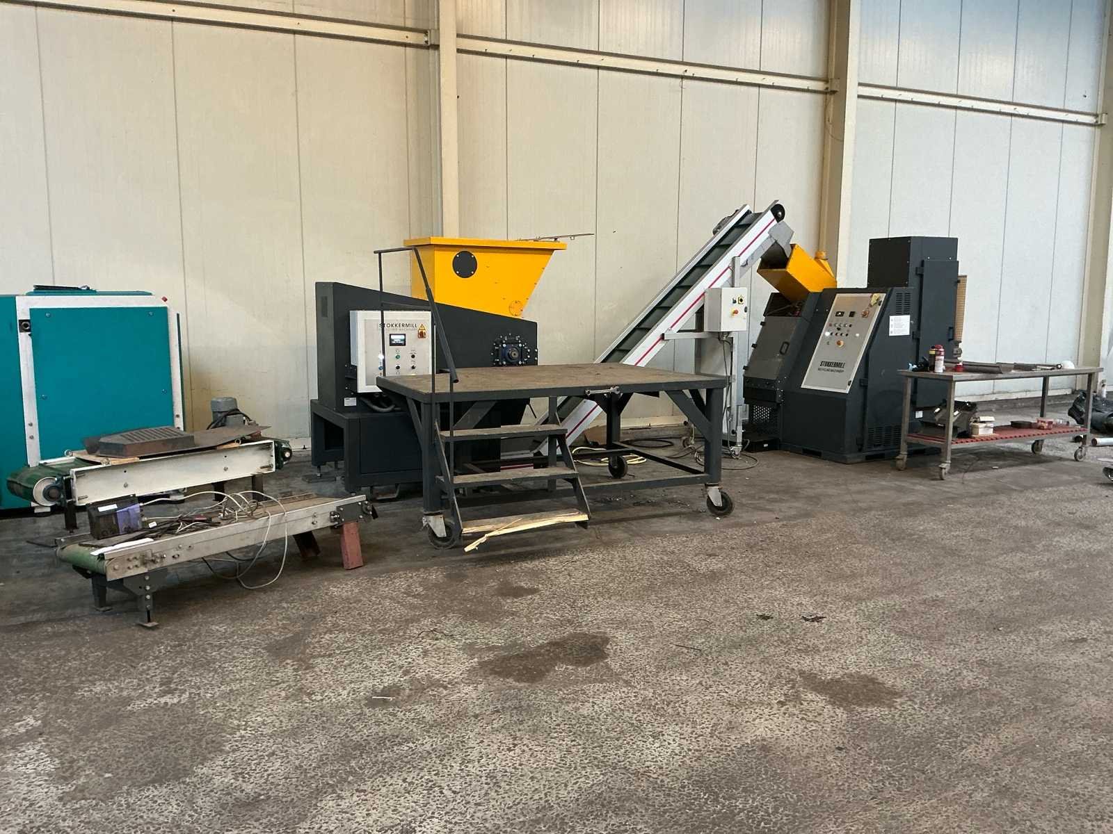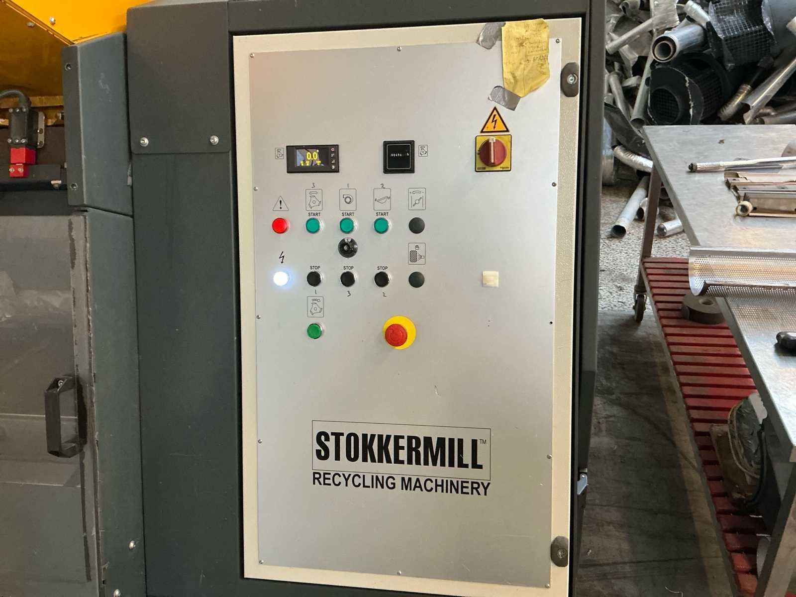 Stokkermill recyclinginstallatie met lage draaiuren, geschikt voor verwerking van diverse metalen en kabelstromen. De installatie bestaat uit een complete verwerkingslijn met pre-shredder, granulator, opvoerbanden en zeefunit. De pre-shredder reduceert het aangevoerde materiaal en transporteert dit via een gekoppelde opvoerband naar de granulator. De opvoerband is geïntegreerd in de besturing en communiceert met de zeef- en granuleerunit. Bij capaciteitsbelasting of overaanvoer stopt de invoer automatisch om overbelasting te voorkomen (automatische load control). Na verkleining wordt het materiaal via de zeef gescheiden op fractie. De installatie is voorzien van CE-markering en industriële besturing. Geschikt voor kabelrecycling, metaalrecycling en industriële reststromen. Machine verkeert in nette staat en heeft aantoonbaar weinig draaiuren. Draaistand circa 496 uur. Technische gegevens (conform typeplaten) Stokkermill Pre-shredder PS600 Bouwjaar 2022 Serienummer 211 Nominale spanning 400 V Frequentie 50 Hz Vermogen 15 kW Gewicht 1200 kg Stokkermill Granulator K140 Flexi Bouwjaar 2021 Serienummer 2345 Nominale spanning 400 V Frequentie 50 Hz Vermogen 14 kW Gewicht 1000 kg Stokkermill Conveyor belt NST4000ALLMAG Bouwjaar 2022 Serienummer 418 Nominale spanning 400 V Frequentie 50 Hz Vermogen 0,37 kW Gewicht 300 kg Elektromotor (Selpee) Bouwjaar 2021 400/690 V – 50 Hz 28.7 / 16.6 A IP55 Gewicht 132 kg Draaiuren circa 496 uur Nee Merk: Stokkermill