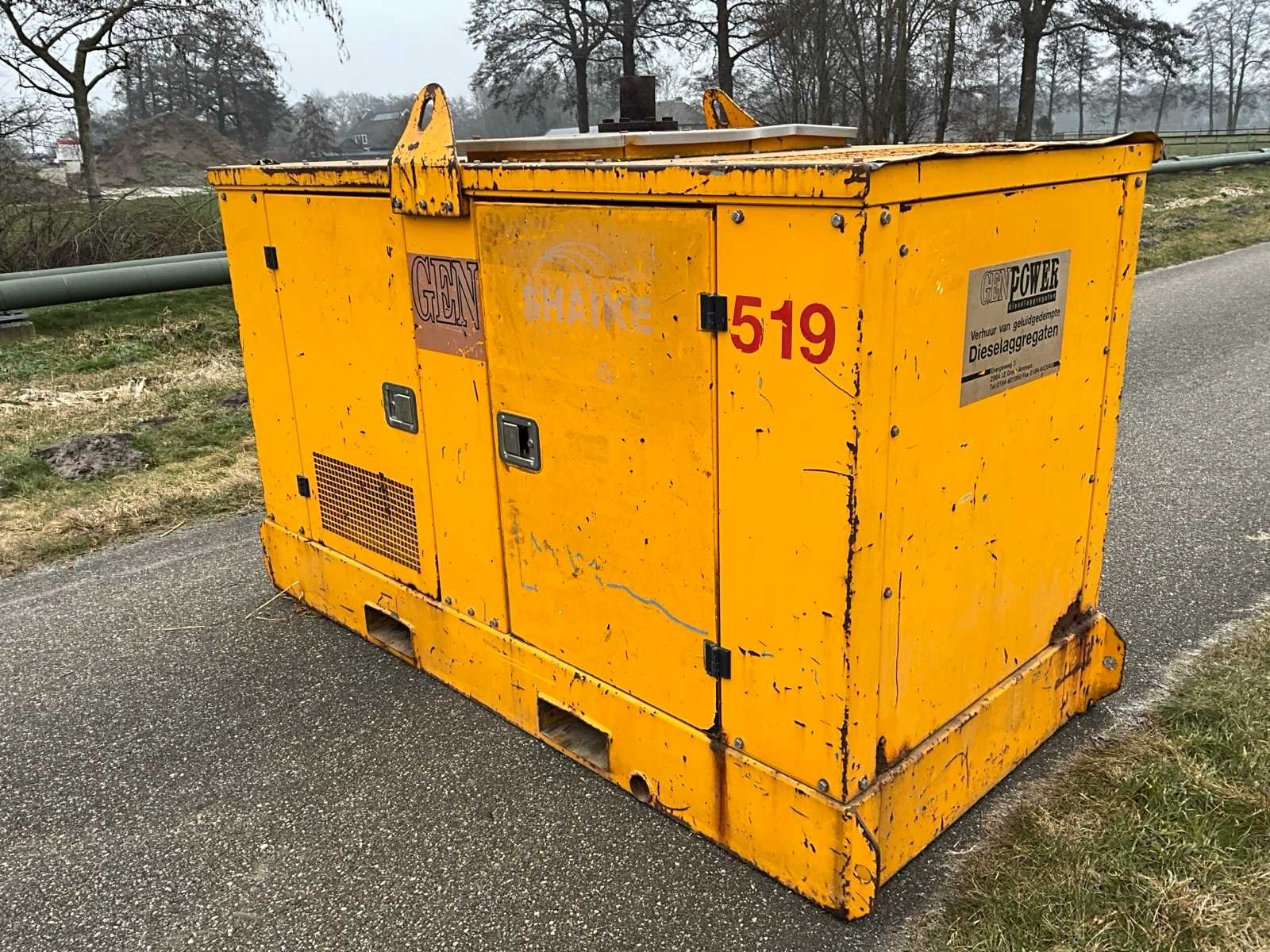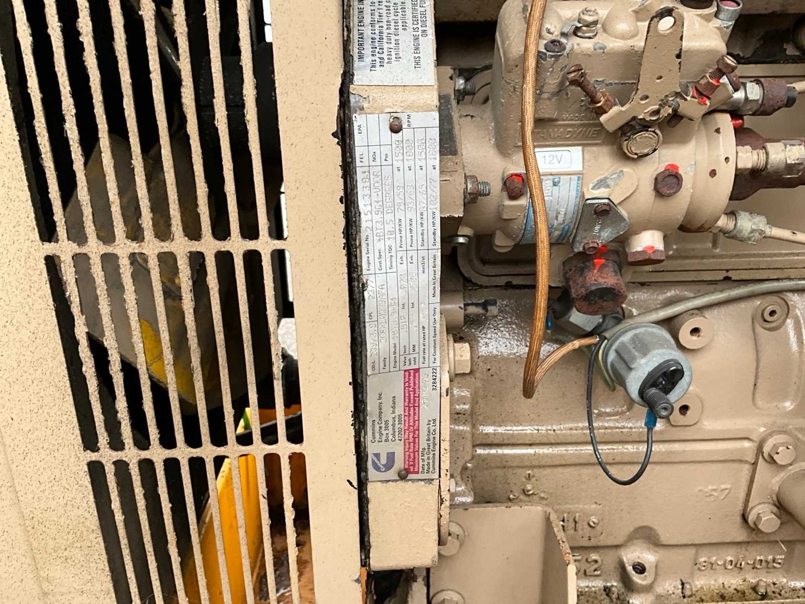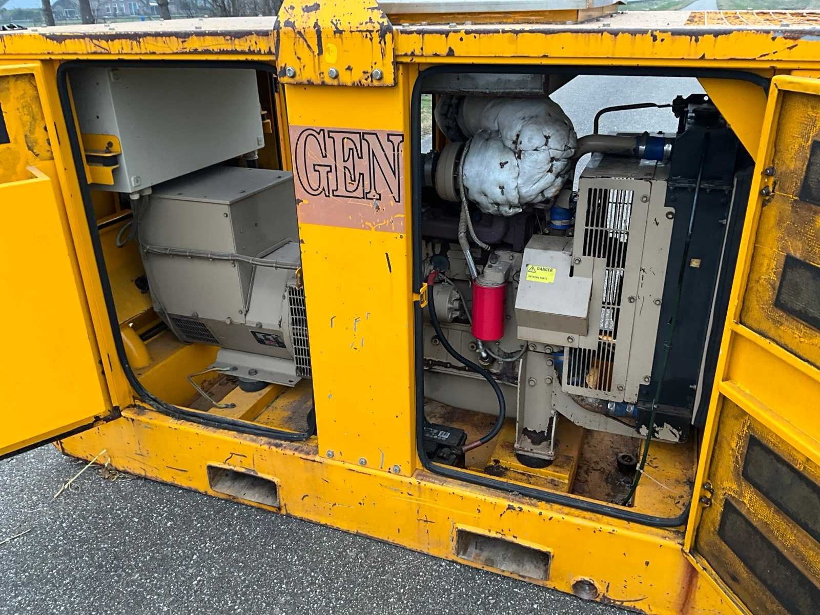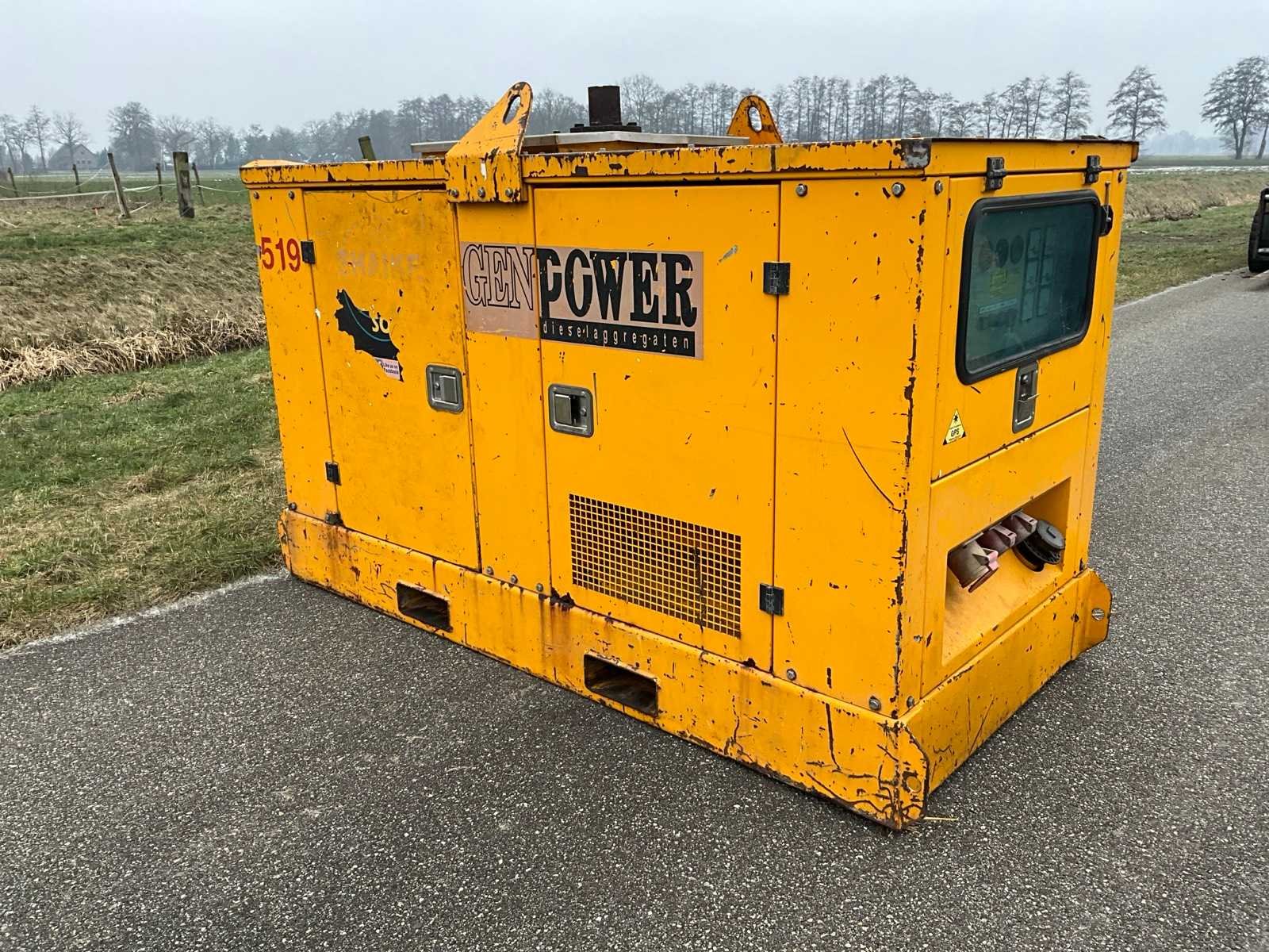 Voorzien van 4-Cil. “Cummins” Dieselmotor; Stamford generator Nee Merk: Genpower Capaciteit.: 72kVA Type motor: Cummins Aantal cilinders: 4 Afgelezen urenstand: 31851 Totale afmeting L: 2350mm Totale afmeting Breedte: 1120mm Totale afmeting Hoogte: 1500mm