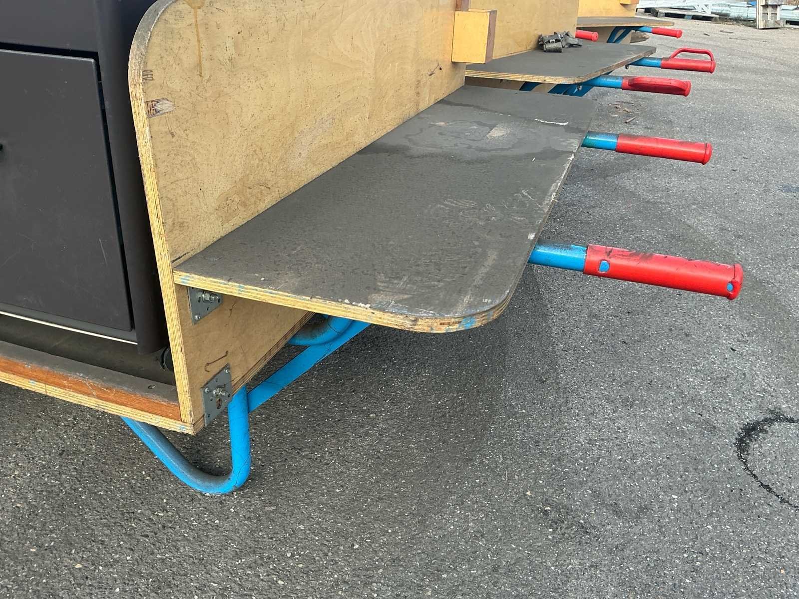 Voorzien van: 3x Bakmaat 160x116x44, 1x trolley 155x74x94, hondje, weegschaal, metalen kastje Nee Totale afmeting L: 2220mm Totale afmeting Breedte: 1210mm Totale afmeting Hoogte: 1170mm
