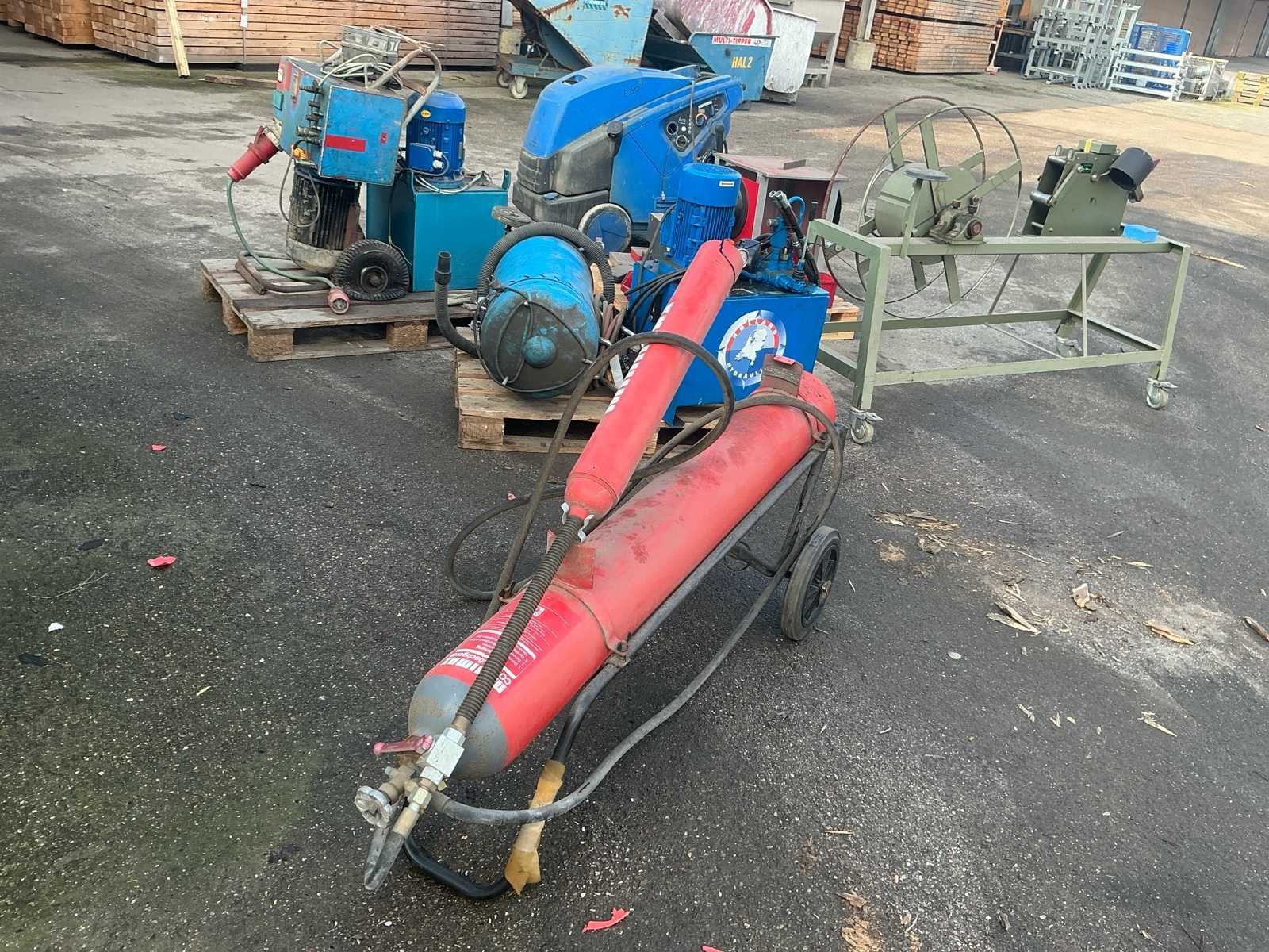 Voorzien van: brandblusser, 3x hydraulische unit, mobiel straalapparaat, wikkelmachine, letterponsapparaat met kast, hogedrukreiniger (defect) Nee