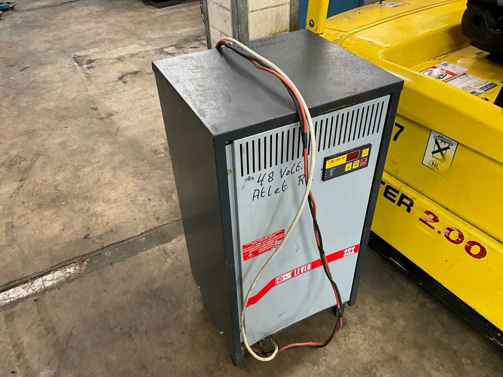 FEM2 hyster vorkenbord 48v accupakket Lever 48V 80A acculader 400V. Nee Merk: Hyster Type: S2.00XMT Bouwjaar: 2000 Serienummer: G160A03927X Brandstof: Elektrisch Mast: Triple Soort band: Volrubber banden Aantal wielen: 3 Afgelezen urenstand: 12167 Free-lift: true Side-shift: true Triple mast: true Eigen gewicht: 3771kg Hefvermogen: 1890kg Lepellengte: 1050mm Hefhoogte: 4800mm Vol rubber banden: true Totale afmeting L: 3150mm Totale afmeting Breedte: 1150mm Totale afmeting Hoogte: 2100mm