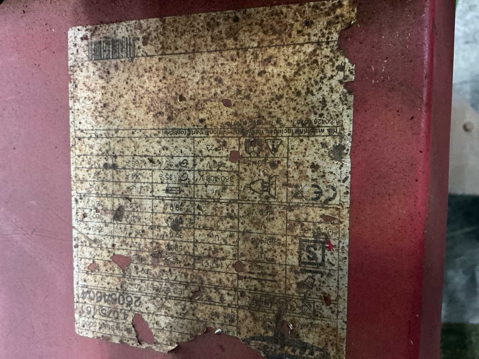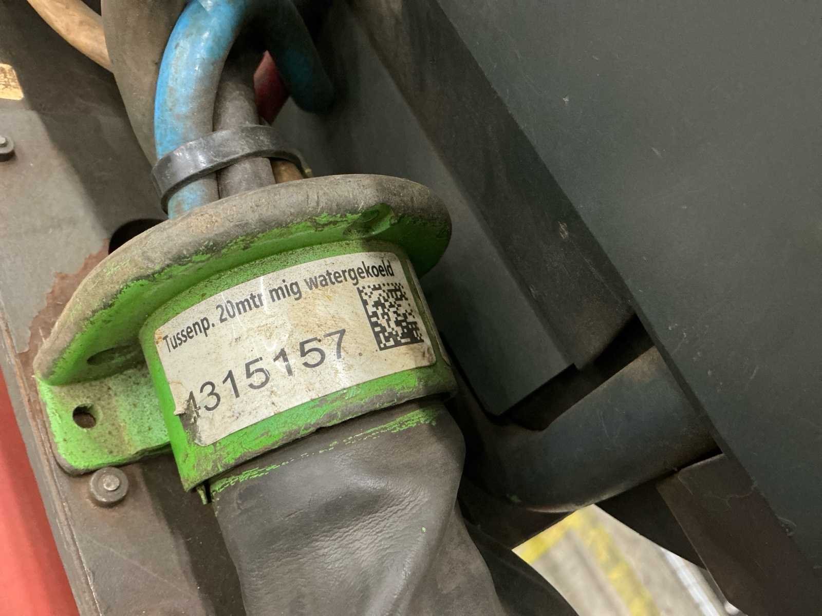 Voorzien van: Tussenpakket 20ste mig watergekoeld, Aansluitspanning: 380/400/460 Volt, 50/60 Hz, 3fase Netspanningstolerantie: +/- 10% Netafzekering: 35 Amp. traag Regelgebied: 10 500 Amp. : 14,5 39,5 Volt Sec. vermogen: 500 Amp. 40% i.d., 10 min., 400C Open spanning: 65 Volt Beschermingsklasse: IP 23 Afmetingen LxBxH: 747 x 300 x 497 mm Gewicht (stroombron): 32,5 kg De machine wordt lasklaar geleverd meteen standaardpakket toebehoren: - primaire aansluitkabel à 5 meter 4x6 mm2, inclusief primaire steker 32Amp.,5p CEE - draadaanvoerunit VR 5000 Yard 4R/W/FSC Synergic, incl. gas test/draadinvoeren - draadrol FSR U 1.2 (rood), 4 st. benodigd, prijs per stuk - montagearm VR 5000 Yard - 4-wielig onderstel Pick up 5000 TST - waterkoelunit model FK 5000 - ombouwset waterdoorstroombeveiliging + thermosensor - ombouwset koelwaterfilter FK 5000 - ombouwset stopkontakt afstandsbediening VR 5000 - frontafscherming VR 5000 - tussenpakket W/10m/70 mm² voor VR 4000/5000/7000 - reduceerventiel inclusief flowmeter - Fronius lastoorts model MTW 400i /FSC/UD/4.5m/45/Led - onderdelenset MTW 400i,1,2 Nee Merk: Fronius TransSteel 5000 Type: MAG Bouwjaar: 2015 Serienummer: 26064604 Afmeting l: 1100mm Afmeting b: 620mm Afmeting h: 1400mm