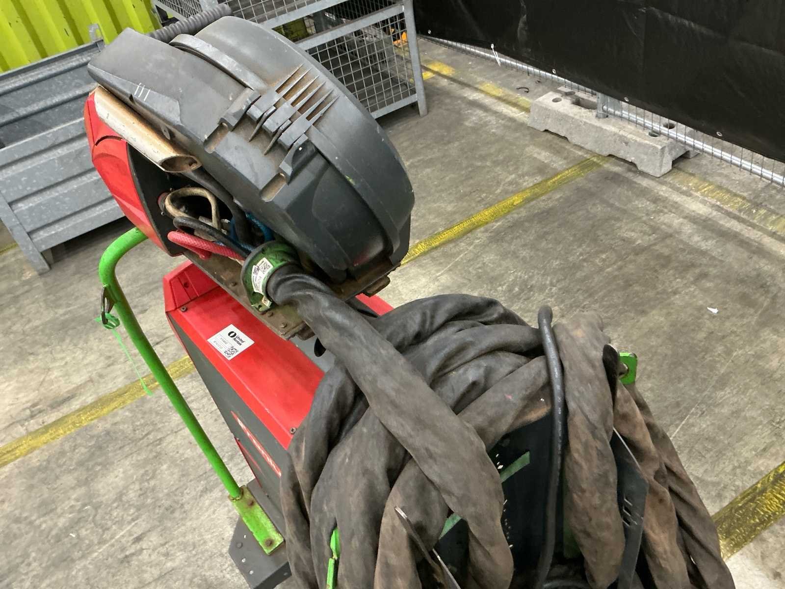 Voorzien van: Tussenpakket 20ste mig watergekoeld, Aansluitspanning: 380/400/460 Volt, 50/60 Hz, 3fase Netspanningstolerantie: +/- 10% Netafzekering: 35 Amp. traag Regelgebied: 10 500 Amp. : 14,5 39,5 Volt Sec. vermogen: 500 Amp. 40% i.d., 10 min., 400C Open spanning: 65 Volt Beschermingsklasse: IP 23 Afmetingen LxBxH: 747 x 300 x 497 mm Gewicht (stroombron): 32,5 kg De machine wordt lasklaar geleverd meteen standaardpakket toebehoren: - primaire aansluitkabel à 5 meter 4x6 mm2, inclusief primaire steker 32Amp.,5p CEE - draadaanvoerunit VR 5000 Yard 4R/W/FSC Synergic, incl. gas test/draadinvoeren - draadrol FSR U 1.2 (rood), 4 st. benodigd, prijs per stuk - montagearm VR 5000 Yard - 4-wielig onderstel Pick up 5000 TST - waterkoelunit model FK 5000 - ombouwset waterdoorstroombeveiliging + thermosensor - ombouwset koelwaterfilter FK 5000 - ombouwset stopkontakt afstandsbediening VR 5000 - frontafscherming VR 5000 - tussenpakket W/10m/70 mm² voor VR 4000/5000/7000 - reduceerventiel inclusief flowmeter - Fronius lastoorts model MTW 400i /FSC/UD/4.5m/45/Led - onderdelenset MTW 400i,1,2 Nee Merk: Fronius TransSteel 5000 Type: MAG Bouwjaar: 2017 Serienummer: 28468990 Afmeting l: 1100mm Afmeting b: 620mm Afmeting h: 1400mm