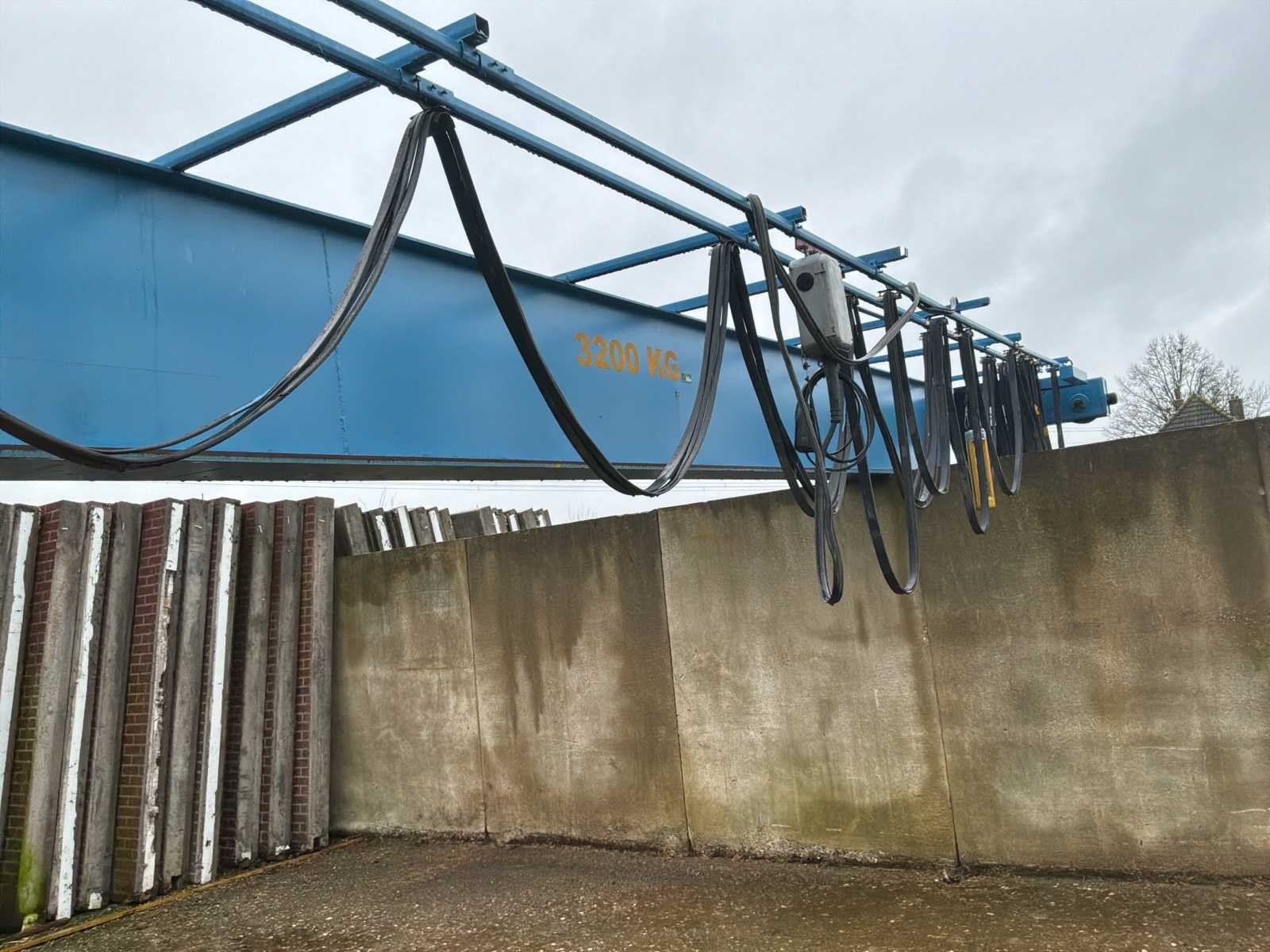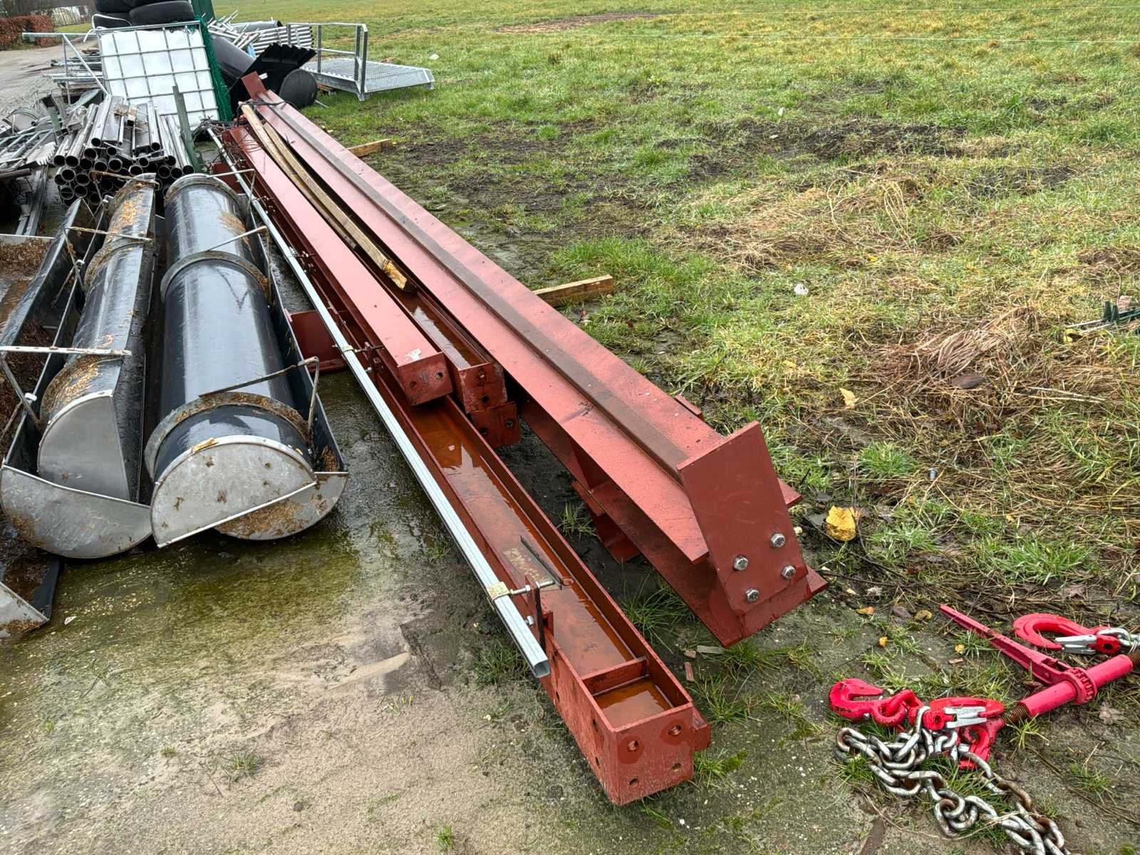 Overspanning circa 9 meter * voorzien van Hangdrukknopkast 6-knops bediening * Constructie: Elektrische loopkat op I-profiel ligger * werkend gedemonteerd * voorzien van geleiderrails Nee Merk: Demag Type: P46 H4 Bouwjaar: 1977 Serienummer: 820 02197 Hijsvermogen: 3200kg Leveringsvoorwaarden: Geladen op vrachtwagen