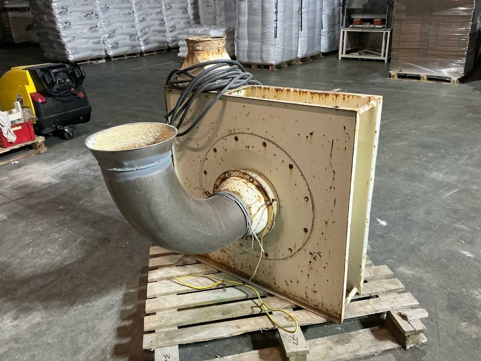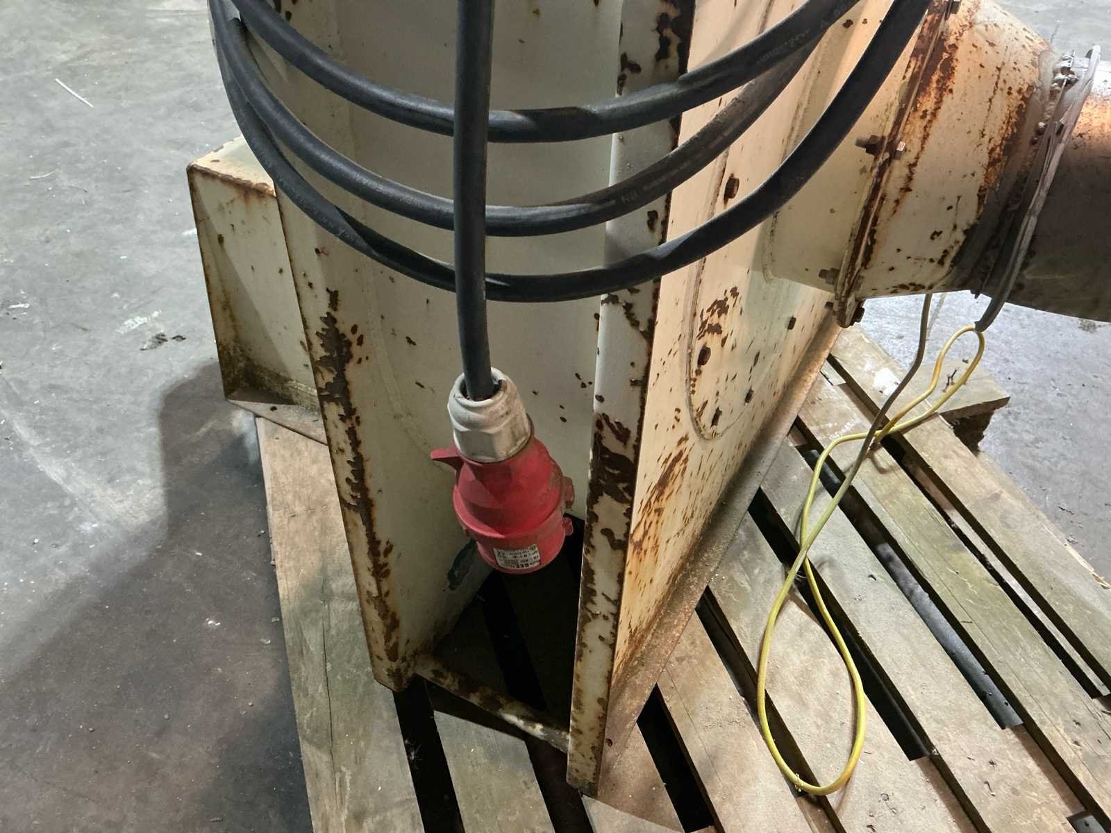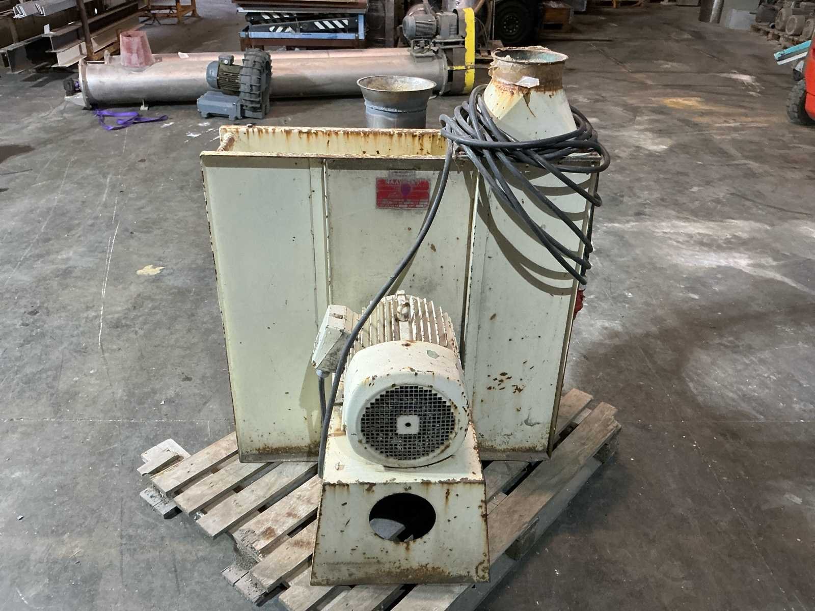 Voorzien van: Chicago Blower, type: MH ARM 11 PW I, luchtdebiet: ± 1.700 m³/uur, toerental: 2.940 omw/min, vermogen ventilator: 4,3 kW, max. statische druk: ± 410 mmWK, centrifugaalventilator, radiale waaier, axiale inlaat, radiale uitlaat, stalen behuizing, direct aangedreven, MEZ Mohelnice asynchrone draaistroommotor, 5,5 kW (7,5 PS), frequentie: 50 Hz, spanning: 380 V, stroom: 11,4 A, toerental: 2.830 omw/min, Cos φ: 0,88, isolatieklasse: B, aanzuig afmeting 250mm, uitgang diameter 160mm. Nee Merk: Chicago Type: MH Serienummer: 41374 Aansluiting: 380V Totale afmeting L: 1300mm Totale afmeting Hoogte: 1100mm Totale afmeting Breedte: 950mm