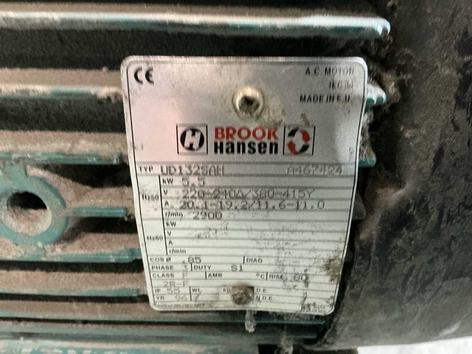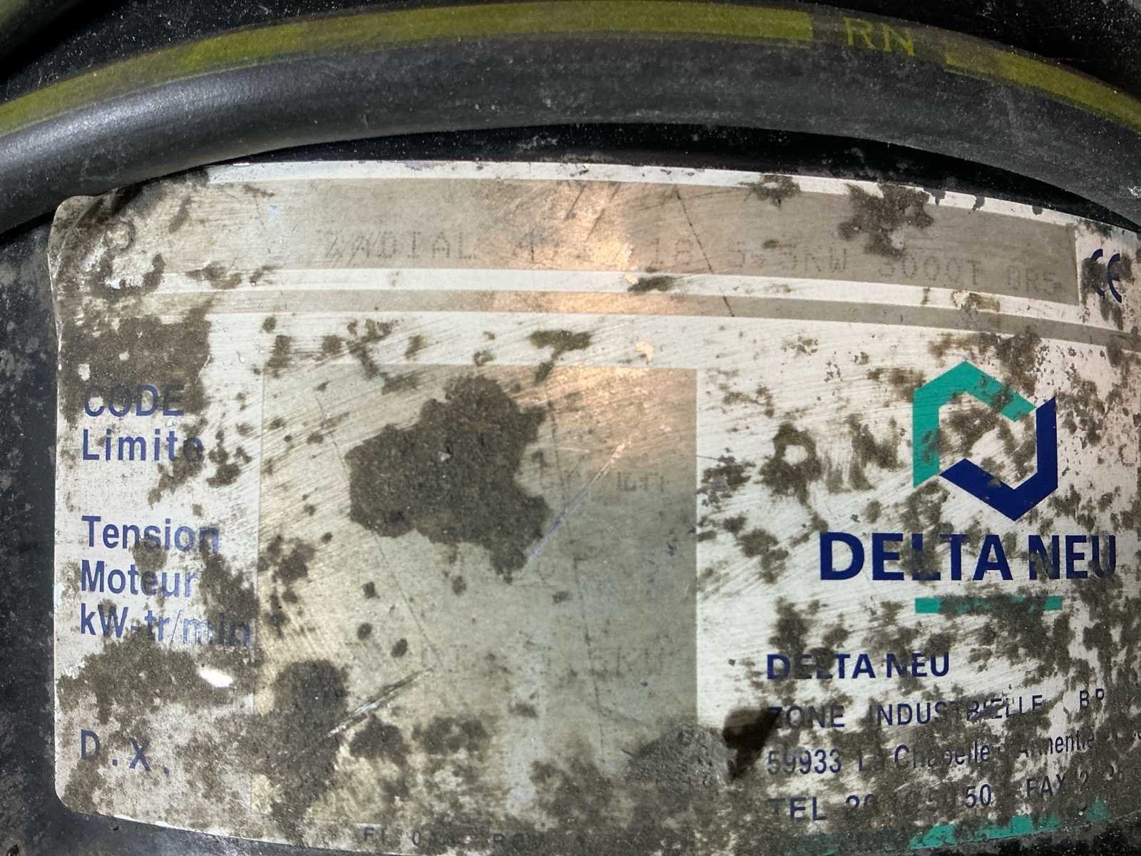 Voorzien van: Delta Neu industrieel centrifugaalventilator (radiaalventilator), direct aangedreven, slakkenhuisbehuizing, stalen waaier gemonteerd op motoras, ronde aanzuigopening (axiaal), tangentiële uitblaasopening, stalen frame met voetplaat voor vloeropstelling, voorzien van noodstop en CEE-stekker, 3-fasen asynchrone motor, vermogen: 5,5 kW, spanning: 400V (Δ) / 690V (Y), frequentie: 50 Hz, toerental: ca. 2.900 rpm, beschermingsgraad: IP55, isolatieklasse: F, continu (S1), aansluiting aanzuigen flens 125mm, 140x170 aansluiting flens afvoer. Nee Merk: Delta Neu Aansluiting: 380V Totale afmeting L: 500mm Totale afmeting Hoogte: 1000mm Totale afmeting Breedte: 800mm