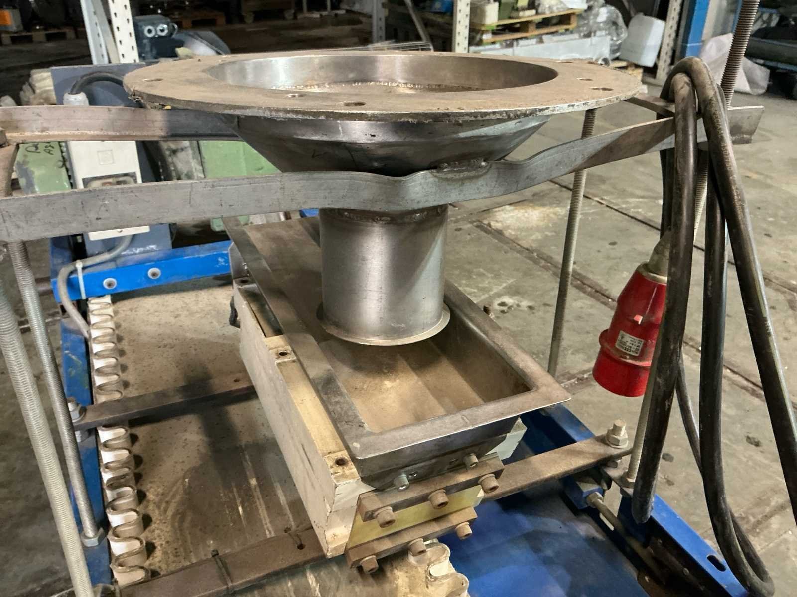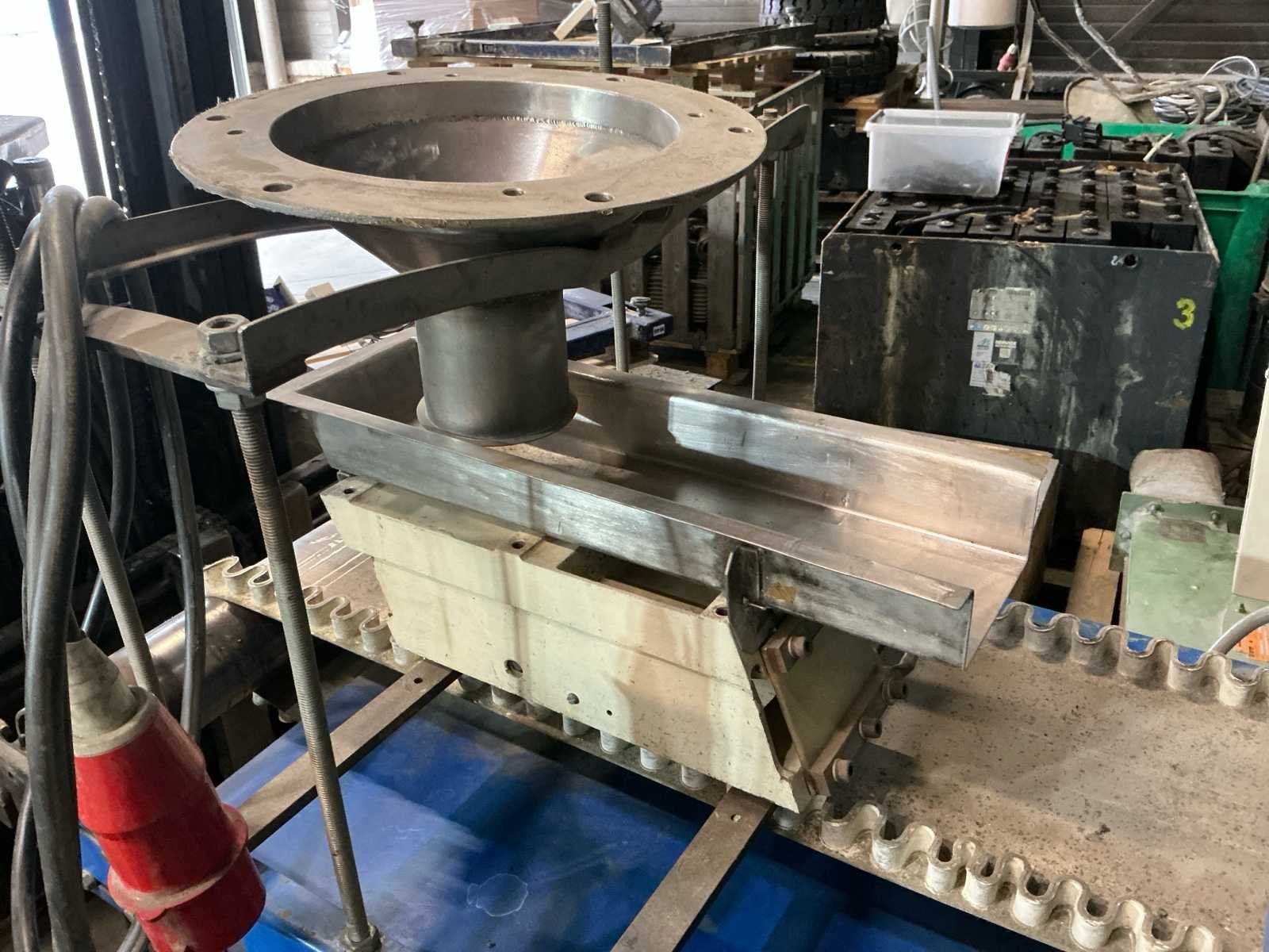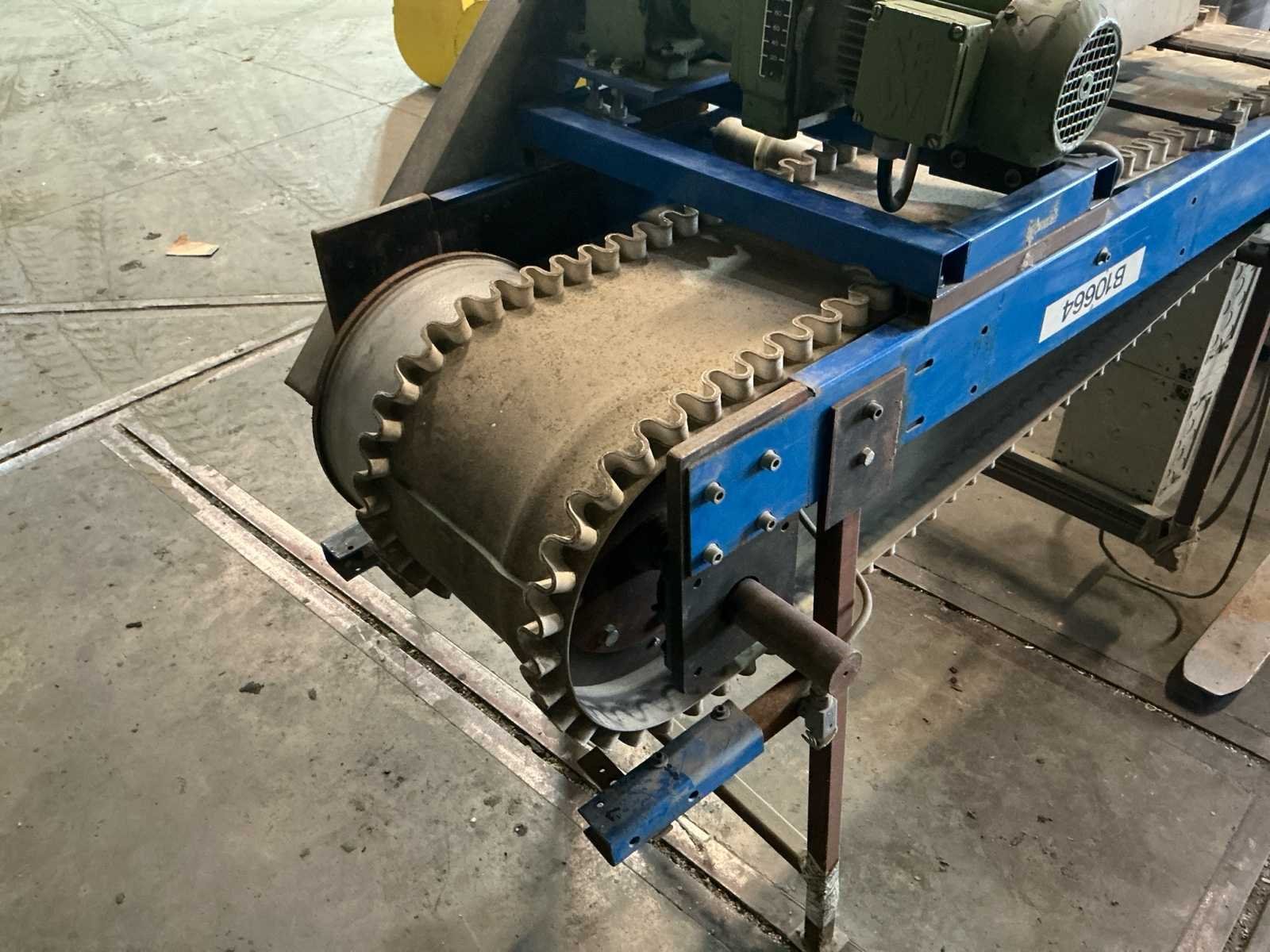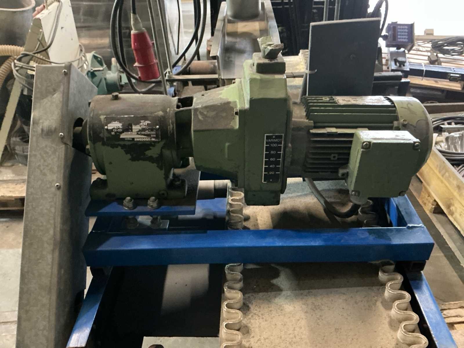Bestaat uit: frequentie geregelde trilgoot, transport band 300mm breed, trechter met flens 350mm, roterende magneet trommel, snelheid transportband regelbaar, Nee Merk: Magneet scheider met trilgoot Werkbreedte: 230mm Aansluiting: 380V Totale afmeting L: 1600mm Totale afmeting Breedte: 700mm Totale afmeting Hoogte: 1400mm