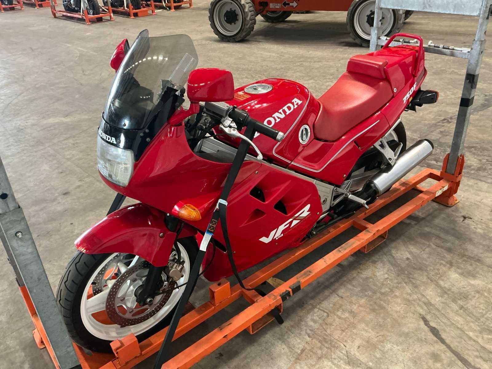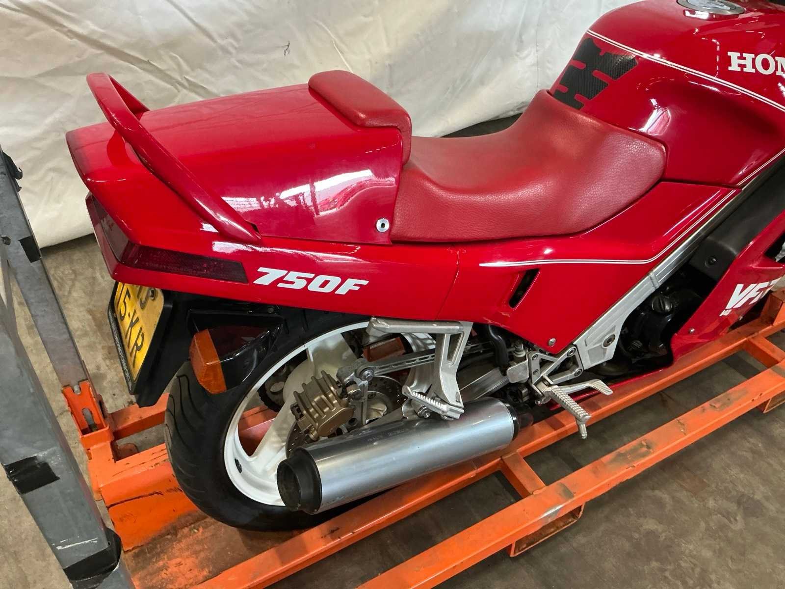 Let op: sleutel ontbreekt; Nee Merk: Honda Model: Sport Type: VFR 750F Kenteken: MJ-15-KR Brandstof: benzine Cilinderinhoud: 748cc Datum eerste toelating: 1989-05-23 Vermogen (kW): 77kW Kleur: niet van toepassing Afgelezen kilometerstand: 57586km Transmissie: Voetgeschakeld Datum eerste toelating (NL): 1989-05-23 Bruto BPM (NL): 0€ Bouwjaar: 1989
