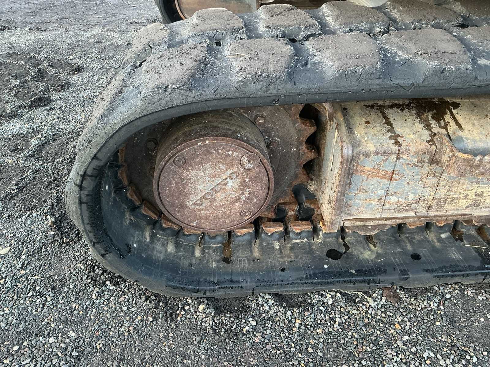 Voorzien van: Volvo D2.6 (43kW), hydraulische snelwissel, graafbak met tanden 850mm, aux. aansluiting langs giek, werklampen, dozerblad, joystick bediening, Grammer mechanisch geveerde stoel, rubber rupsen 450mm, airco, ruitenwissers, schuiframen, bedrijfsgewicht 8.778kg, totale breedte 2,30 m, totale lengte 6,37 m, bakinhoud 0,08 – 0,33 m³, max. rijsnelheid 4,9 km/u, max. graafdiepte tot 4,53 max. graafbereik tot 7,35 m, max. storthoogte tot 5,22 m. No Merk: Volvo Type: ECR88D Bouwjaar: 2016 Serienummer: 211853 Merk motor: Volvo Motorvermogen (kW): 43kW Aantal cilinders: 4 Brandstof: Diesel Bedrijfsgewicht: 8778kg Met graafbak: true Graafbak afm. b: 850mm Cabine: true Afgelezen urenstand: 5402 Eigen gewicht: 8778kg Totale afmeting L: 6400mm Totale afmeting Breedte: 2300mm