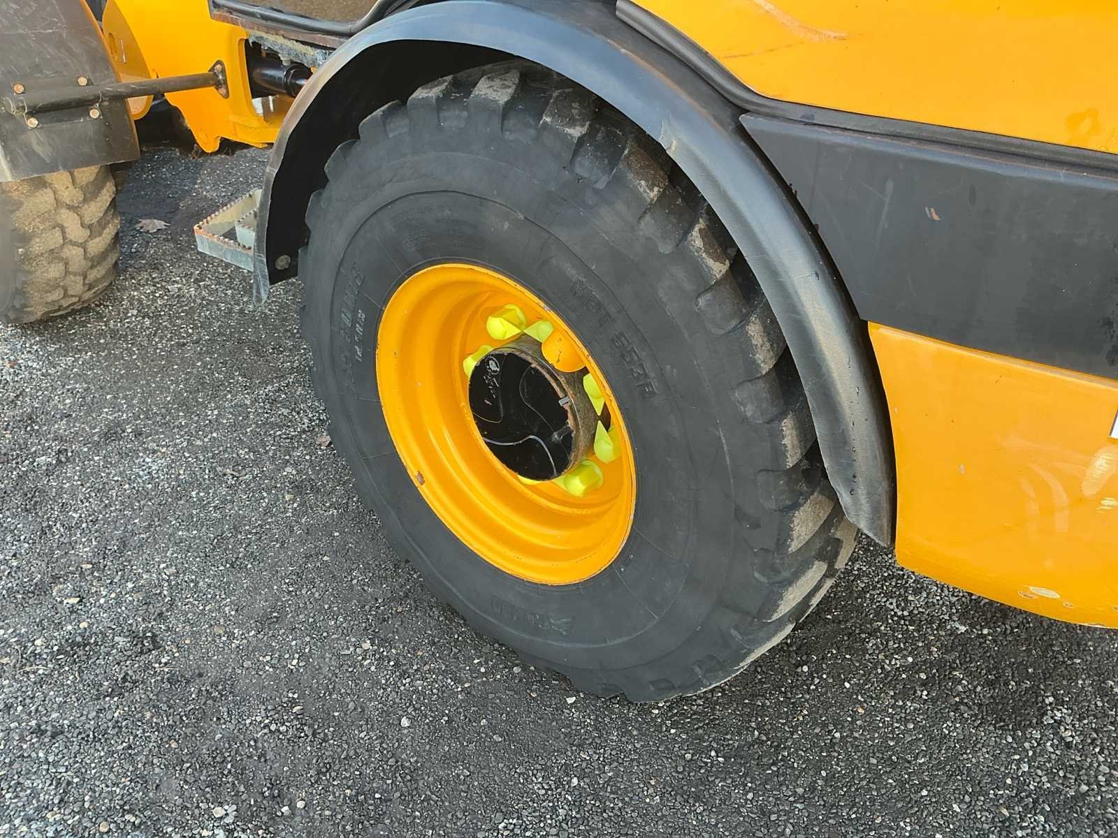 Voorzien van: JCB‑dieselmotor van Kohler – KDI 1903 TCR, hydraulische snelwissel, 3 in een bak 1850mm, pallet vorken 1050mm, handrem, joystick bediening, werklampen, verlichting, trekhaak, schuiframen, inching-pedaal, verzonken achterlichten, NextGen cabine, lcd-scherm, hydrostatische aandrijving, 2 versnellingen, tandwielpomp, spatborden voor en achter, eendelige motorkap, volledig te openen rechter raam met vergrendelingen, volledig verstelbare stoel, binnenverlichting, instelbare kantelbare stuurkolom, veiligheidsglas, LCD‑display, ruitenwisser/‑sproeier voor en achter, verwarming met 3 standen No Merk: JCB Type: 406 T4 Bouwjaar: 2017 Serienummer: 2319384 Merk motor: Kohler JCB Motorvermogen (kW): 36kW Aantal cilinders: 4 Brandstof: Diesel Bedrijfsgewicht: 5095kg Graafbak afm. b: 1850mm Bandenmaat: 335/80R18 Cabine: true Afgelezen urenstand: 2640 Eigen gewicht: 5095kg Totale afmeting L: 5200mm Totale afmeting Breedte: 1750mm Totale afmeting Hoogte: 2500mm