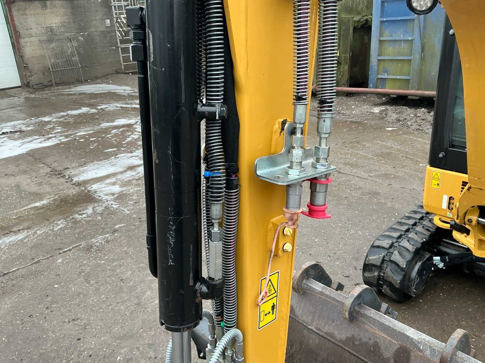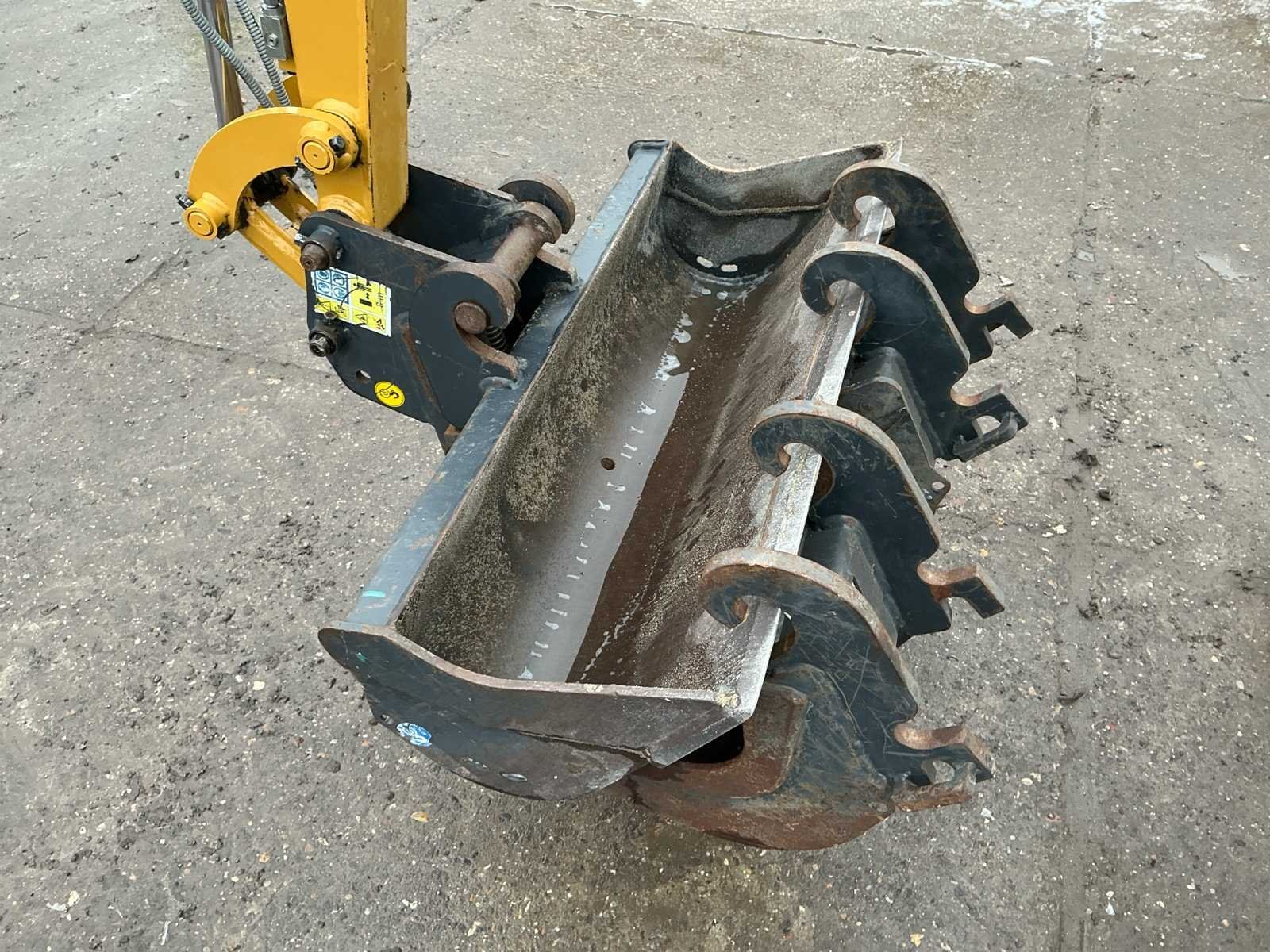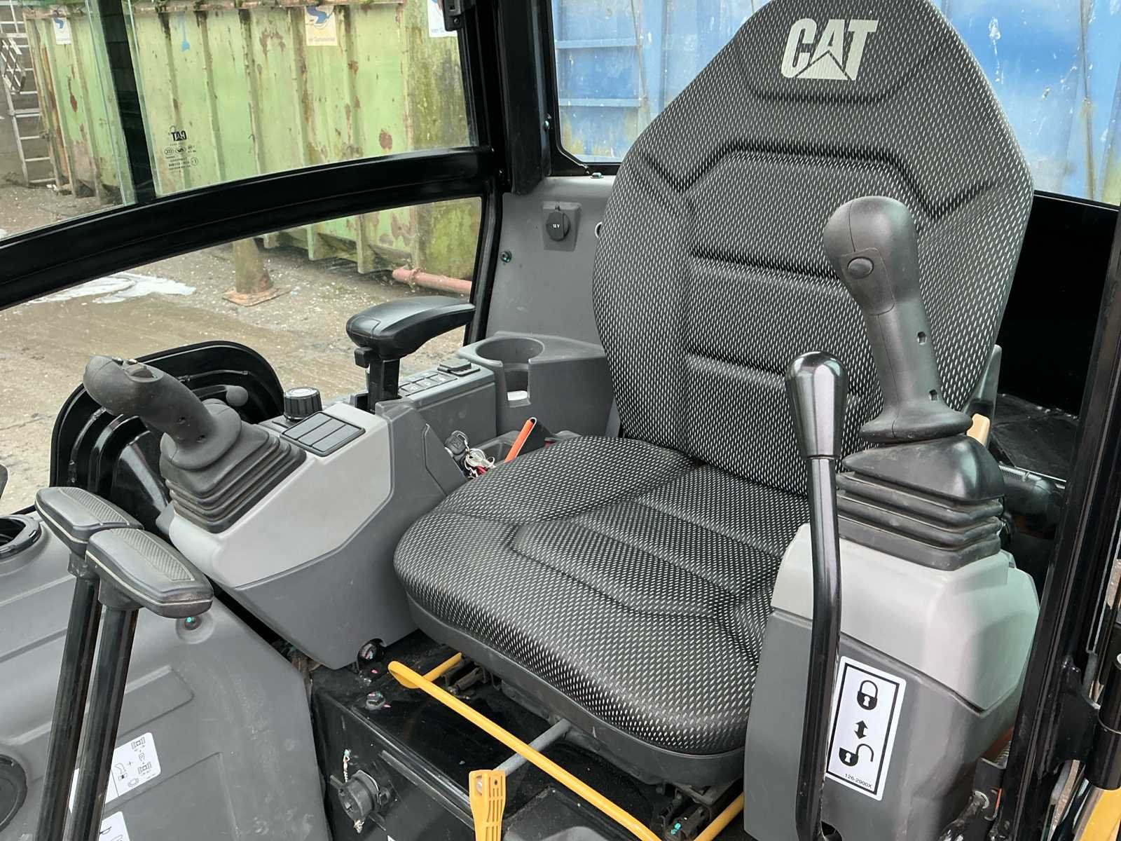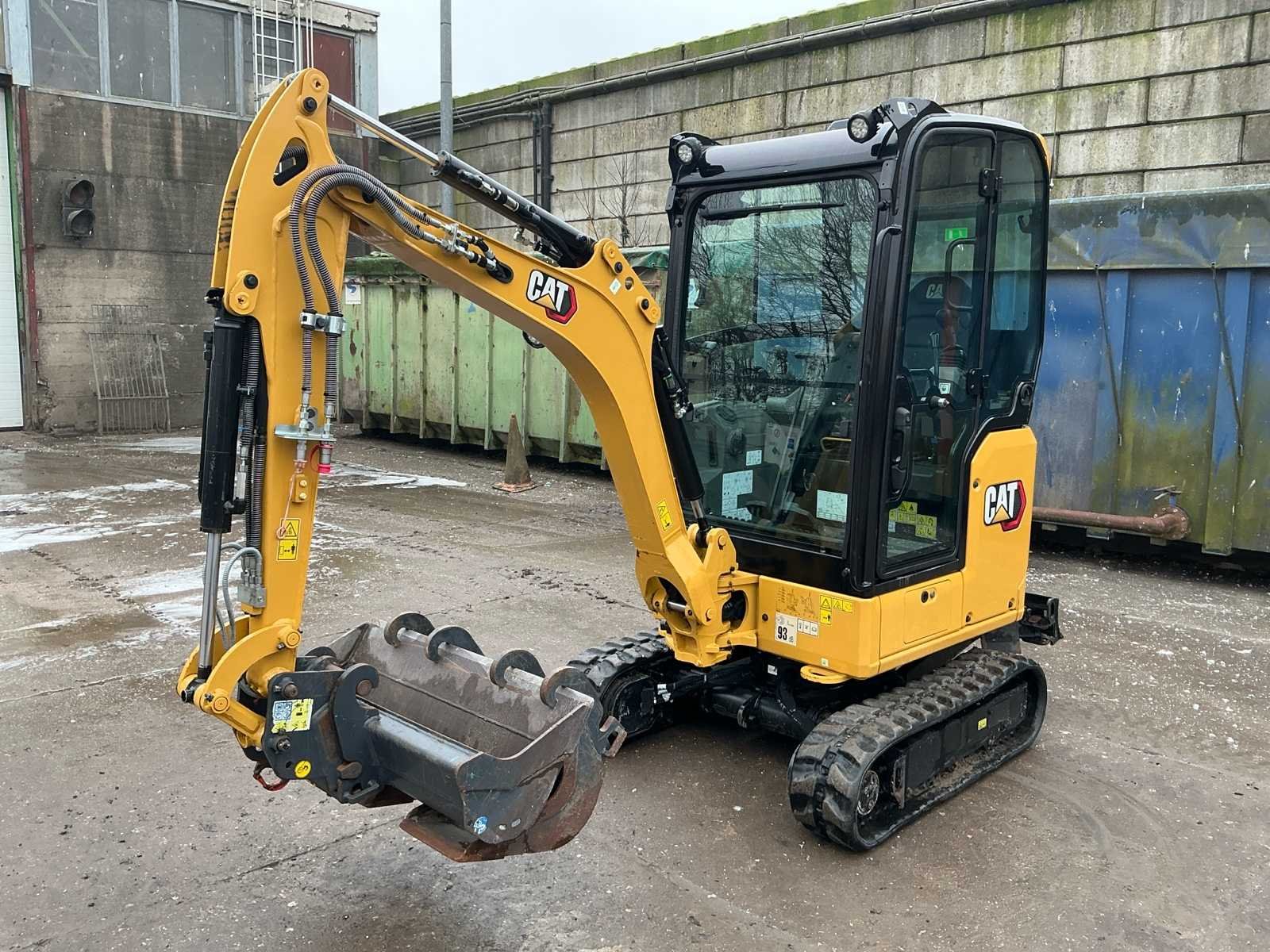 Voorzien van: 3 bakken 2stuks van n36 cm breed 36cm hoog, 40cm breed, 1= 100cm breed, 40cm diep, 30 hoog,sloop sorteer functie, verstelbare rupsen, 4 ventielen aan de giek, 2 joysticks, led verlichting, Caterpillar CAT 301.4 minigraver met ca. 1.900–2.000 kg bedrijfsgewicht, Caterpillar C1.1 Stage V dieselmotor van 16,1 kW (21,6 pk), gesloten cabine met verwarming en LED-werklampen, hydraulische snelwissel en hulphydrauliek, max. graafdiepte ±2,5 m, bereik ±4,0 m, breedte ±990 mm, rubber rupsonderstel en een urenstand van 417 uur. No Merk: Catepillar Type: 301.4; Bouwjaar: 2020 Serienummer: CAT0301Y600745 Merk motor: Caterpillar Motorvermogen (kW): 16kW Aantal cilinders: 2 Brandstof: Diesel Bedrijfsgewicht: 2000kg Gieklengte: 4000mm Max. werkbereik: 4000mm Met graafbak: true Graafbak afm. l: 400mm Graafbak afm. b: 1000mm Graafbak afm. h: 300mm Rups breedte: 230mm Cabine: true Afgelezen urenstand: 417 Eigen gewicht: 2000kg Totale afmeting L: 3000mm Totale afmeting Breedte: 1200mm Totale afmeting Hoogte: 2300mm