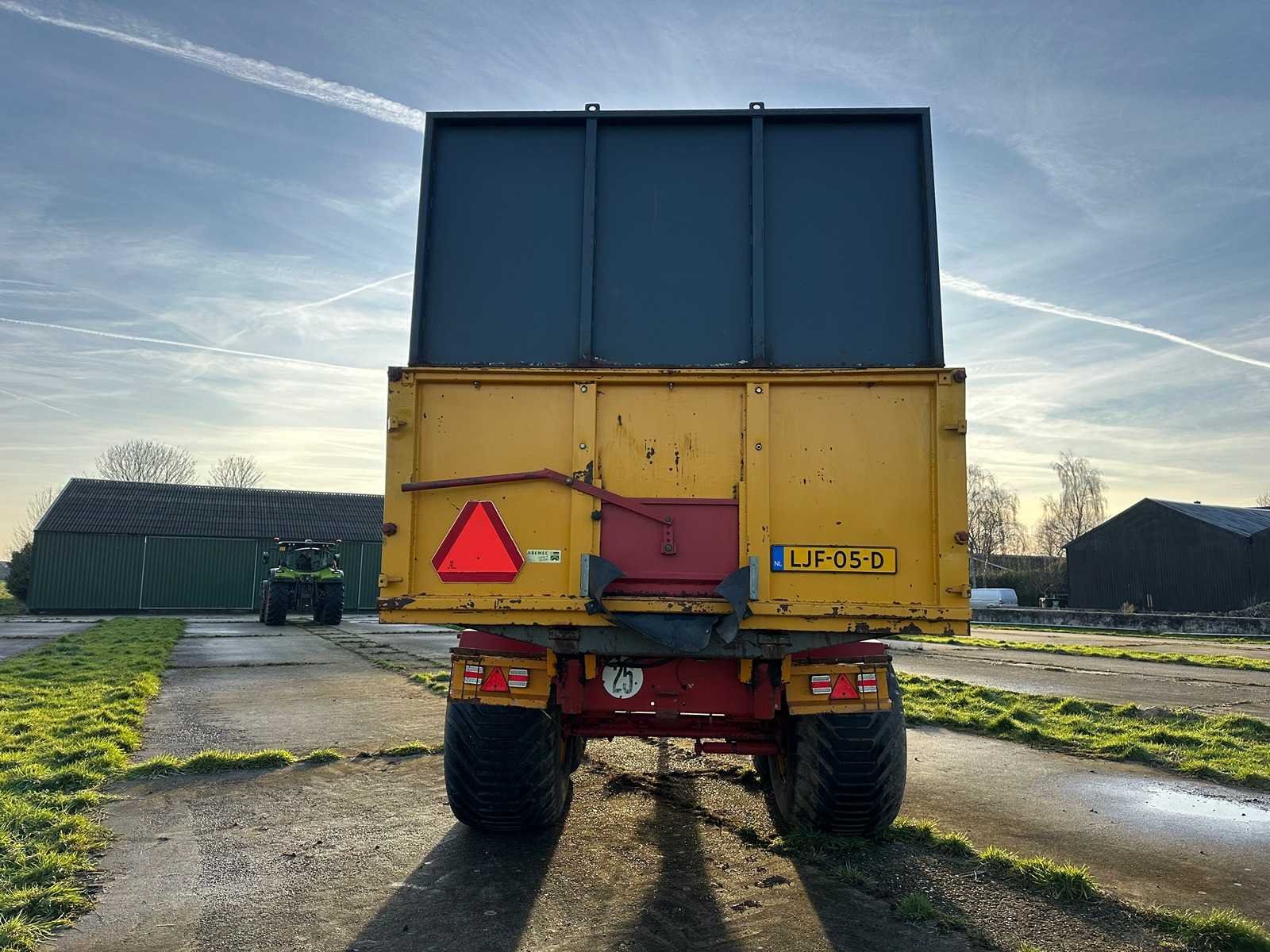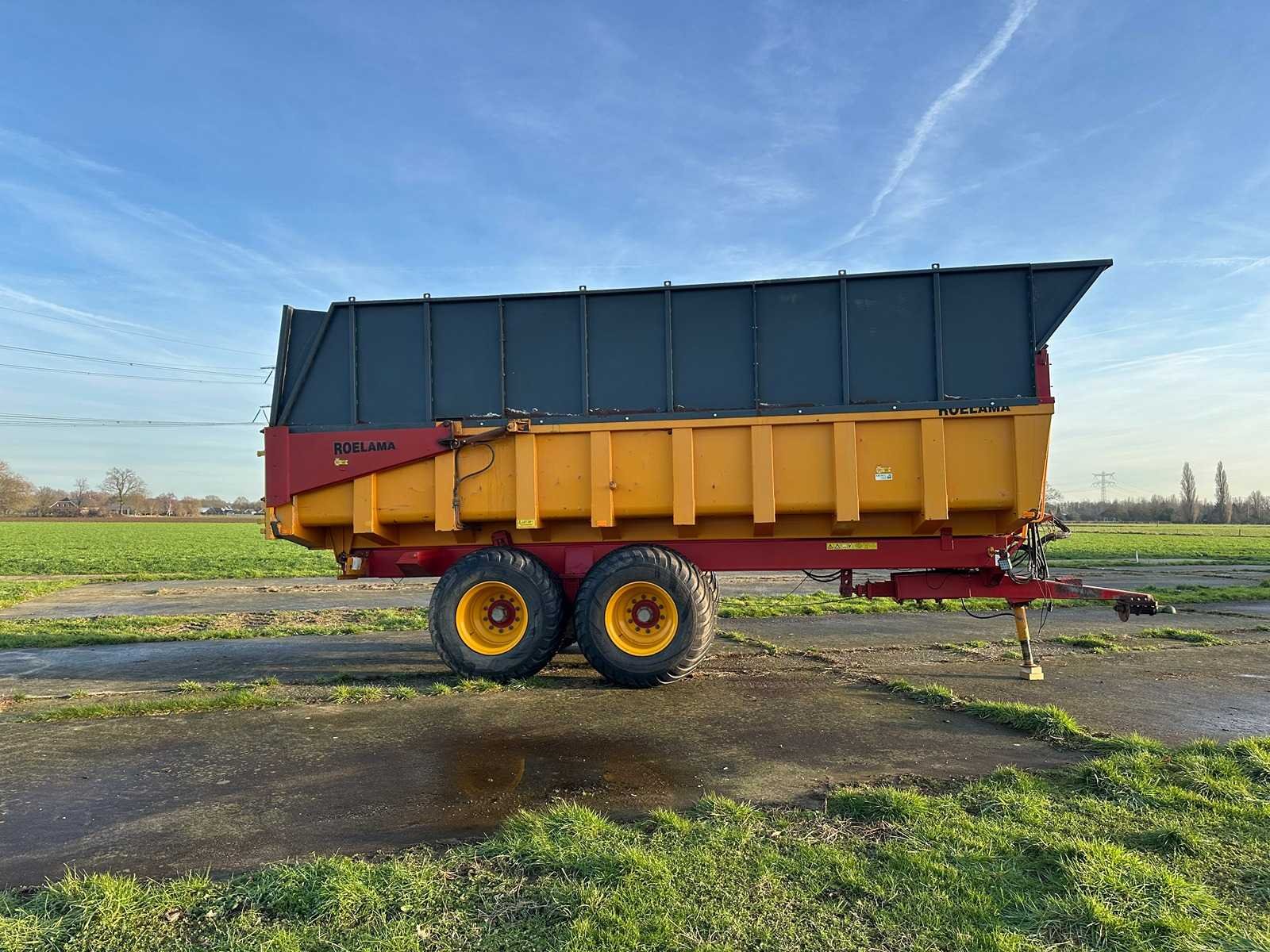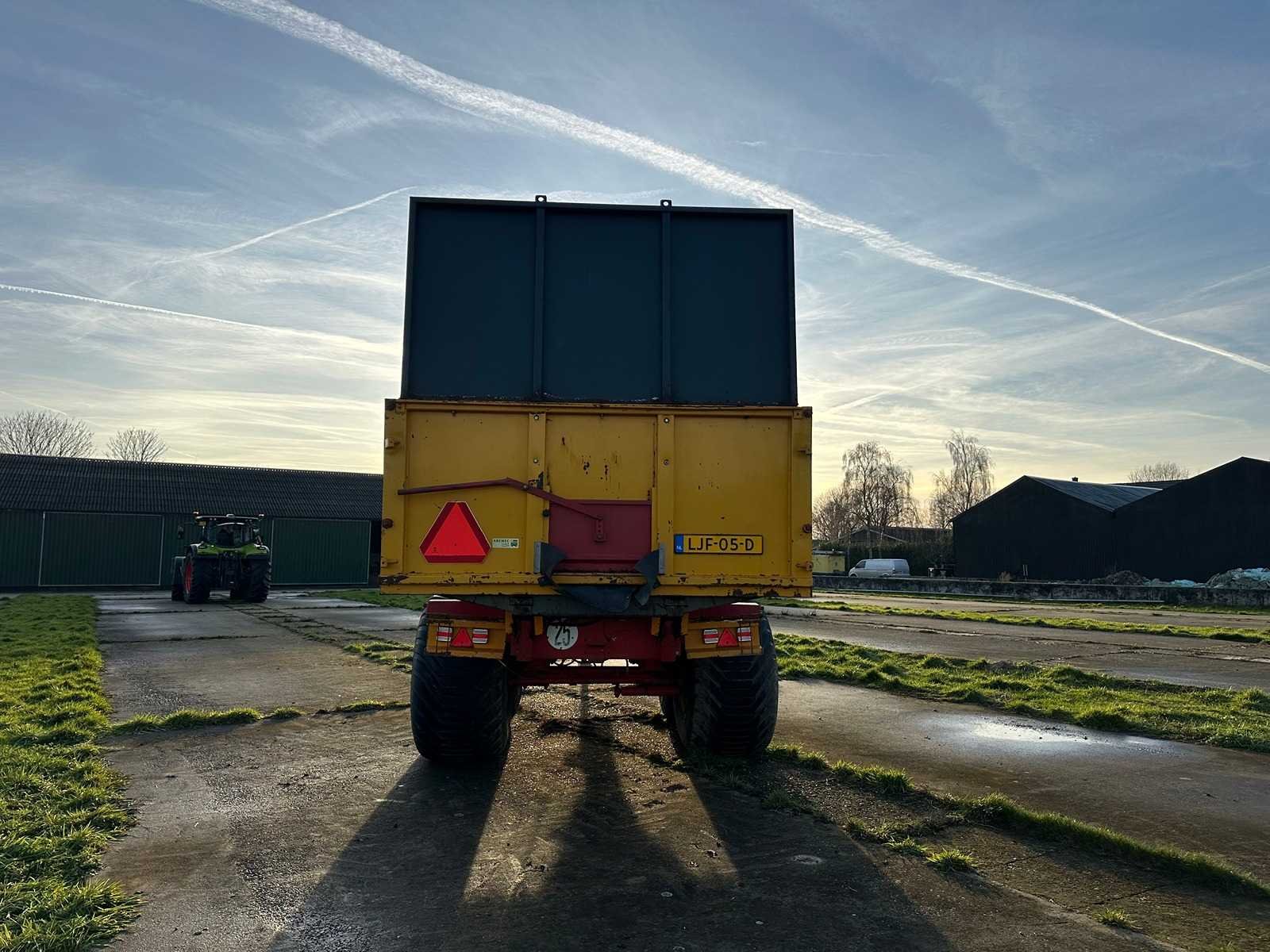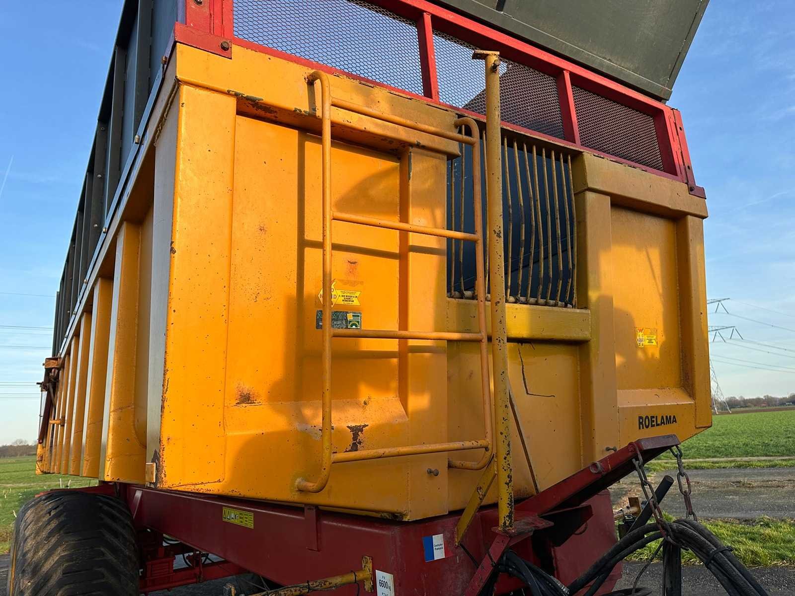 Silage Kieper met op zet randen. Beschikt over een eigen hydraulische systeem en over kan omgeschakeld worden naar hydraulische aansluitingen rechtstreeks aan de tractor. Met hydraulische afstempels op achterste as, 40 kuub, Bladgeveerd, verlichting werkt naar behoren, hydraulische steunpoot. Nee Merk: Roelama Type: RL18000 Bouwjaar: 1999 Serienummer: 1088 Kenteken: ljf-05-d Opslag cap.: 40m³ Aantal assen: 2 Bandenmaat: 700/50-26.5 Totaal max. gewicht: 24t Hydraulische remmen: true Stuuras: true Totale afmeting L: 10000mm Totale afmeting Breedte: 2800mm Totale afmeting Hoogte: 3980mm