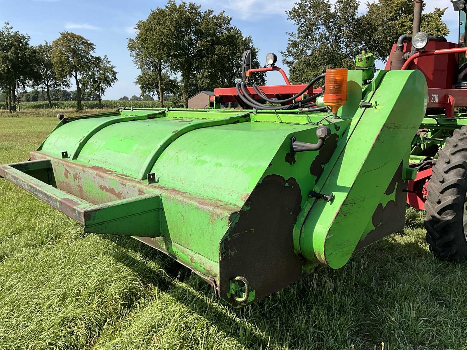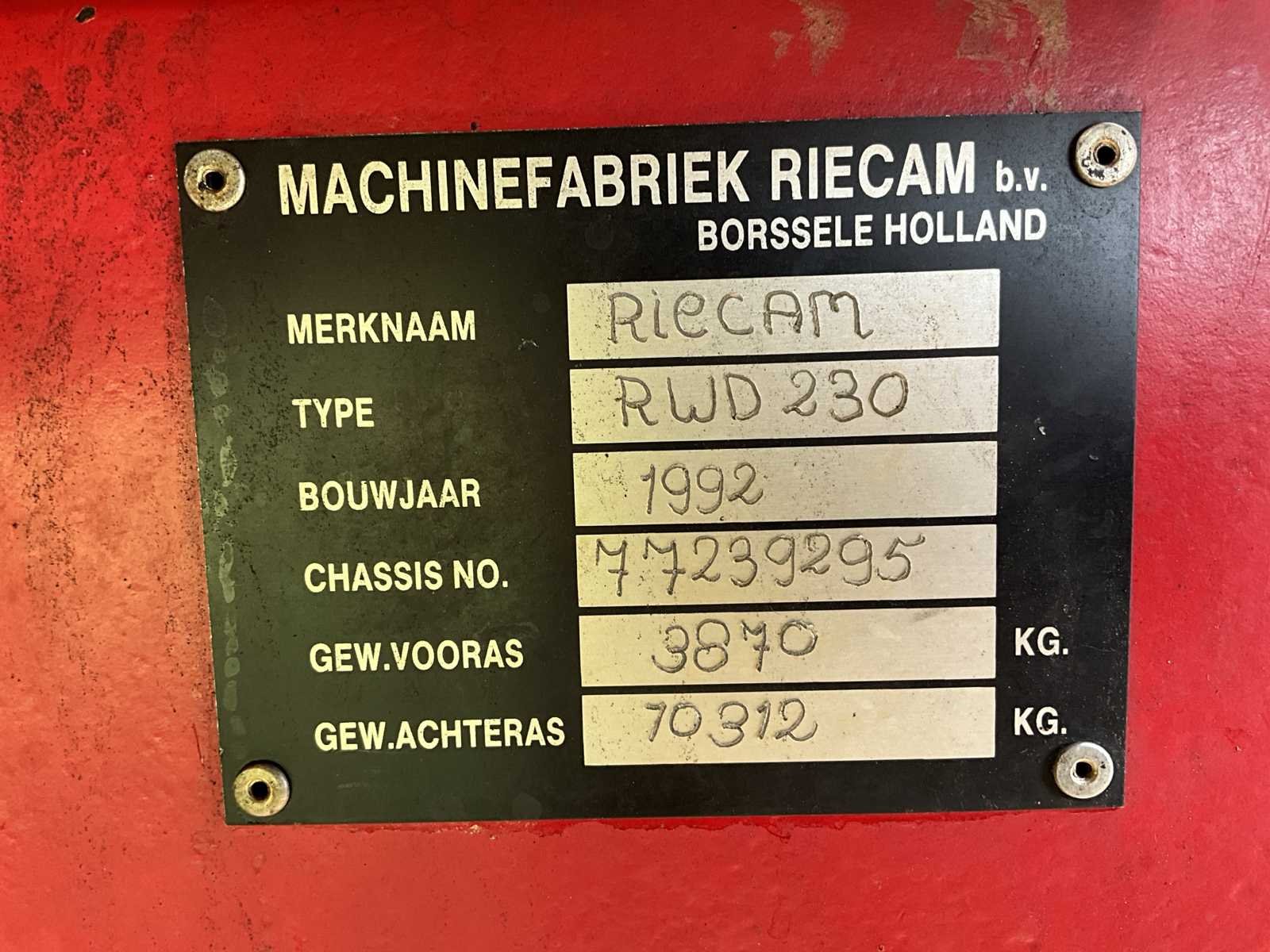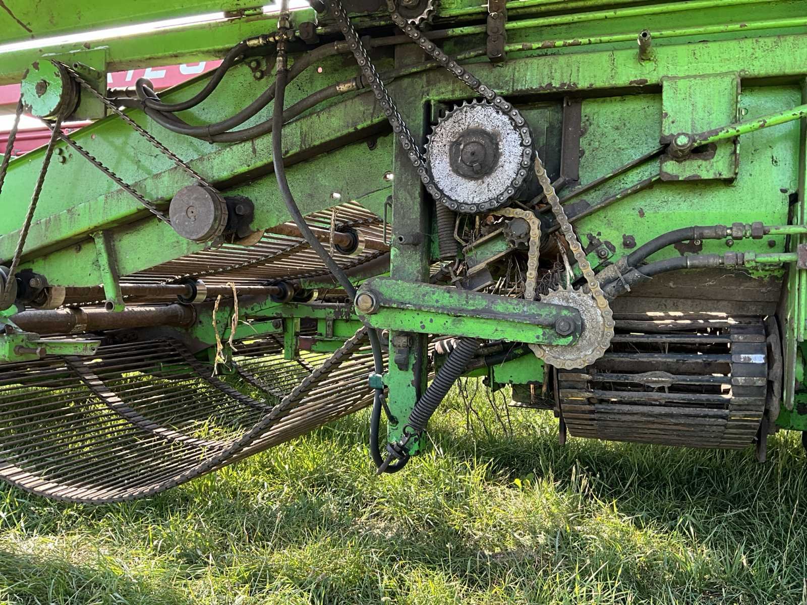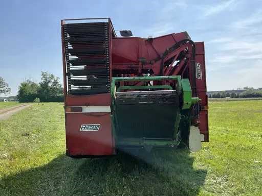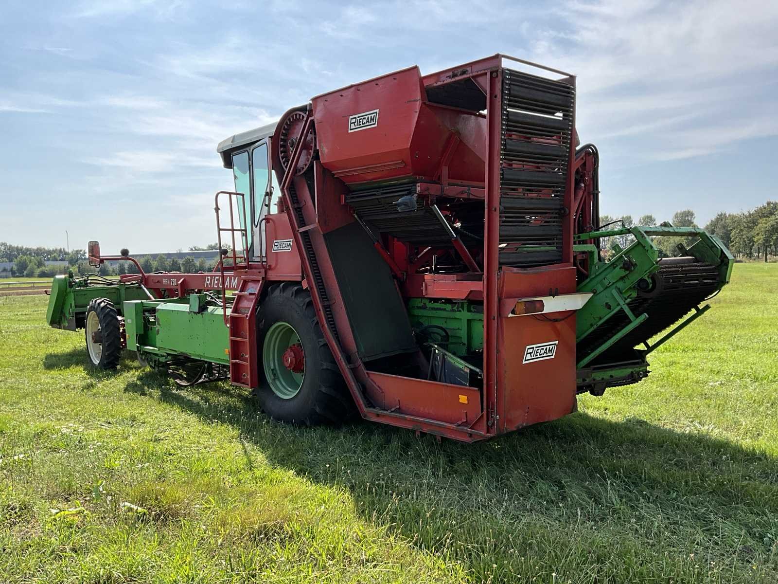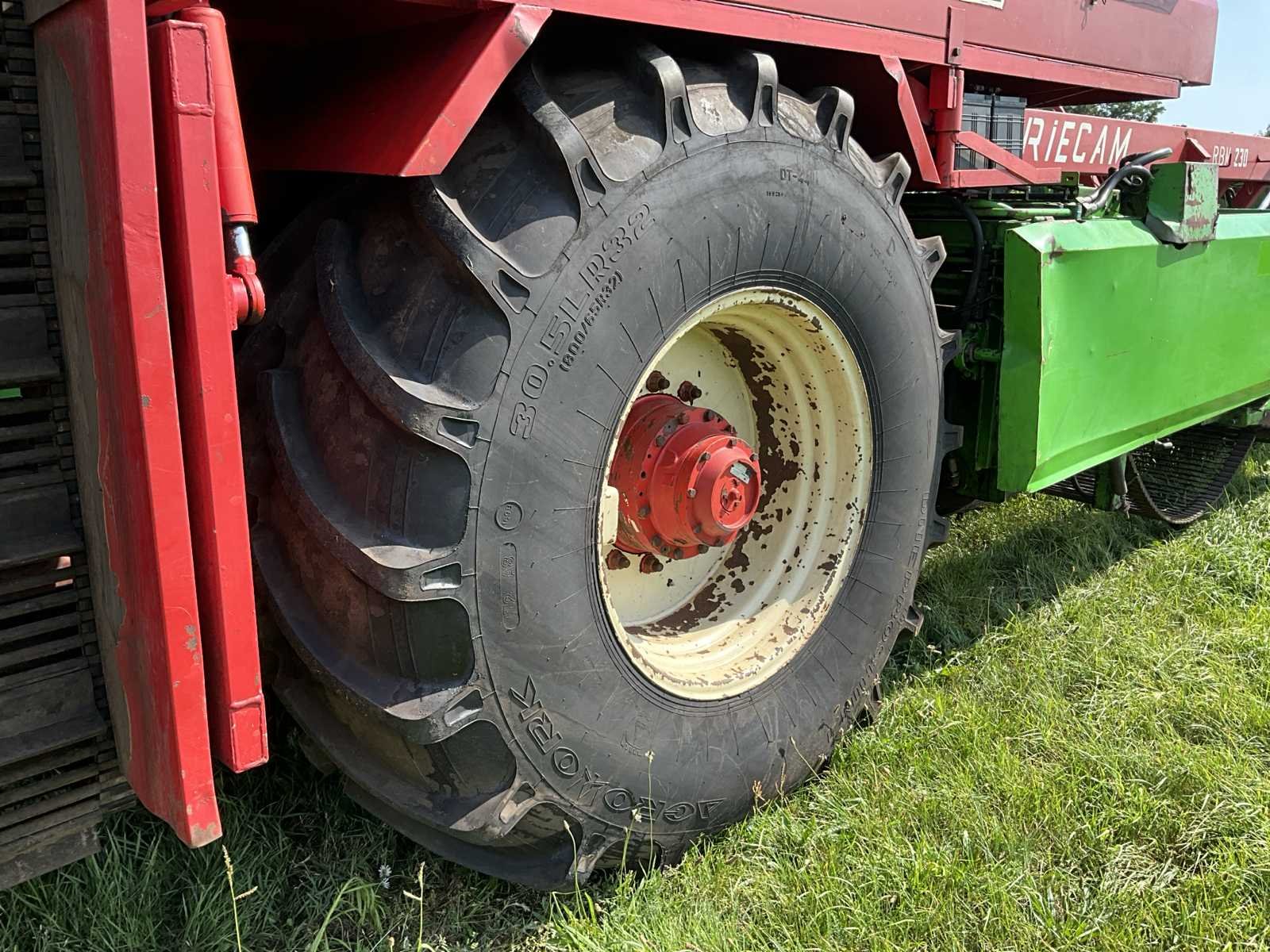 Maximale snelheid 40km/h; urenstand 6743h; 4x750mm rijen; 3000mm werkbreedte; voorzien van: joystick besturing; radio; Deutz BF6L513S; 6-cilinder Deutz diesel motor; 30.5LR32 banden; 11.2R36 banden; werkverlichting; verlichting, LET OP: camerasysteem heeft een storing! Rooimatten, opvoerelevator en afvoerband zijn in zeer goede staat. Nee Merk: Riecam Type: RWD 230 Bouwjaar: 1992 Serienummer: 77239295 Kenteken: THV-08-Z Motorvermogen (kW): 158kW Aantal rijen: 4 Spoorbreedte: 3000mm Zelfrijdend: true Totale afmeting L: 1340mm Totale afmeting Breedte: 3350mm Totale afmeting Hoogte: 4000mm