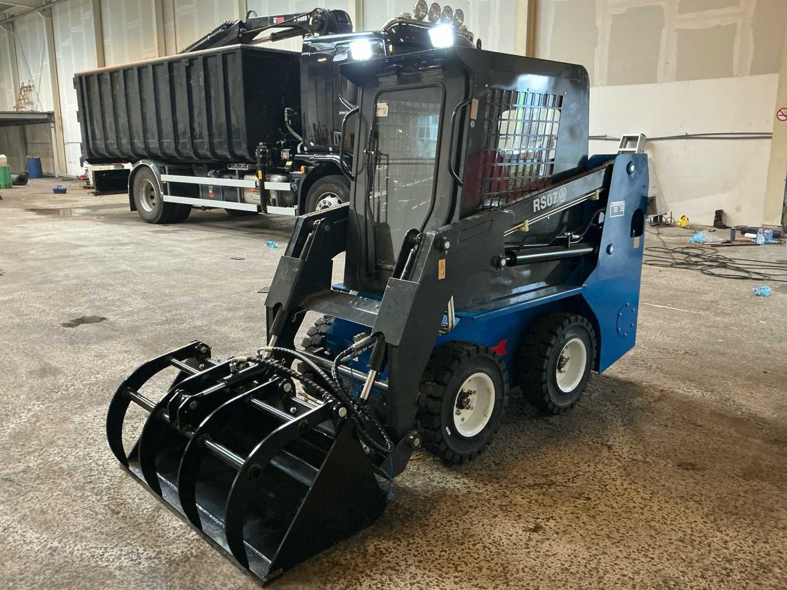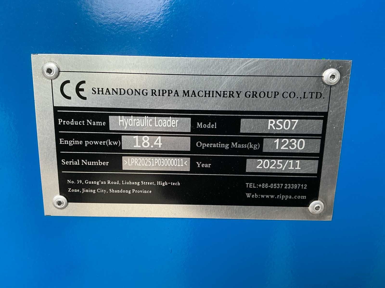 Rippa RS07 compacte schranklader, bouwjaar 2025, voorzien van betrouwbare Kubota D1105 3-cilinder dieselmotor. Uitgerust met hydraulische hulpfunctie aan de voorzijde. Inclusief hydraulische grijpbak. Inclusief hoogkiepbak (binnenafmetingen circa 70x107x37 cm). Compacte afmetingen en hoge wendbaarheid. Dieselaangedreven. Nee Merk: Rippa Type: RS07 Bouwjaar: 2025 Serienummer: LPR20251P03000011 Merk motor: Kubota Motorvermogen (kW): 18.4kW Aantal cilinders: 3 Brandstof: Diesel Bedrijfsgewicht: 1230kg Bandenmaat: 6.50-10 Graafbak afm. l: 550mm Graafbak afm. b: 1100mm Graafbak afm. h: 400mm Afgelezen urenstand: 1 Eigen gewicht: 1230kg Totale afmeting L: 2200mm Totale afmeting Breedte: 1000mm Totale afmeting Hoogte: 1870mm