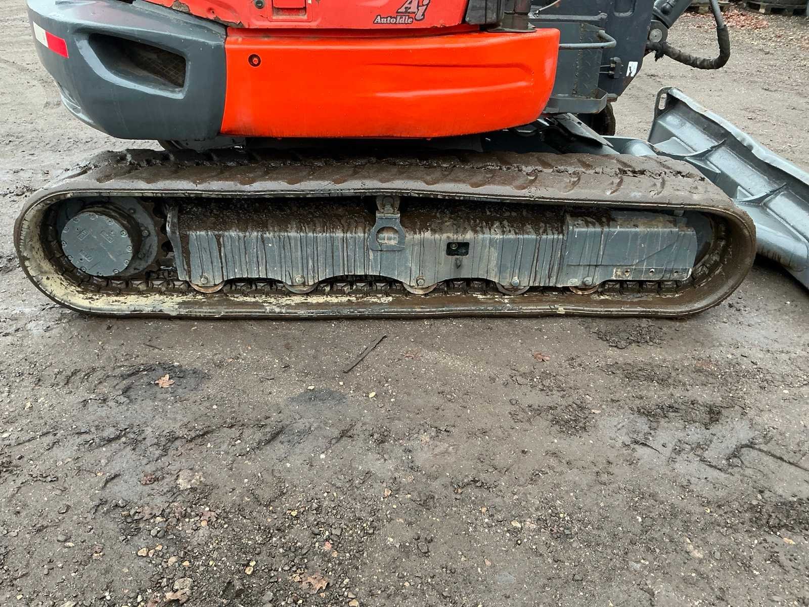 Opschoon bak 1400mm, dieplepel 400mm, CW10 hydraulische wissel niet aangesloten, 3e functie, werkverlichting, blad 2000mm, digitale display, auto idle, verwarming, airco, radio Nee Merk: Kubota Type: KX 165-5 Bouwjaar: 2012 Serienummer: 64043 Merk motor: Kubota Motorvermogen (kW): 35.5kW Aantal cilinders: 4 Brandstof: Diesel Max. graafdiepte: 3900mm Met graafbak: true Graafbak afm. b: 1400mm Rups breedte: 400mm Cabine: true Afgelezen urenstand: 3039 Eigen gewicht: 5540kg Totale afmeting L: 5600mm Totale afmeting Breedte: 2000mm Totale afmeting Hoogte: 2550mm