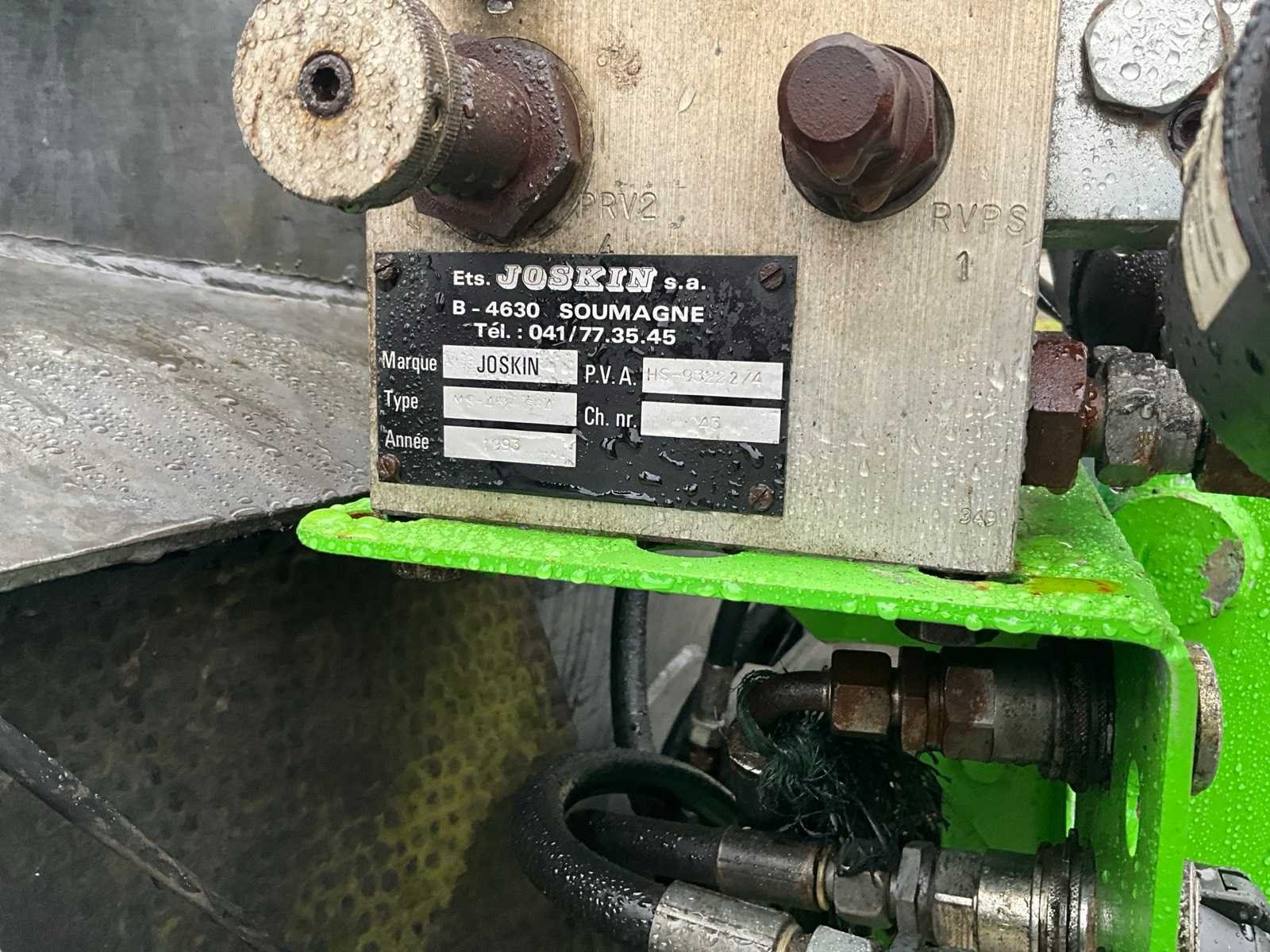 Voorzien van hydraulische hefinrichting; zuigarm; “Jurop” PN 106 M vacuümpomp; hydraulisch geremd; 8400 ltr.; Bedieningskast; hydraulische ventielen achter; 7 polige stekker; No Merk: Joskin Type: 8400ES Bouwjaar: 1994 Serienummer: 6509/084 Kenteken: LJZ-32-N Tankinhoud: 8.4m³ Bandenmaat: 66x43.00-25 Type pomp: Vacuümpomp Zuigarm: true Hefinrichting: true